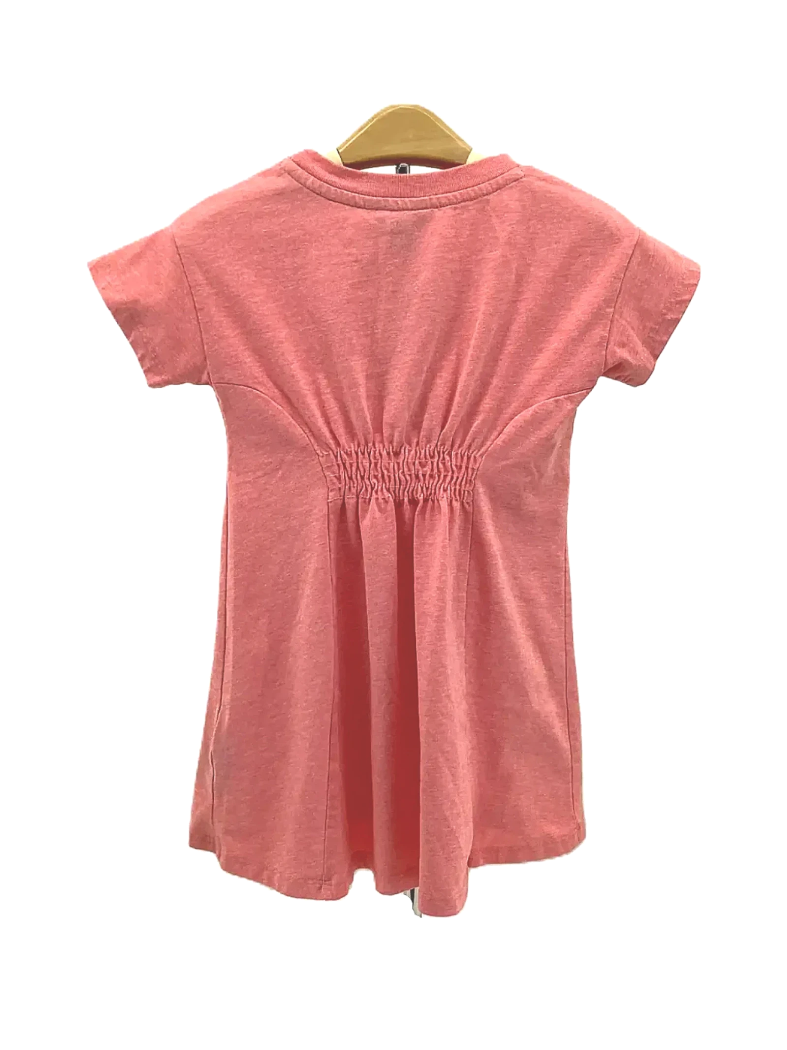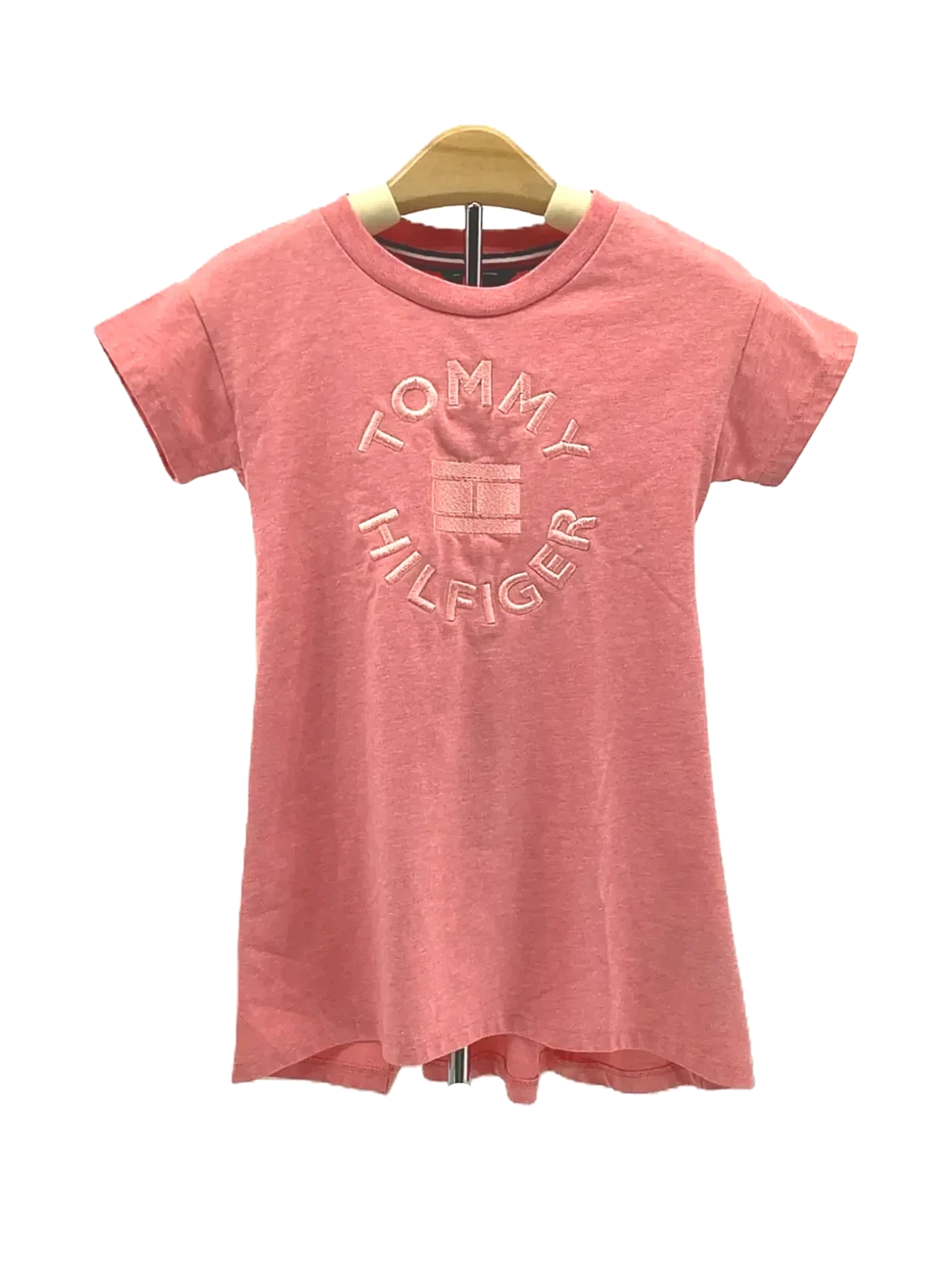 Tommy Hilfiger Girls Smocked Back Embroidered Logo Short Sleeve T-Shirt Dress Size 4T.