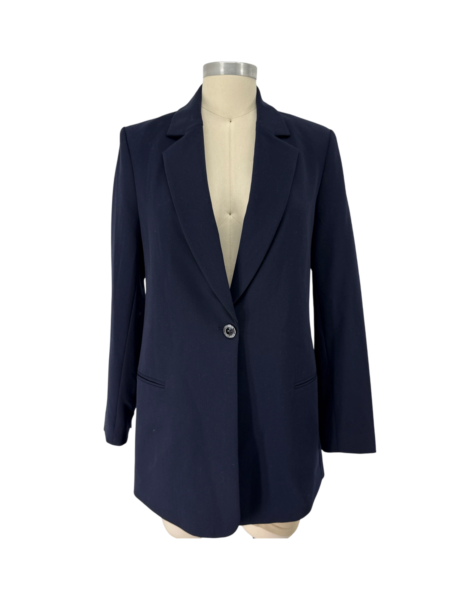 Elevate your wardrobe with this pre-owned Tommy Hilfiger blazer, perfect for adding a touch of sophistication to any outfit. Crafted with a blend of polyester and spandex for a comfortable fit. Featuring a classic design, single-breasted closure, and a flattering silhouette, this blazer is ideal for both professional and casual occasions. Its timeless style makes it a versatile addition to your collection.