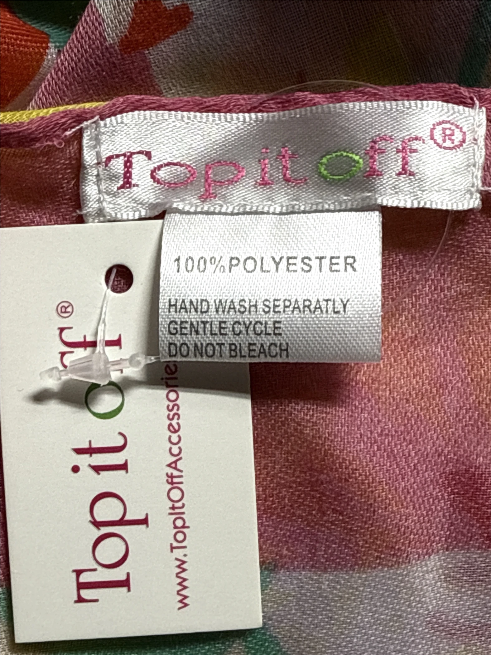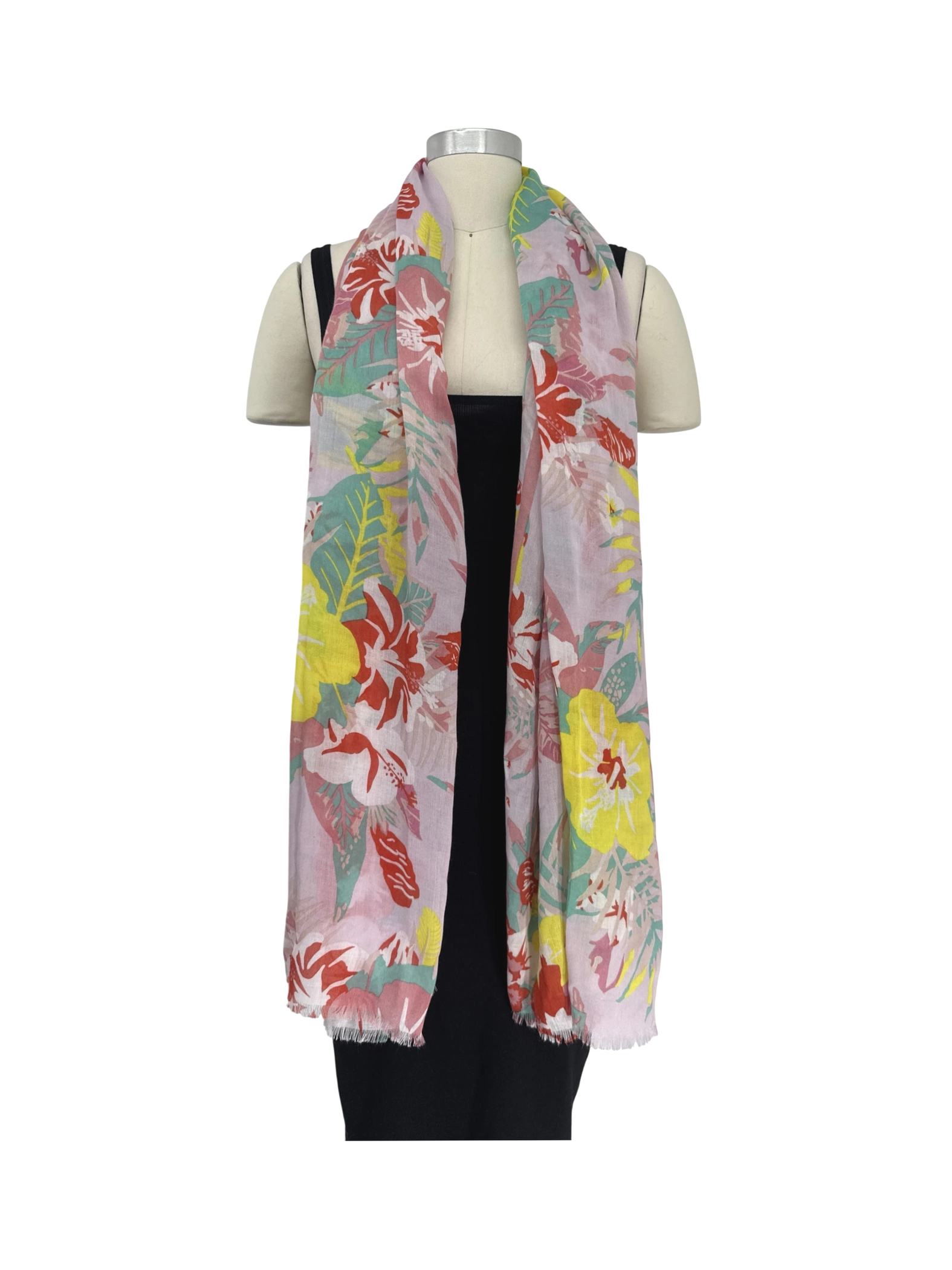 This beautiful Top it Off scarf is the perfect accessory to brighten up any outfit. Featuring a vibrant floral pattern and made from lightweight polyester, it's ideal for adding a touch of color and style. This scarf is perfect for spring and summer. It's a versatile accessory that can be worn in various ways, making it a must-have addition to your wardrobe.