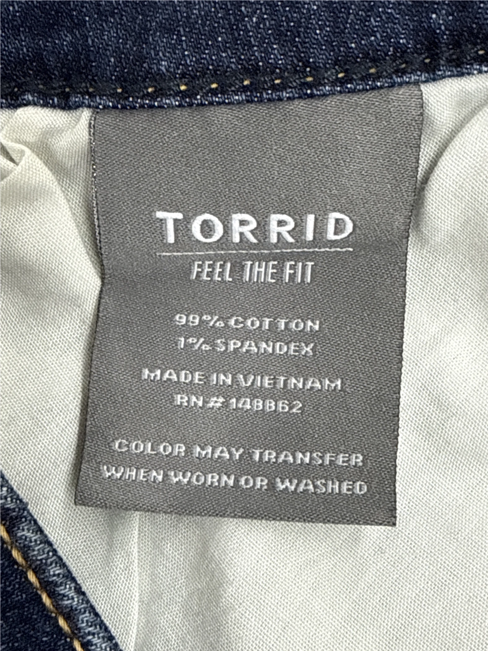 These pre-owned Torrid denim shorts are the perfect addition to your summer wardrobe. They're designed with a high-waisted fit, raw hems, and a classic denim wash. Crafted from a comfortable cotton and spandex blend, these shorts offer both style and a great fit. Ideal for casual outings, these shorts are a versatile and trendy choice. Get ready to elevate your denim game with these must-have shorts.