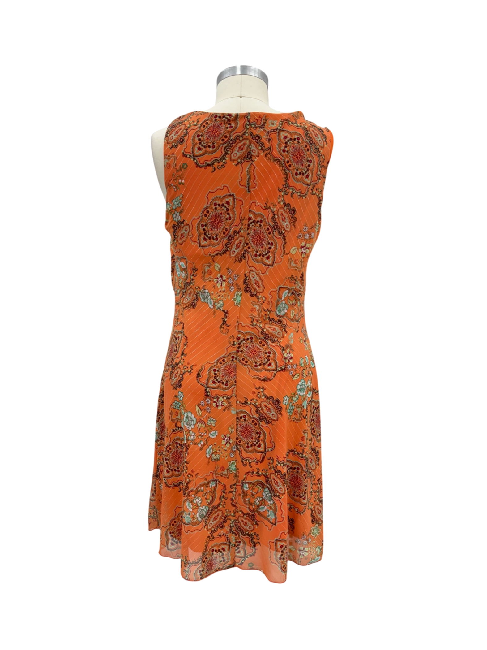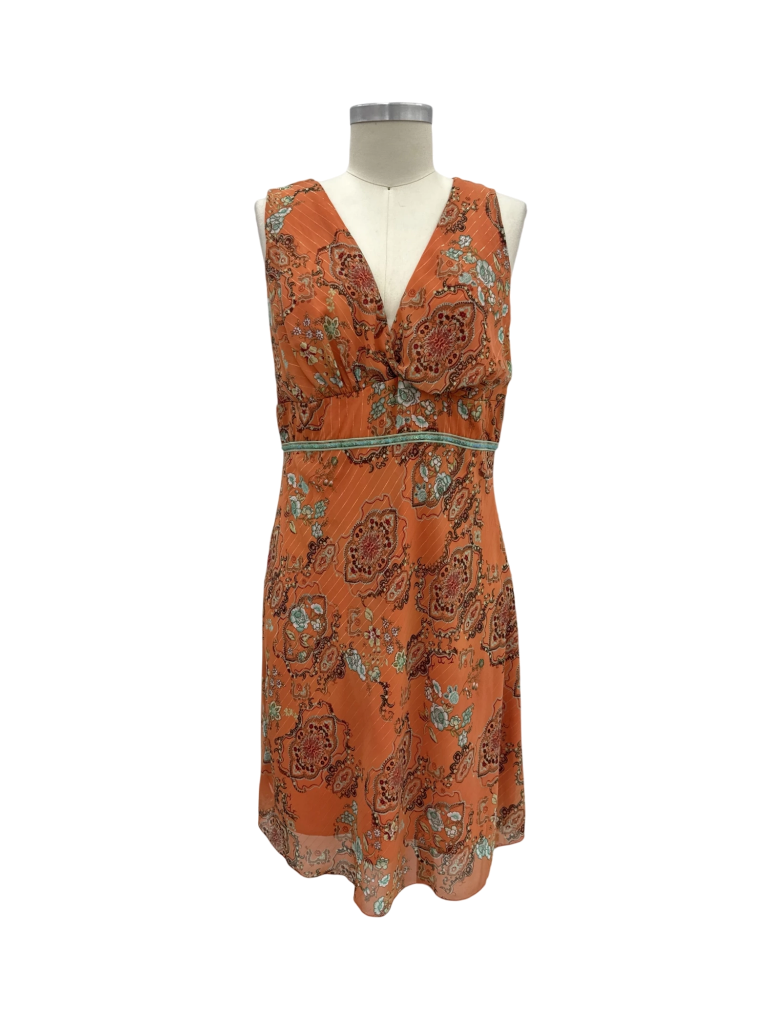 This beautiful pre-owned Torrid dress is perfect for a summer day. Featuring a vibrant orange color and floral pattern, this sleeveless dress has a flattering A-line silhouette and a V-neckline. Made from 100% polyester, it's easy to care for and comfortable to wear. Ideal for casual outings, this dress offers a touch of elegance with its unique floral design. Size 16. Get ready to turn heads in this stylish and eye-catching dress.