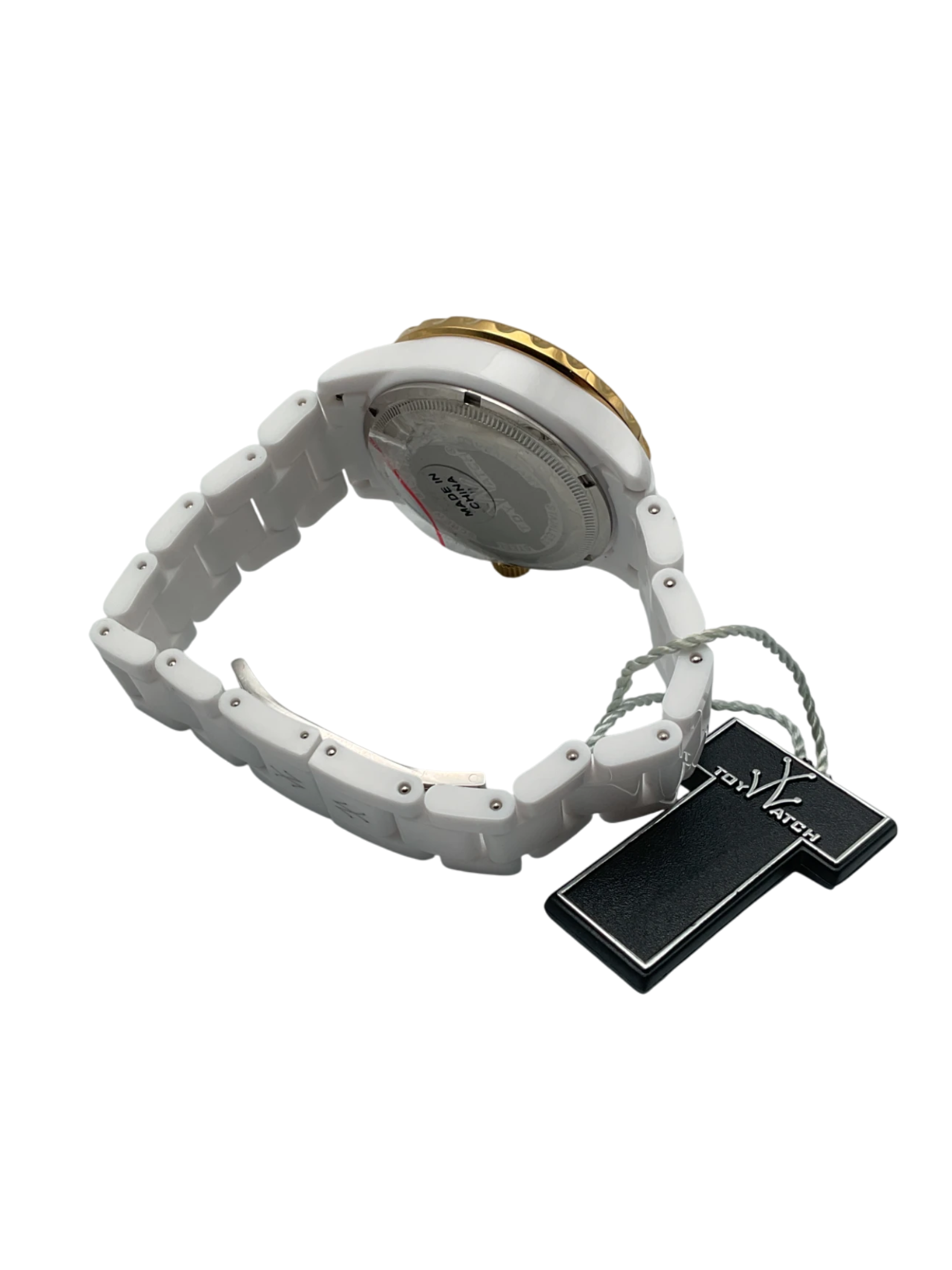 A women's white and gold-colored watch.