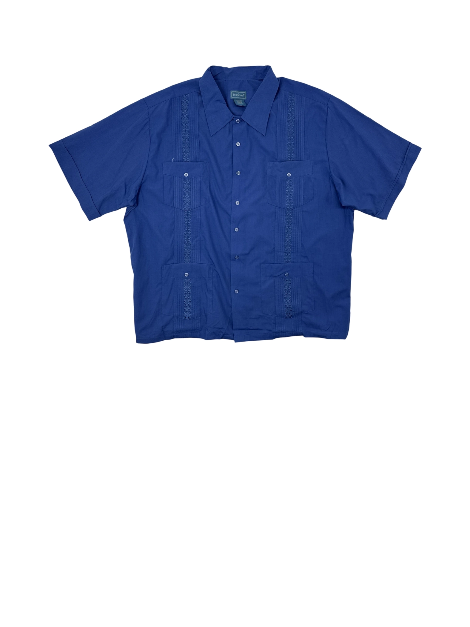 This pre-owned TropiCool short-sleeve shirt is a stylish addition to any wardrobe. Crafted from a blend of polyester and cotton, this button-up shirt features a classic collar and embroidered details, perfect for a casual yet refined look. The vibrant blue color makes it versatile for various occasions. Ideal for summer and spring, this shirt offers both comfort and style, making it a great choice for everyday wear.