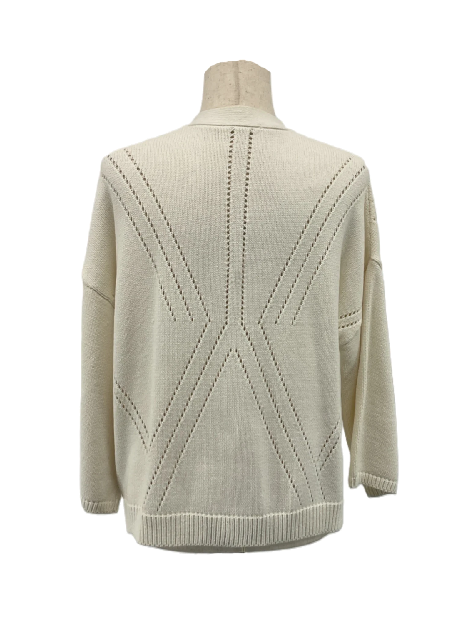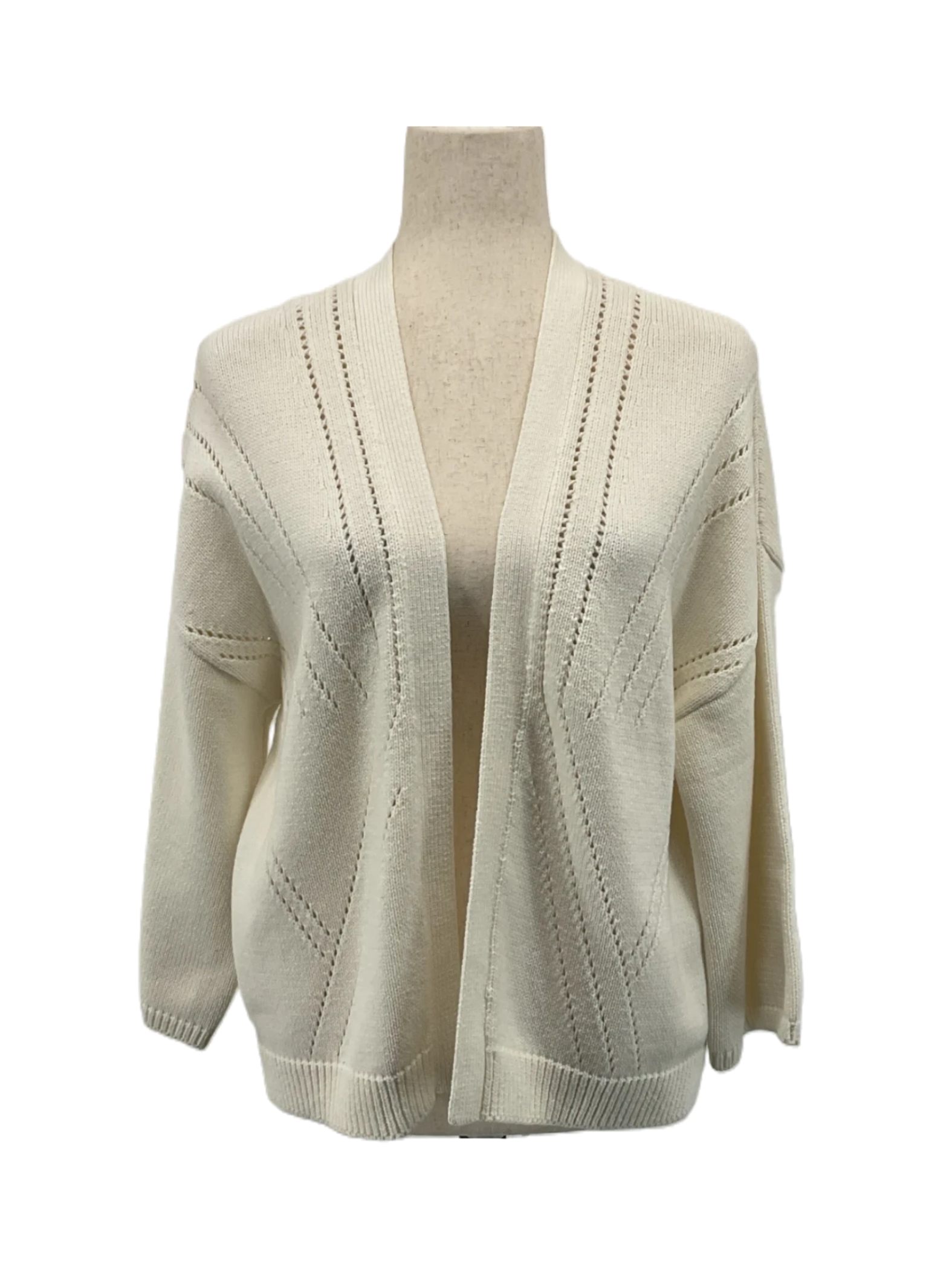 The women's ivory cardigan is a long-sleeved shirt in size 16.