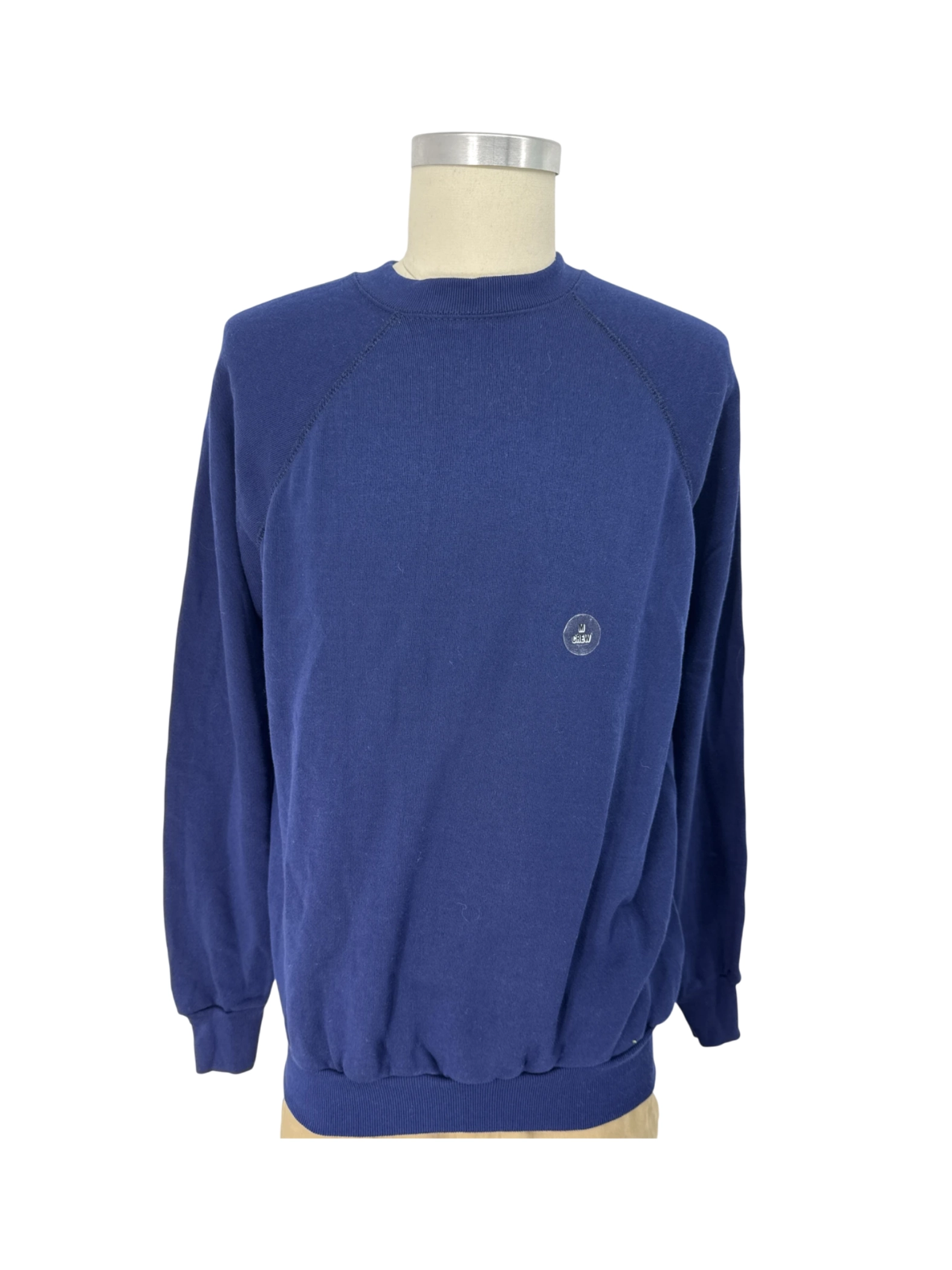 Elevate your casual wardrobe with this pre-owned men's sweater by Tultex. Crafted from a comfortable cotton and acrylic blend, this pullover sweater features a classic crew neck and long sleeves. Its deep blue color makes it versatile for any season, perfect for layering or wearing on its own. This medium-sized sweater offers a relaxed fit, ideal for everyday wear. Excellent condition and a great addition to your sweater collection.