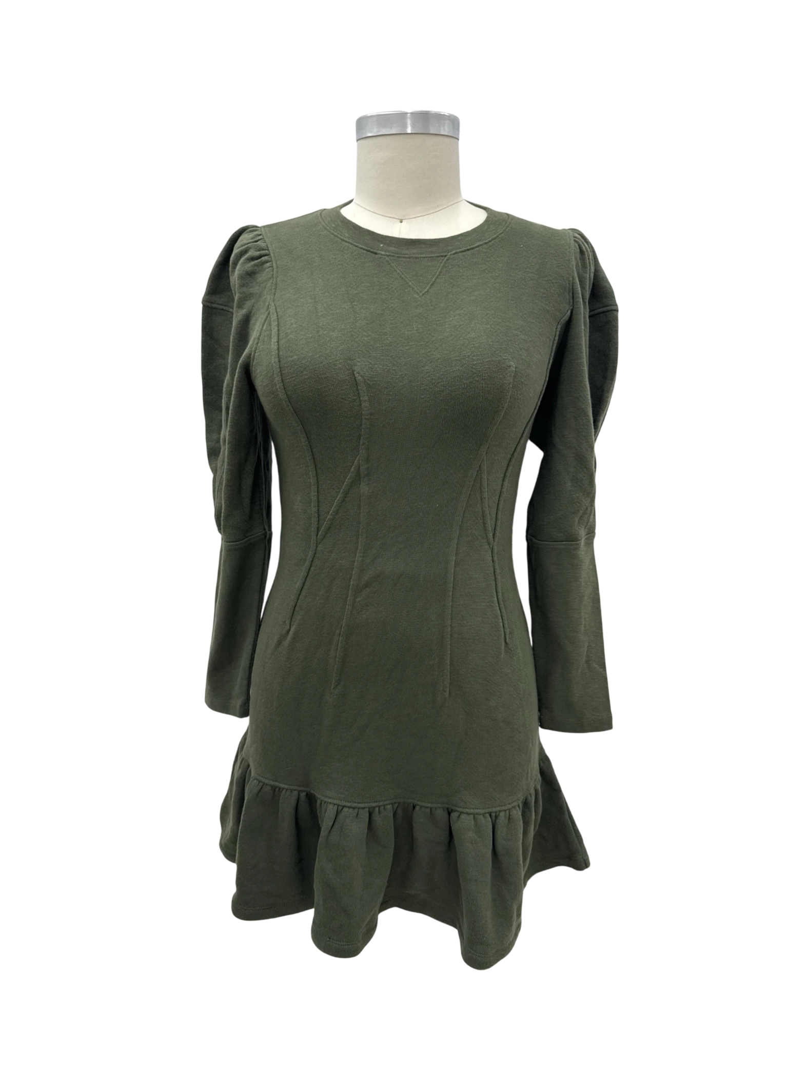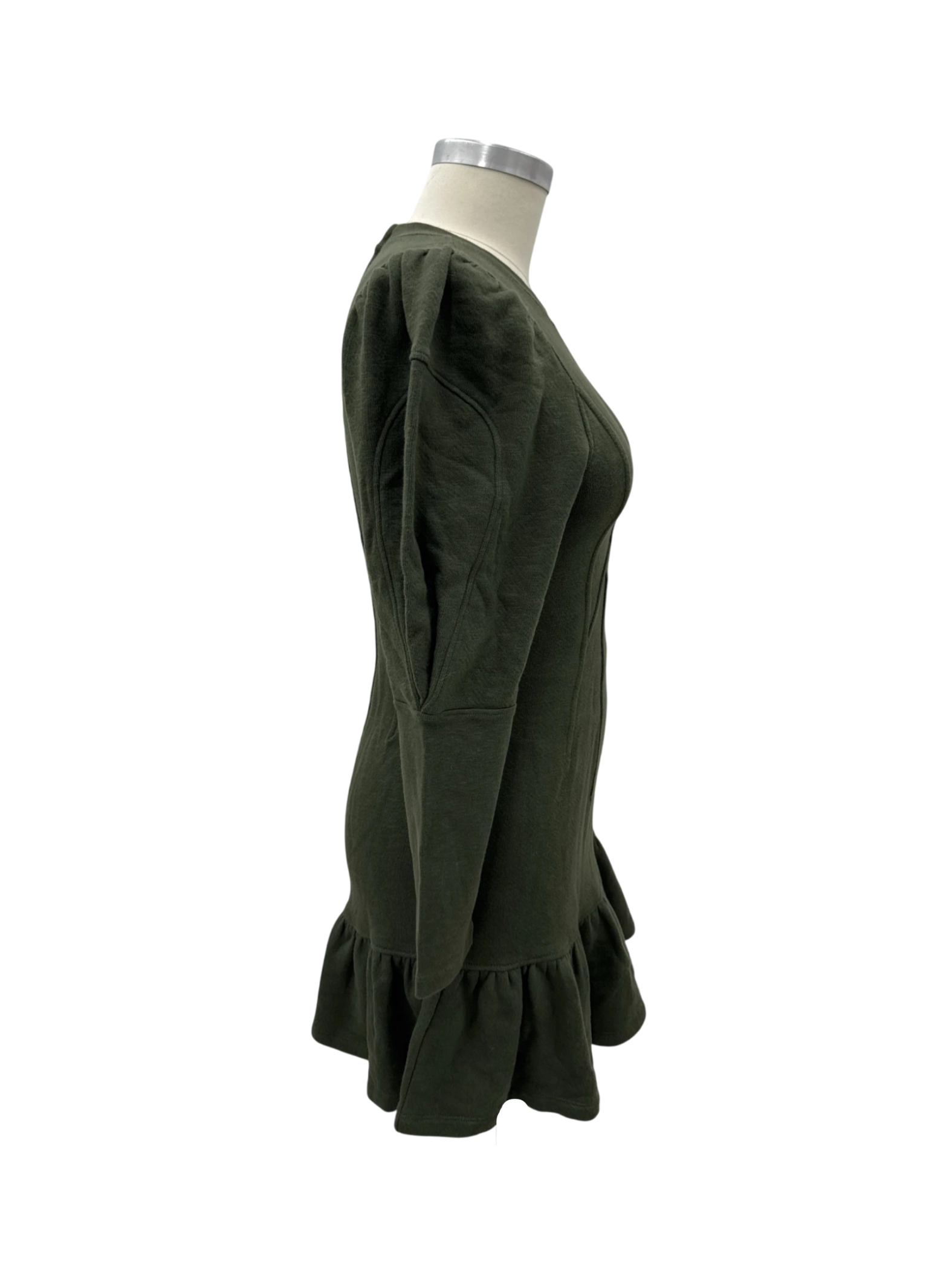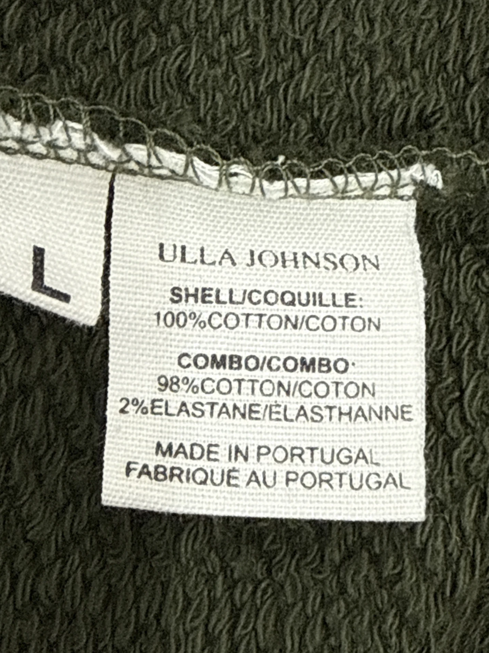 This beautiful pre-owned Ulla Johnson dress is perfect for any casual occasion. Featuring a flattering A-line silhouette, long sleeves, and a round neckline, this dress offers both comfort and style. The dress is made from a comfortable cotton blend in a lovely green color. Perfect for a fall wardrobe, this dress is easy to dress up or down. Get ready to turn heads with this chic and versatile dress!