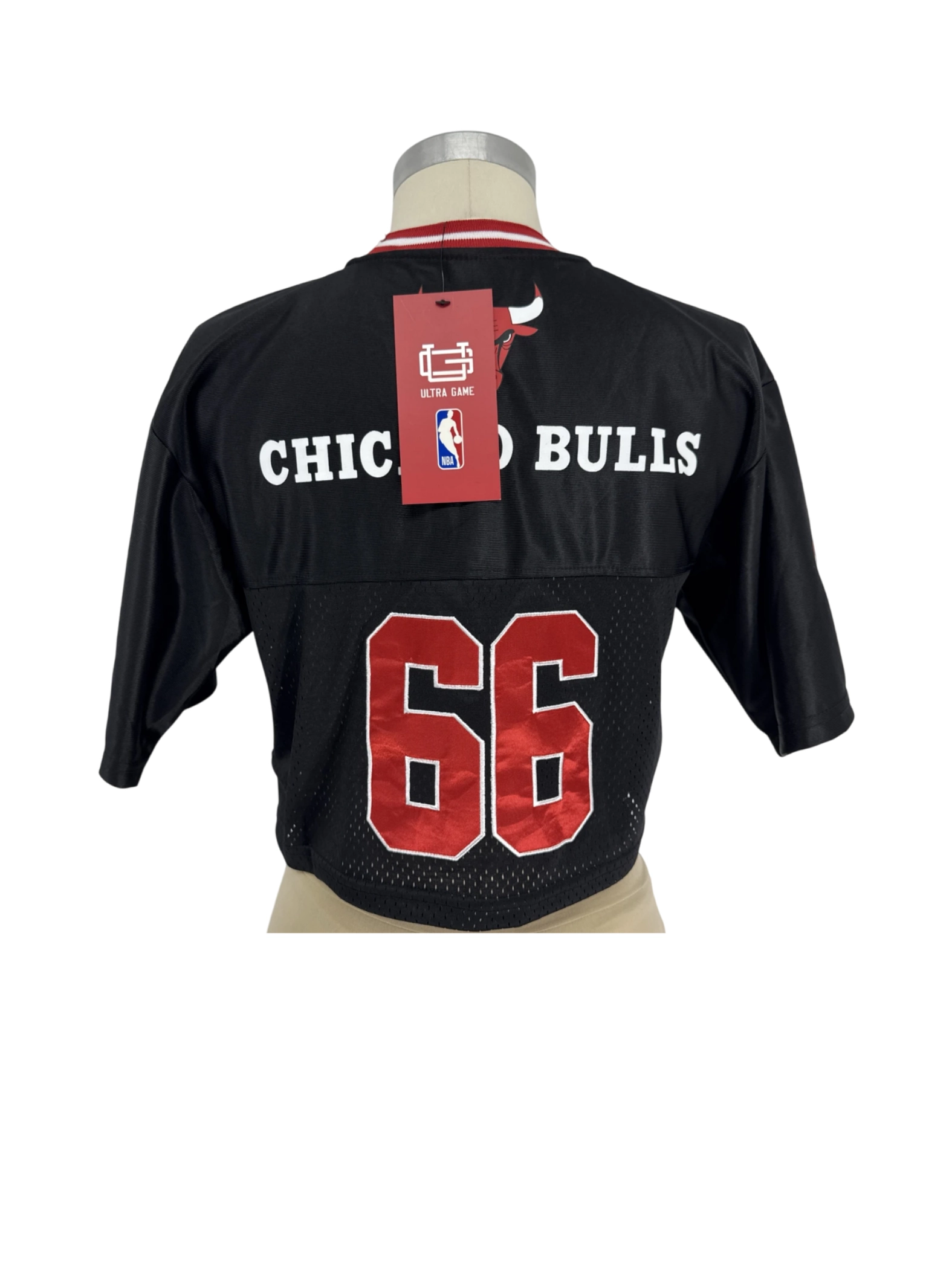 Score big with this vintage Ultra Game Chicago Bulls jersey! This stylish women's XS jersey, in classic black and red, is perfect for any Bulls fan. Made from 100% polyester for comfort and durability, it features the iconic Bulls logo and team name. This pre-owned gem is a must-have for game days or everyday wear. Show off your team pride with this unique and affordable piece of basketball memorabilia. A true fan's treasure!