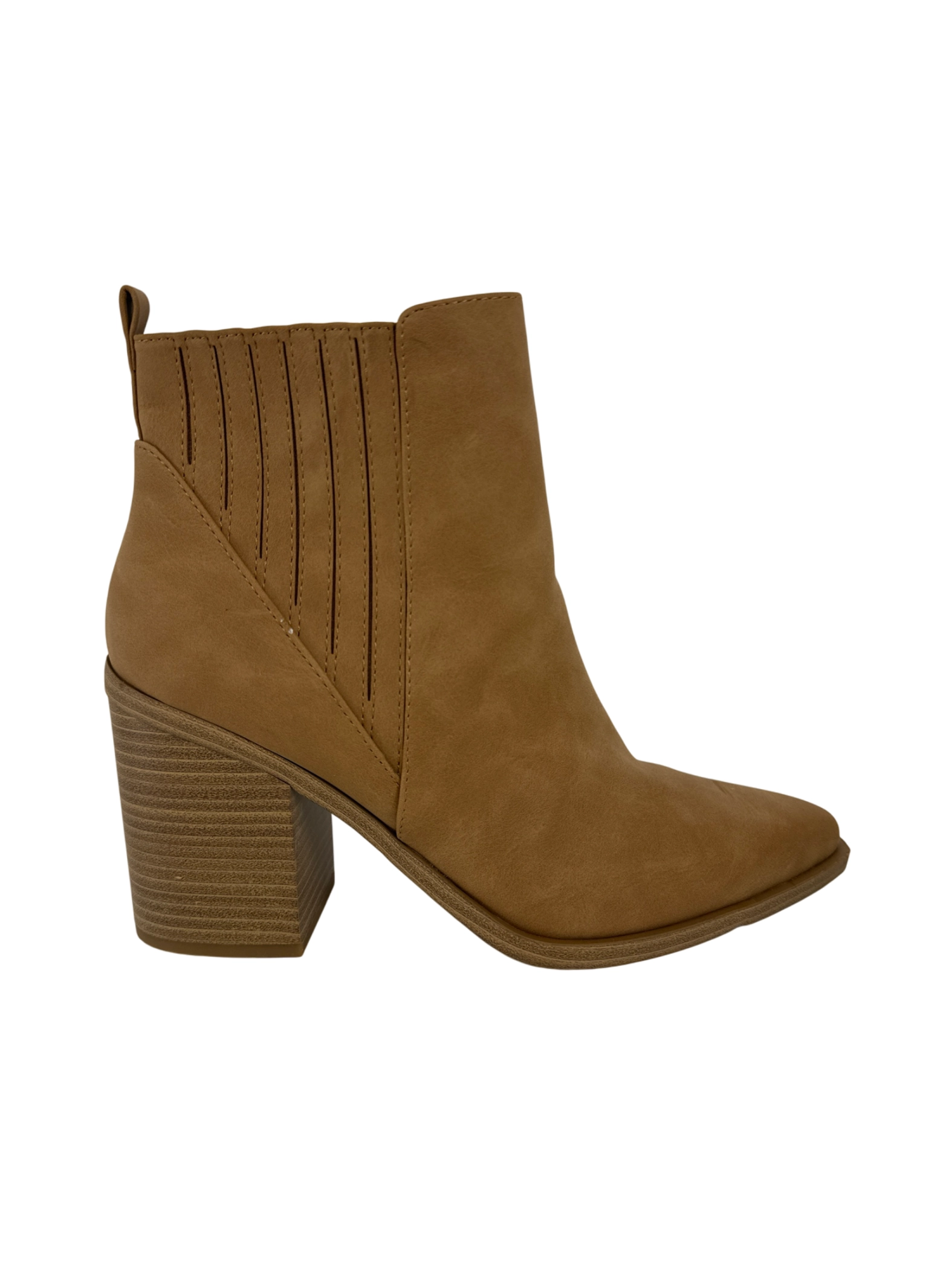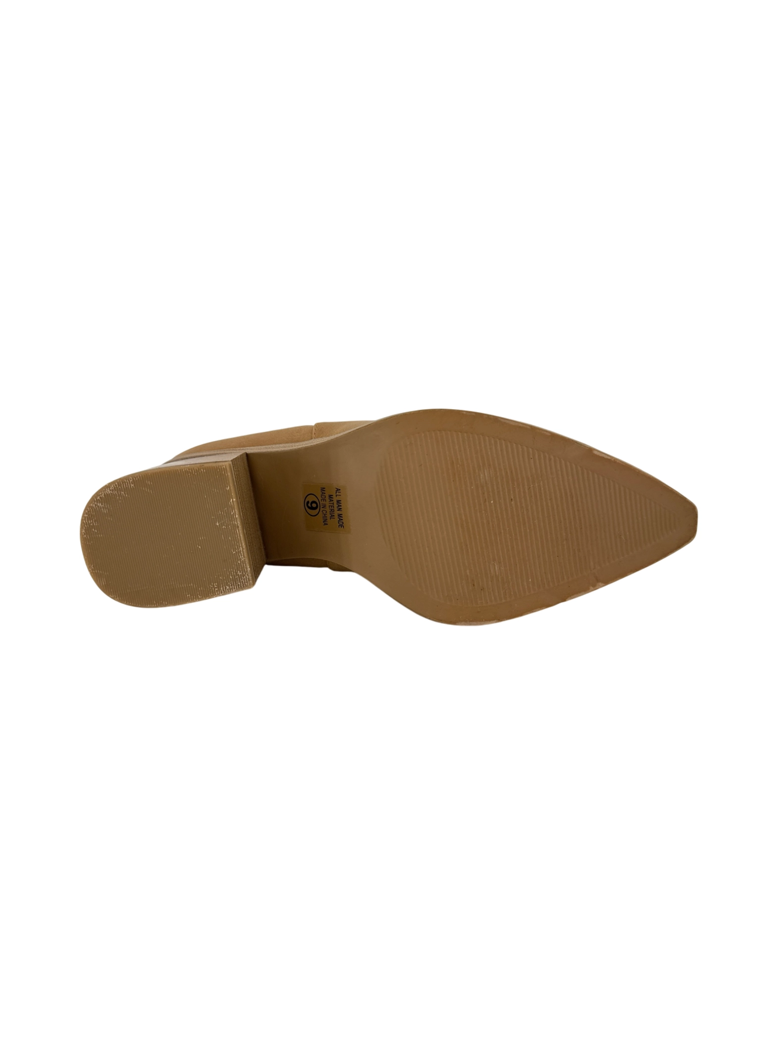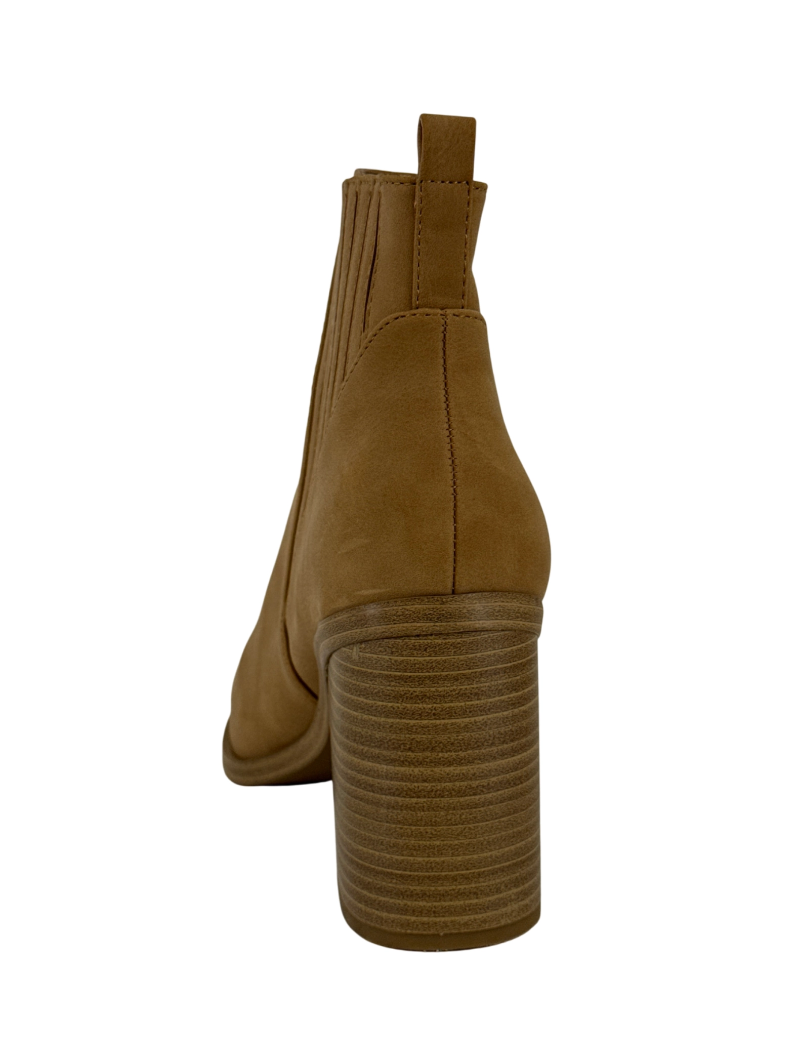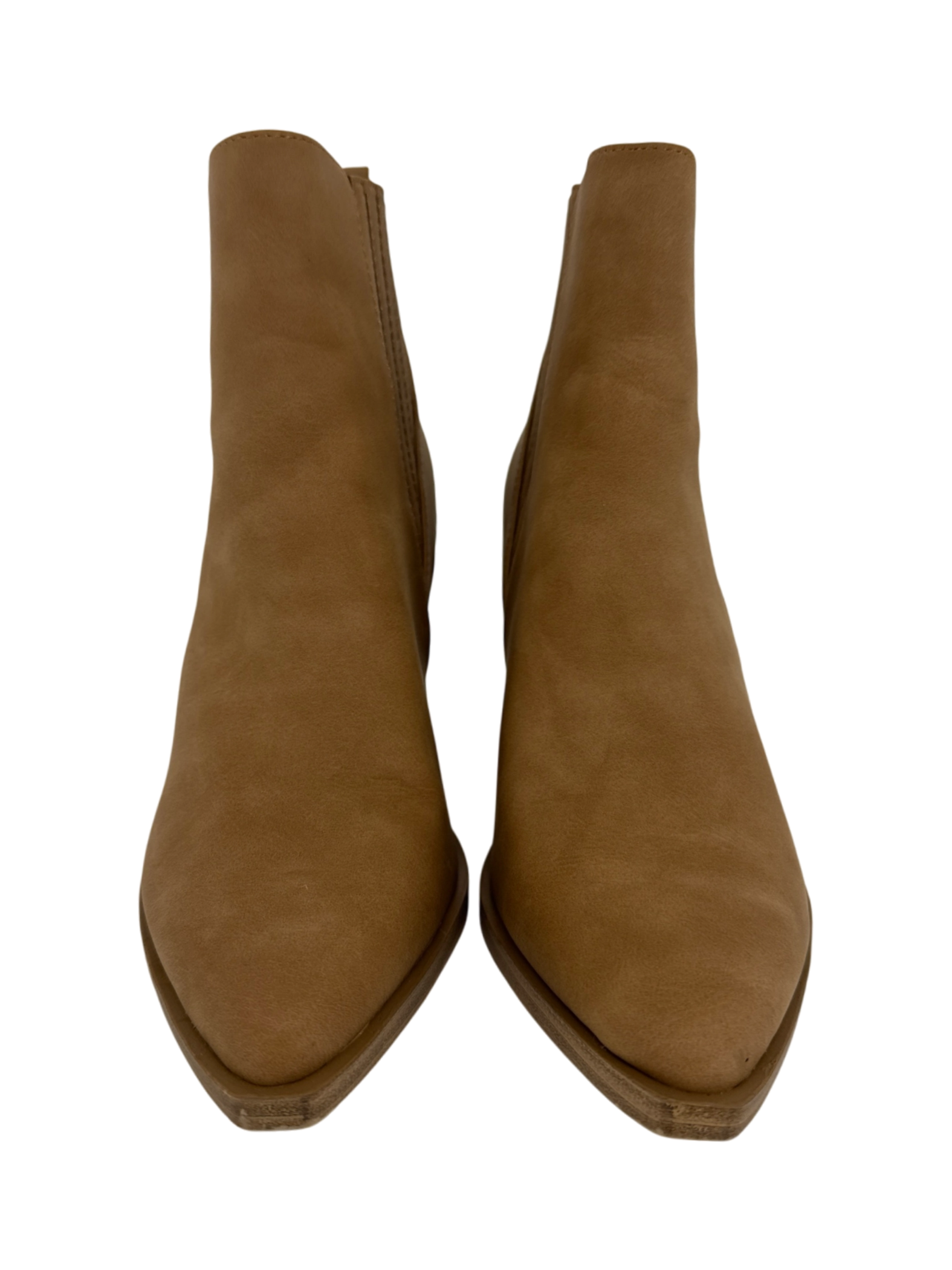 These stylish used women's boots are perfect for the fall and winter seasons. Featuring a trendy brown color and a comfortable block heel, these ankle boots are a versatile addition to any wardrobe. They offer a sleek silhouette and are ideal for both casual and dressy occasions. Crafted for comfort and style, they can be easily paired with jeans, skirts, or dresses. A great find for anyone seeking quality used footwear. - These stylish, pre-owned tan ankle boots are the perfect addition to your fall and winter wardrobe. Featuring a block heel and a sleek pointed toe, they offer both comfort and fashion-forward style. The neutral tan color makes them versatile enough to pair with a variety of outfits, from jeans to dresses. Crafted with quality materials, these boots are a great value for your money. Get ready to step out in confidence and style with these must-have ankle boots.