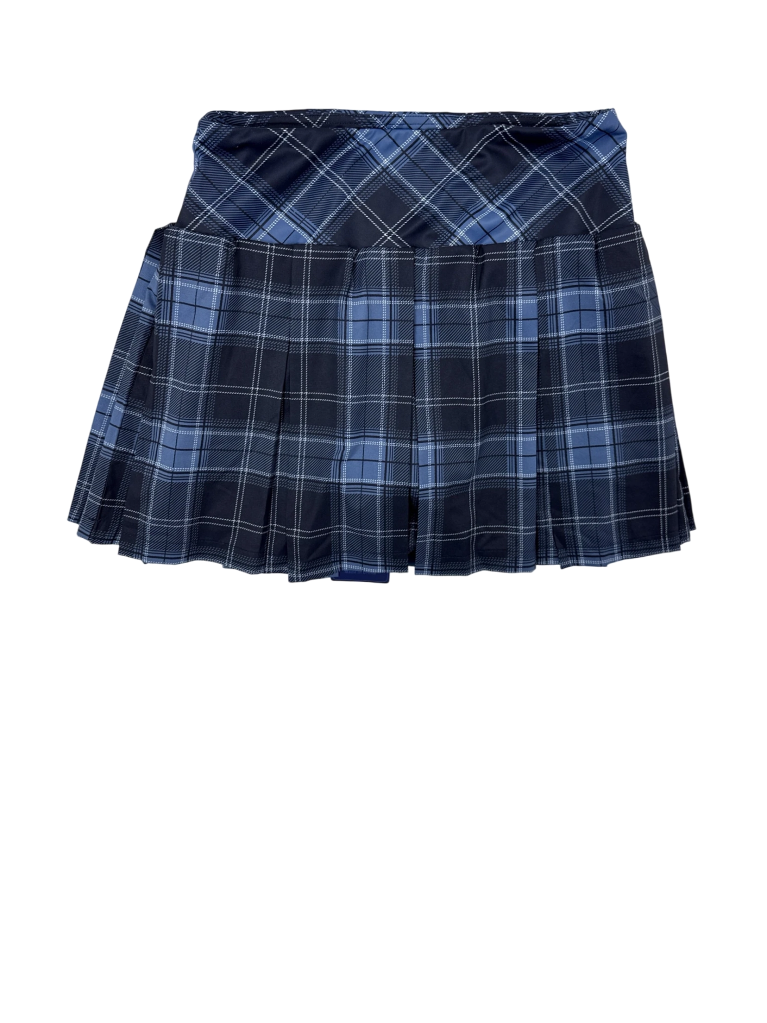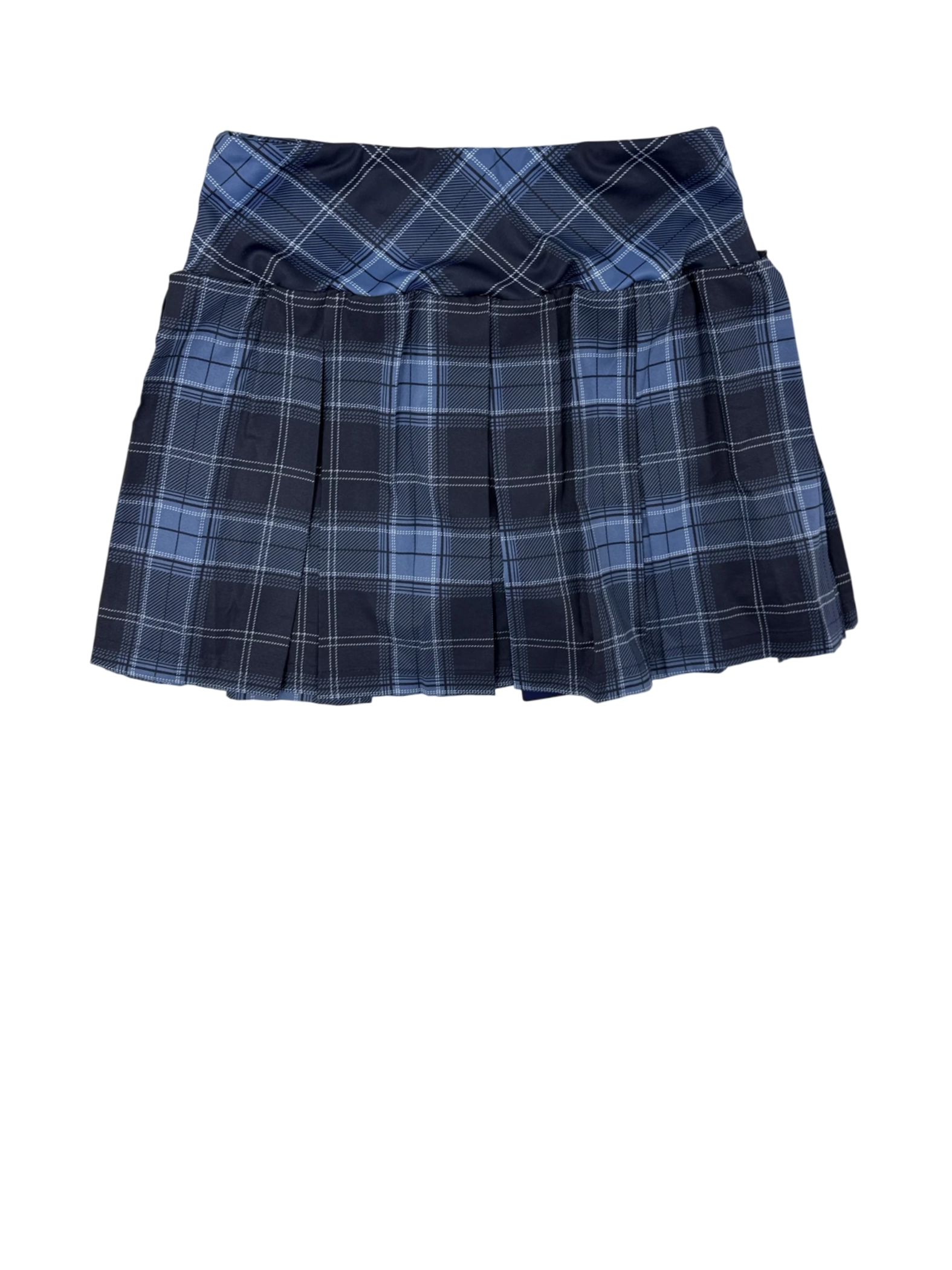 This pre-owned women's skirt features a classic plaid pattern in shades of blue. It's a versatile A-line style, perfect for everyday wear or dressing up. Crafted from a blend of polyester and spandex, this skirt offers both comfort and durability. The pleated design adds a touch of sophistication, making it suitable for various occasions.