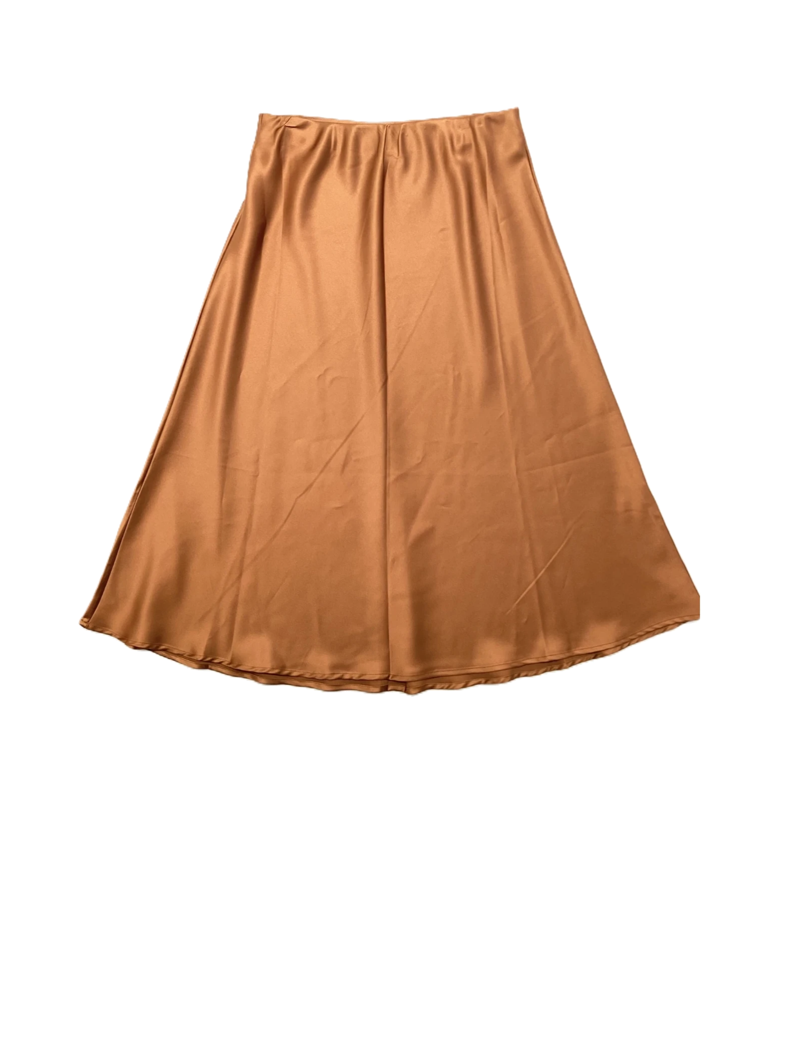 This is an elegant solid summer midi casual faux silk satin skirt suitable for daily wear by office ladies.