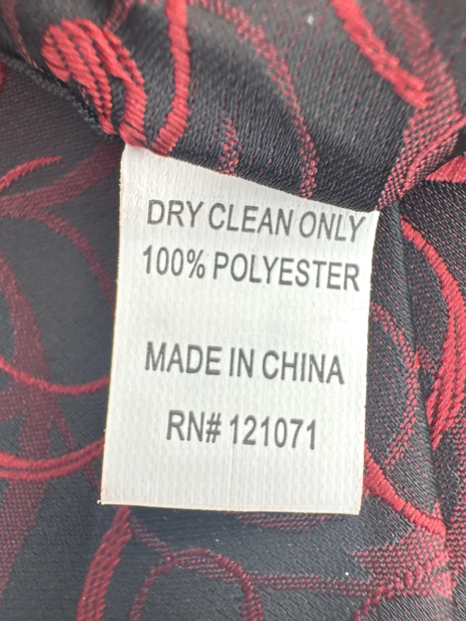 Elevate your formal attire with this stylish pre-owned tie. Featuring a striking combination of black and burgundy with a captivating floral pattern, this tie is perfect for adding a touch of elegance to any outfit. Crafted from 100% polyester, it offers durability and a smooth texture. Ideal for fall and winter occasions, this tie is sure to make a statement.