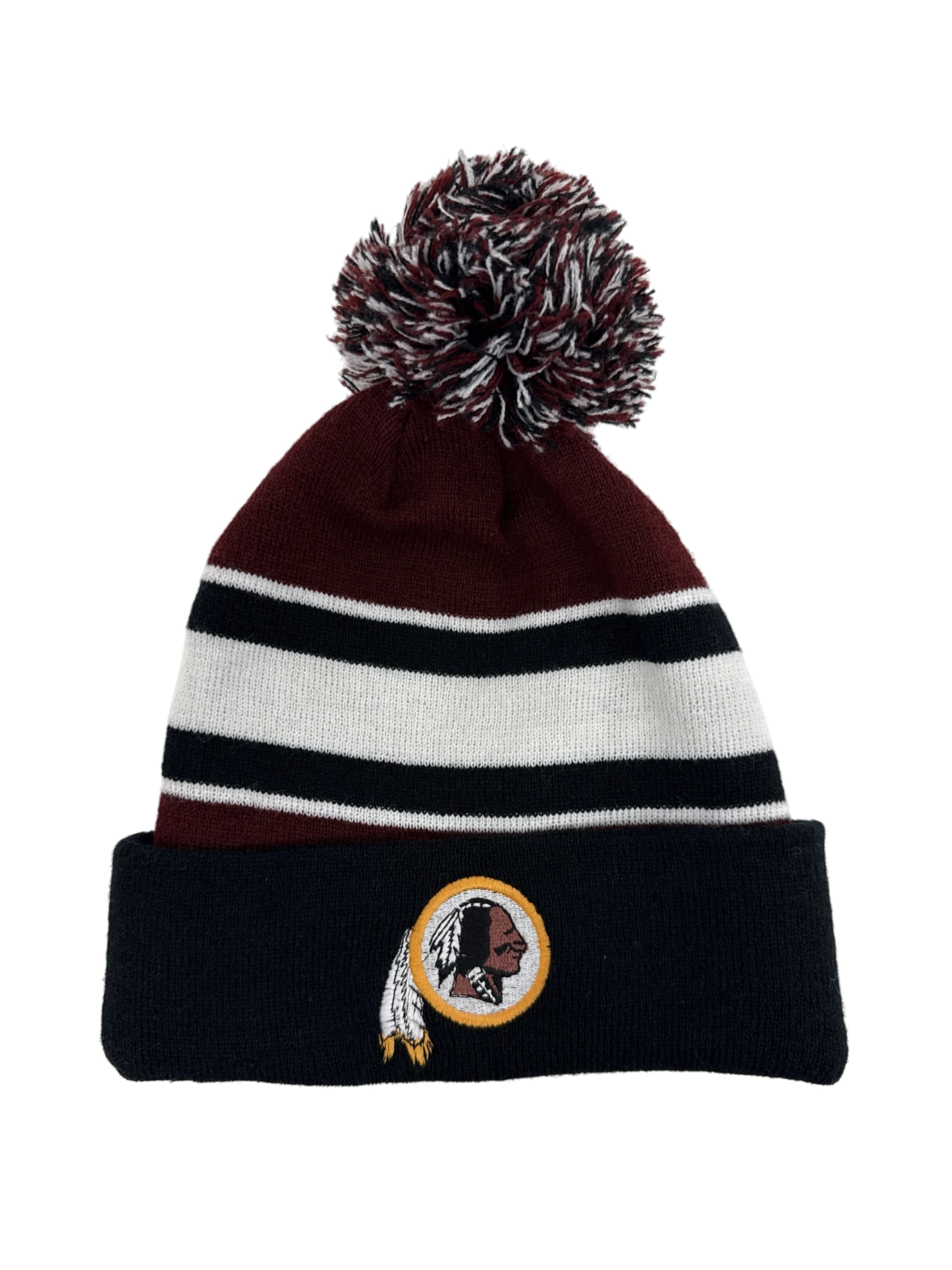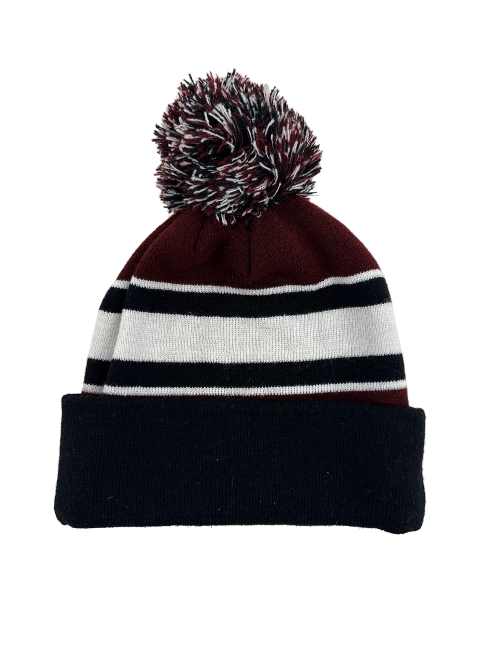 Stay warm and show your team spirit with this pre-owned beanie. This hat features bold black, white, and burgundy stripes, and is made of comfortable acrylic. This cozy cap is the perfect accessory for the cooler months. One size fits most, making it an ideal gift for any fan or a great addition to your own winter wardrobe.