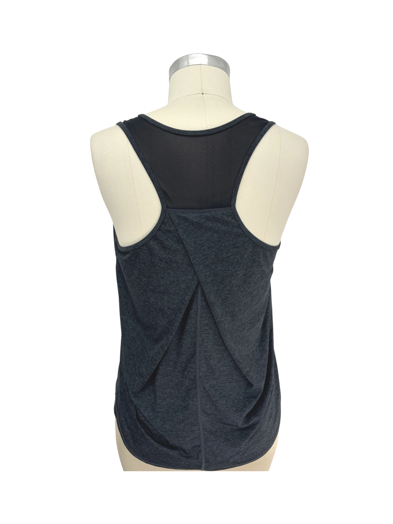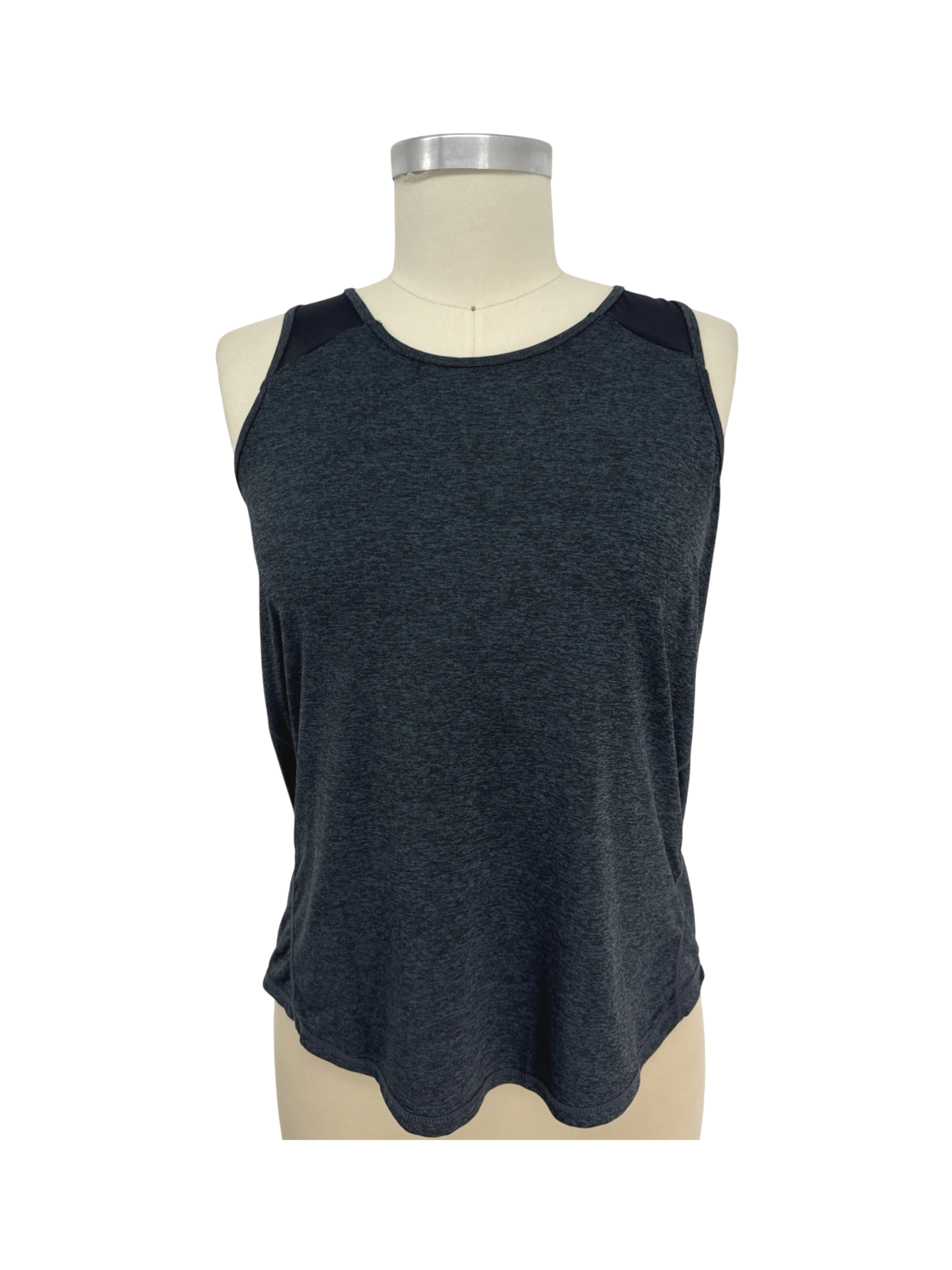 Elevate your activewear collection with this stylish used tank top, perfect for workouts or casual wear. Made from a blend of polyester and spandex, this top offers a comfortable and flexible fit. The sleek gray and black design adds a modern touch, making it a versatile piece for your wardrobe. Ideal for summer, spring, and fall, this tank top is a must-have for any fitness enthusiast.