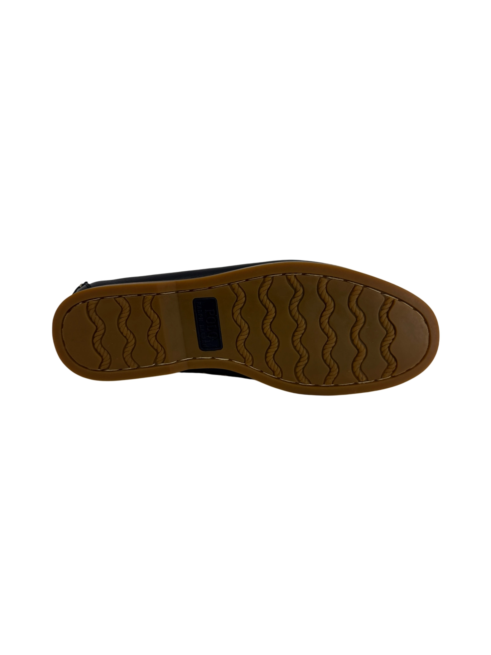 Stain in Shoe insole - These pre-owned men's boat shoes are crafted from genuine leather. The shoes feature a classic boat shoe design, perfect for casual wear and warmer weather. The black leather uppers are complemented by brown accents. They offer both style and comfort, making them a versatile addition to any wardrobe. These boat shoes are suitable for a variety of occasions, from casual outings to relaxed social gatherings.