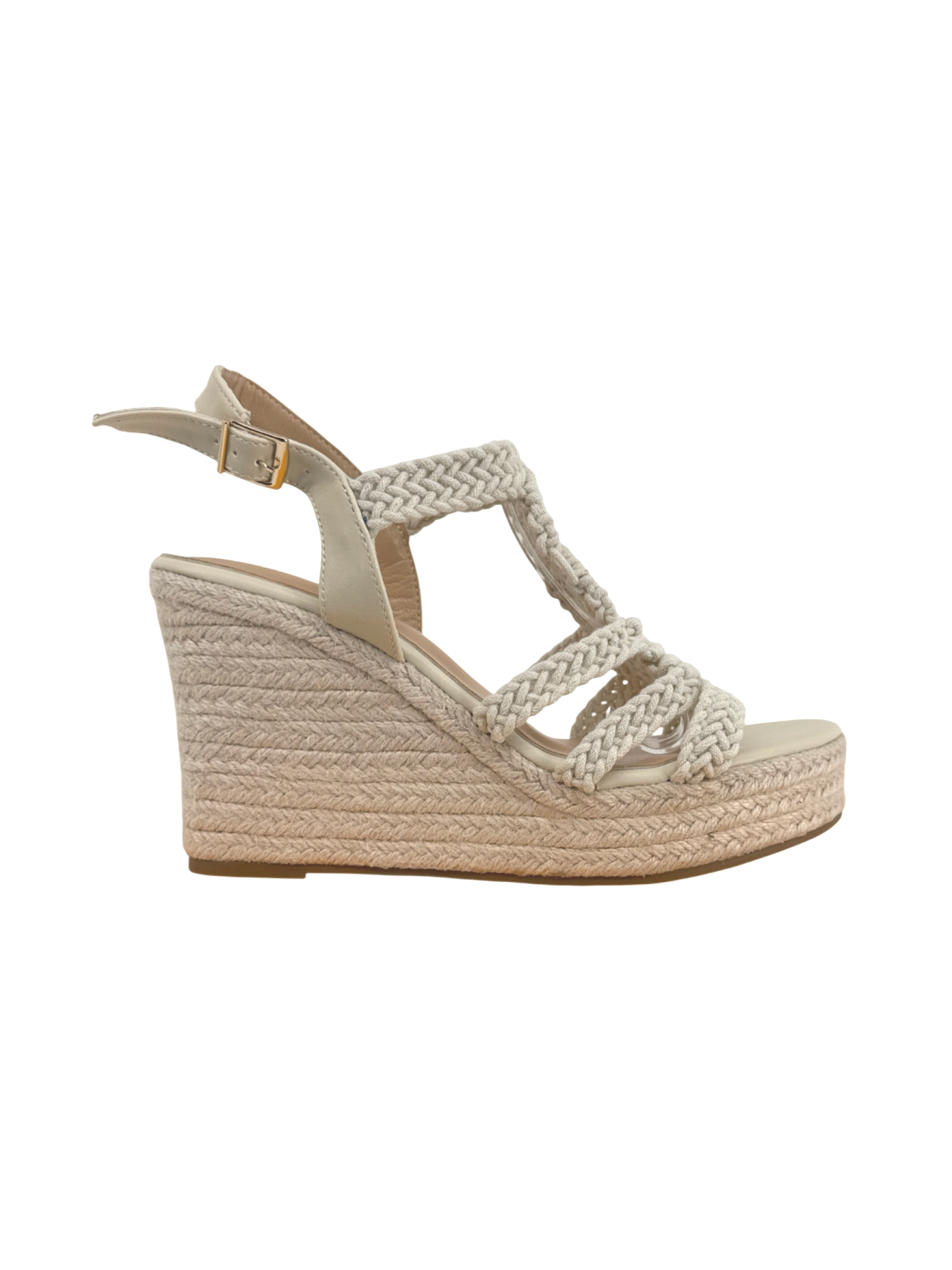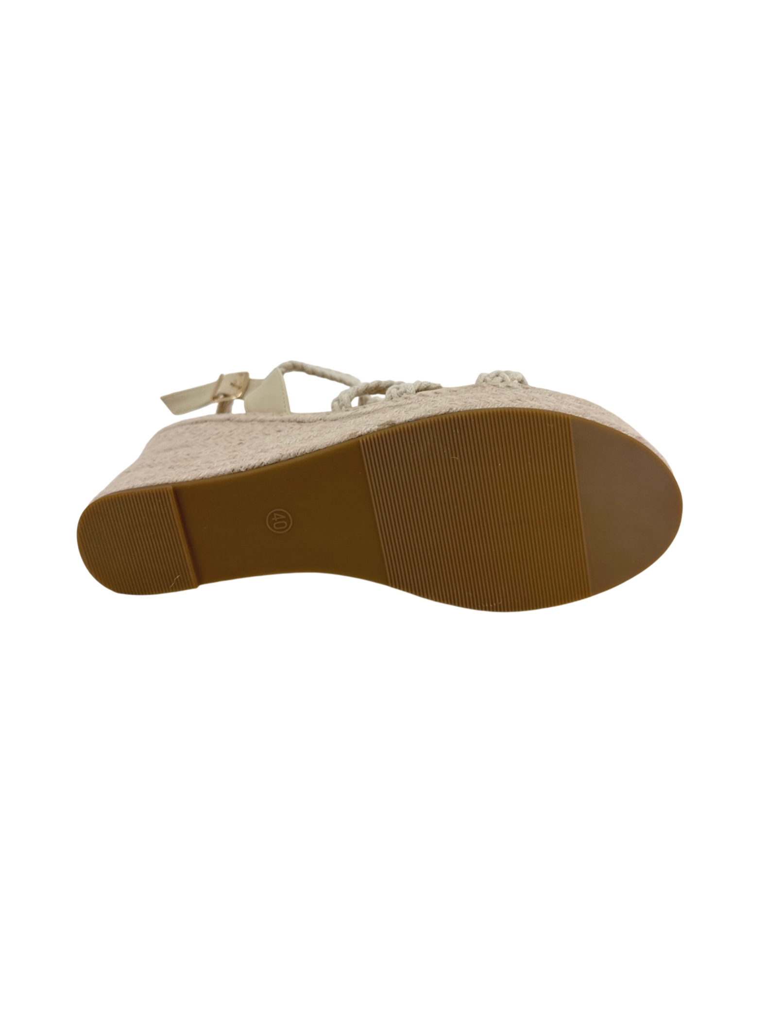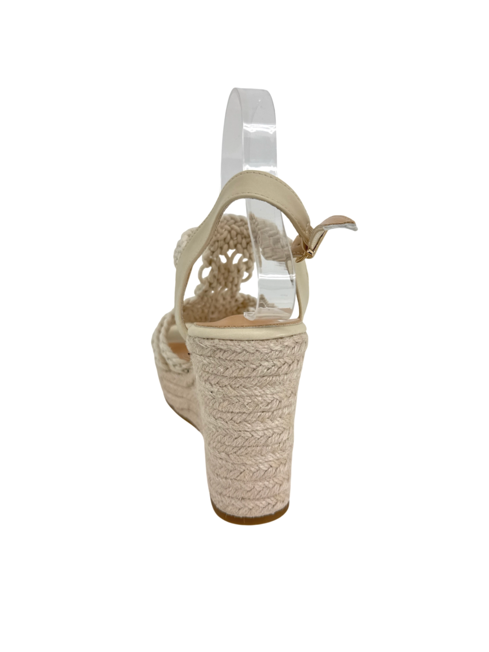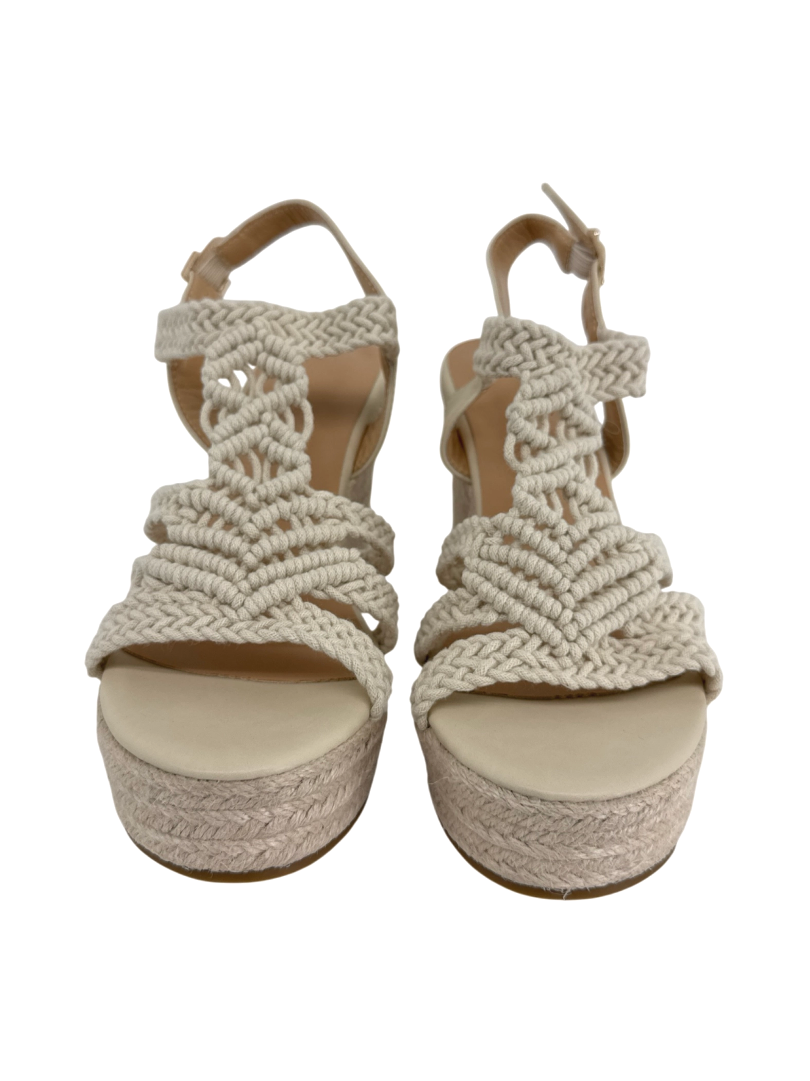 Step into summer with these stylish pre-owned women's wedges. Featuring a woven design in a versatile ivory color, these sandals offer both comfort and a chic look. Perfect for warm weather outings, these wedges elevate any outfit. The platform design adds extra comfort and style, making them a great choice for everyday wear or special occasions. Grab a pair of these comfortable sandals today!