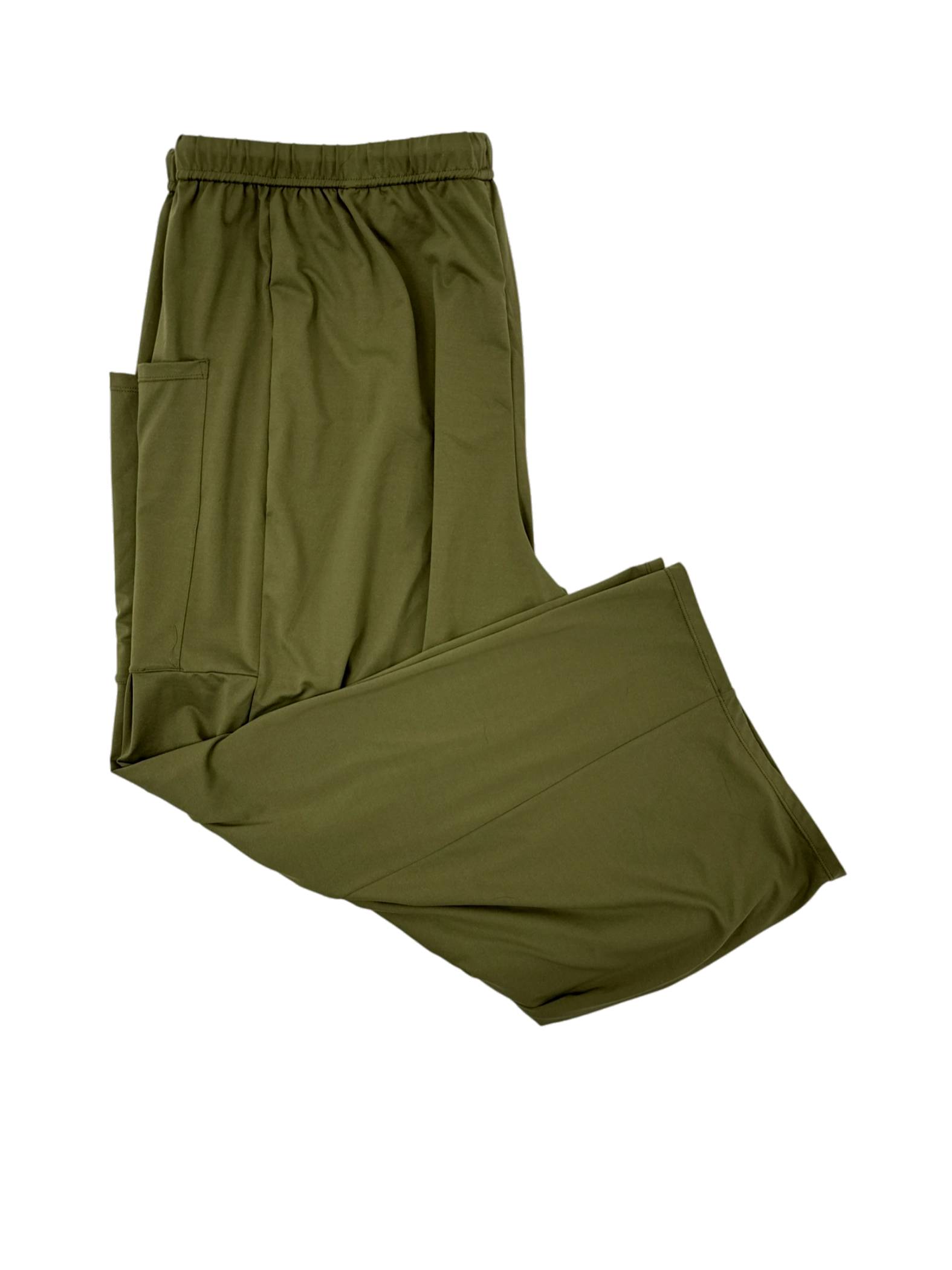 These pre-owned women's pants offer a stylish and comfortable wide-leg silhouette. The olive color adds a touch of sophistication, perfect for warm weather. The pants feature a relaxed fit and are made from a soft and lightweight material. Ideal for creating a chic, casual look, these pants are versatile enough for both daytime and evening wear. A great addition to any wardrobe looking for both style and comfort.