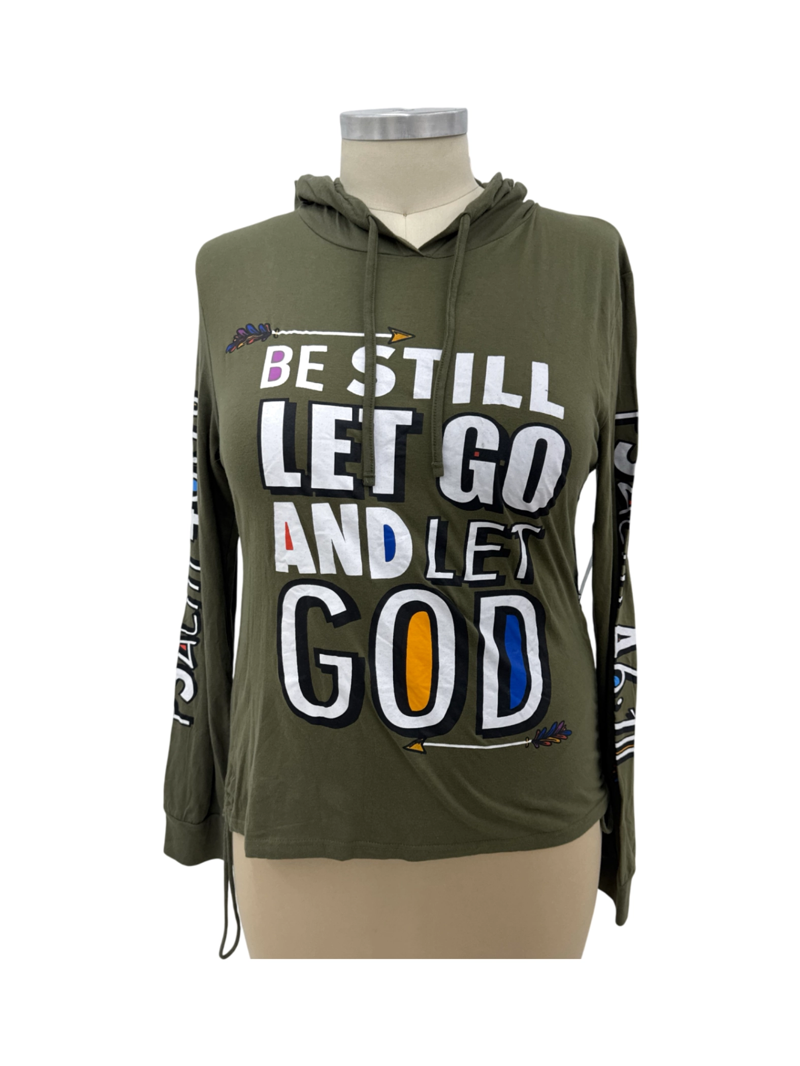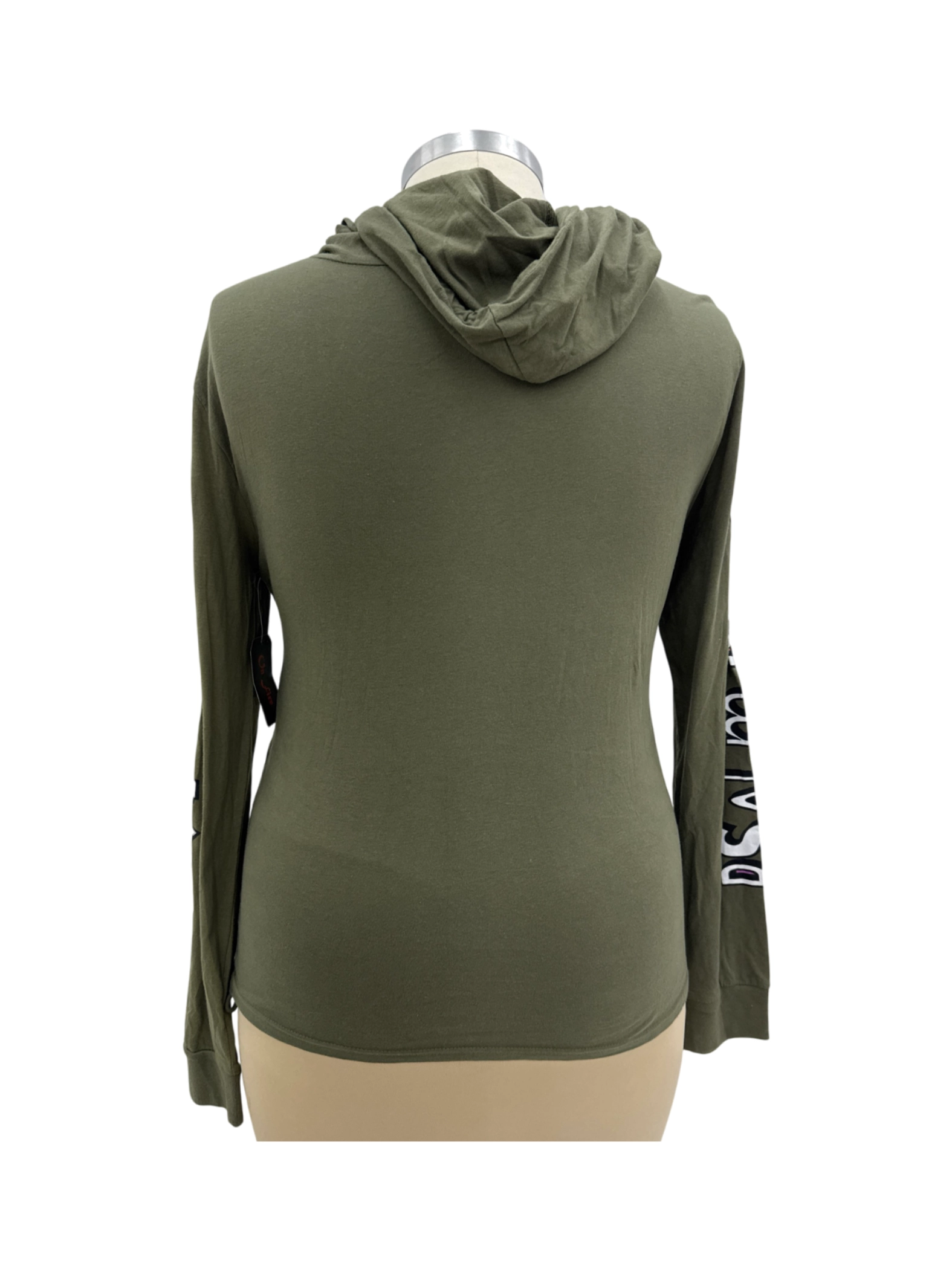 This pre-owned women's top is a comfortable and stylish addition to any wardrobe. Featuring a round neckline and long sleeves, it's perfect for all seasons. Made from 100% cotton, this tee offers a relaxed fit. The green color and motivational phrase add a touch of personality to your casual outfits. This top is in good condition, and ready to be a part of your daily wear. Machine washable for easy care, it offers both comfort and convenience.