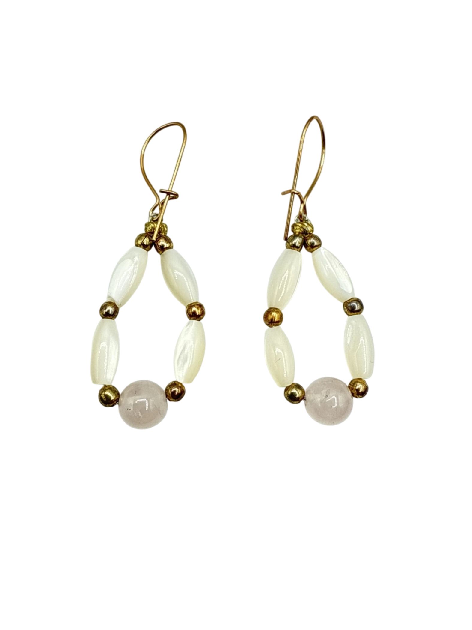 Elegant drop earrings featuring a gold-toned metal design adorned with delicate pearls and a lovely pink stone accent. These earrings are the perfect accessory to add a touch of sophistication to any outfit, from casual wear to special occasions. They are a perfect gift for her.