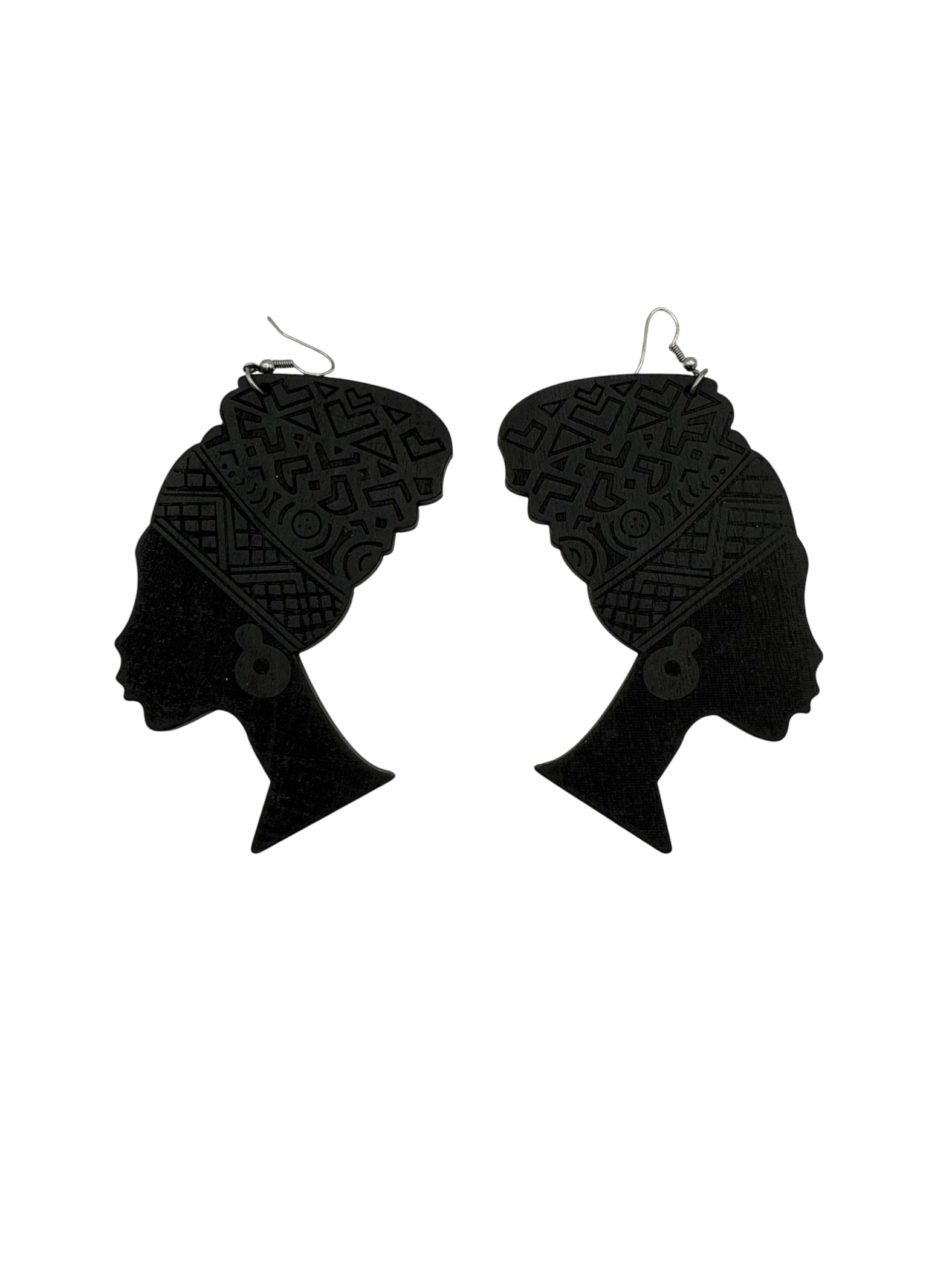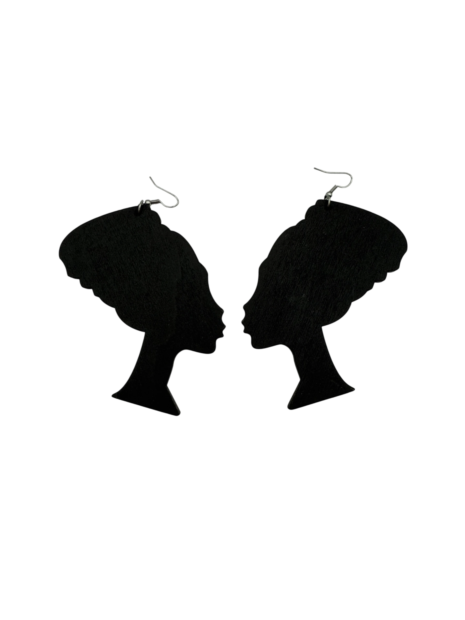 These unique wooden drop earrings feature a striking silhouette of a woman's profile, crafted from black wood. Their bold design makes them a perfect statement piece for any outfit. Lightweight and comfortable for all-day wear, these earrings bring a touch of artistic flair to your look. Ideal for those seeking a cultural and stylish accessory, these earrings are a must-have for expressing individuality. These earrings make a great gift for her.