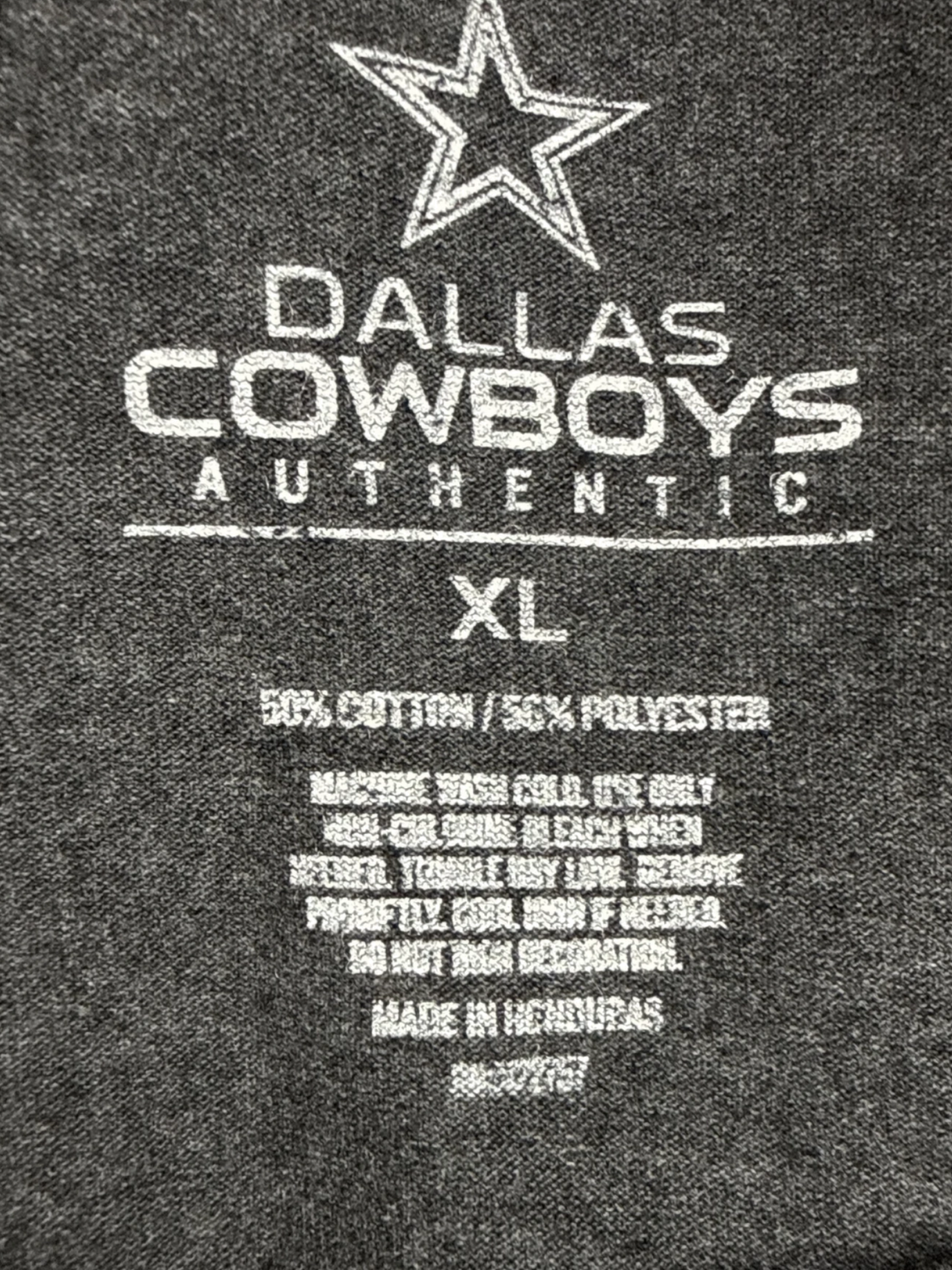 Show your Dallas Cowboys pride with this authentic men's t-shirt! This pre-owned t-shirt is perfect for any Cowboys fan. Crafted from a comfortable cotton blend, this tee is ideal for game days or everyday wear. Features the Dallas Cowboys logo. A great addition to any fan's wardrobe!