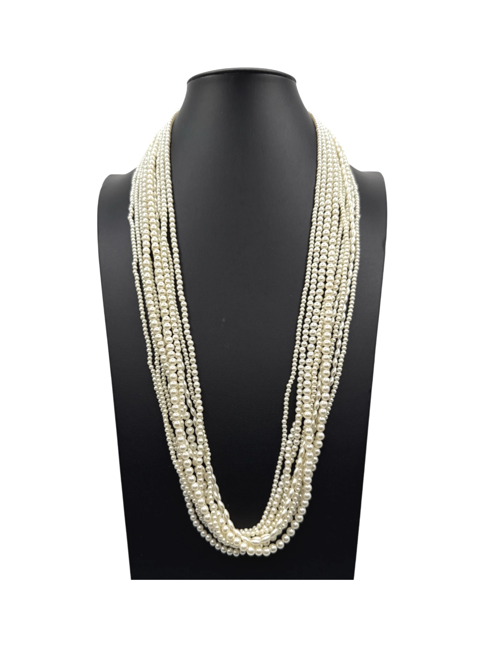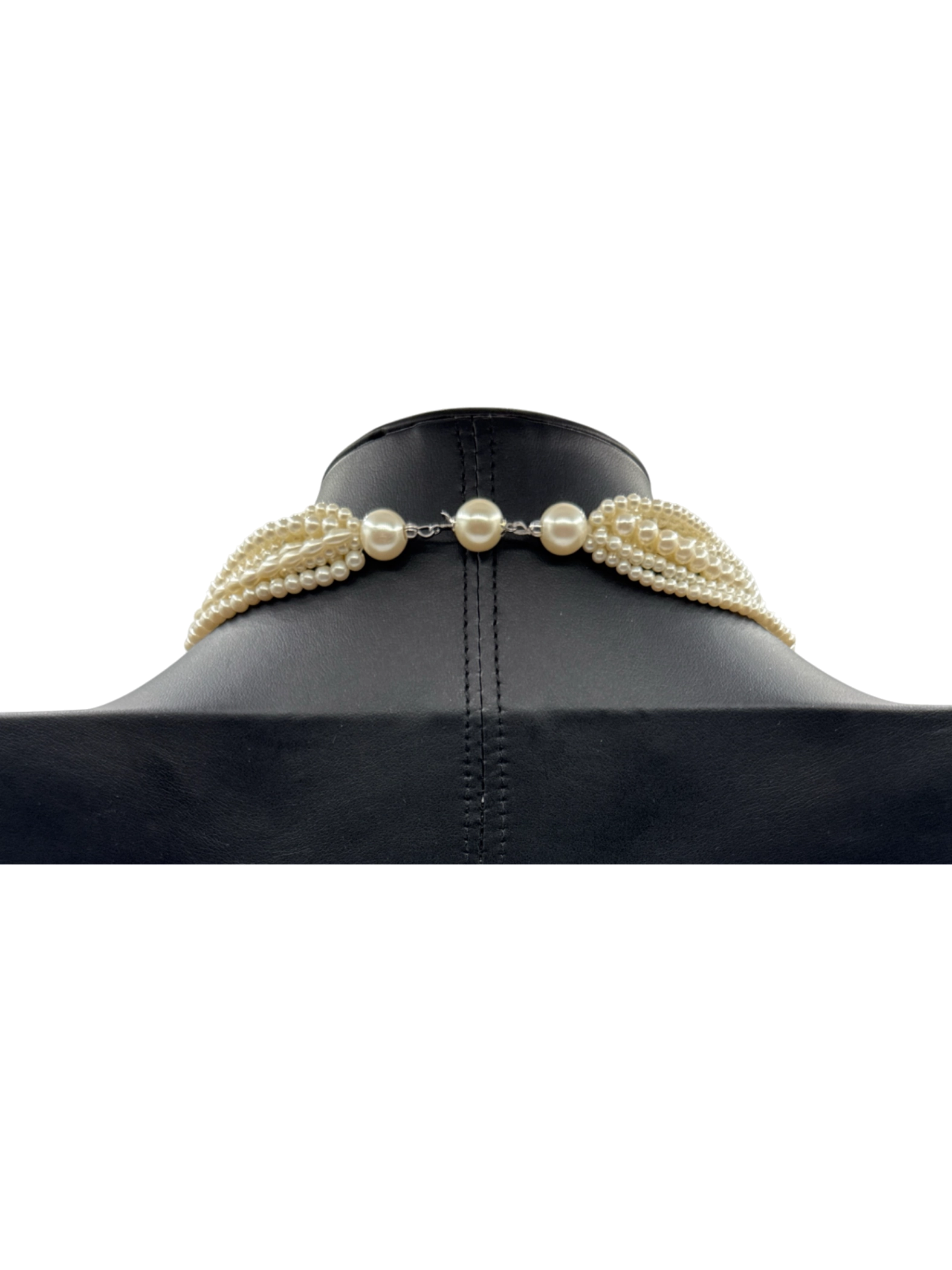 Elegant pre-owned pearl necklace, a timeless piece perfect for adding a touch of sophistication to any outfit. This stunning necklace features multiple strands of lustrous pearls, offering a luxurious look and feel. The classic design makes it suitable for both special occasions and everyday wear. It's an ideal accessory to elevate your style and is sure to become a cherished addition to your jewelry collection.