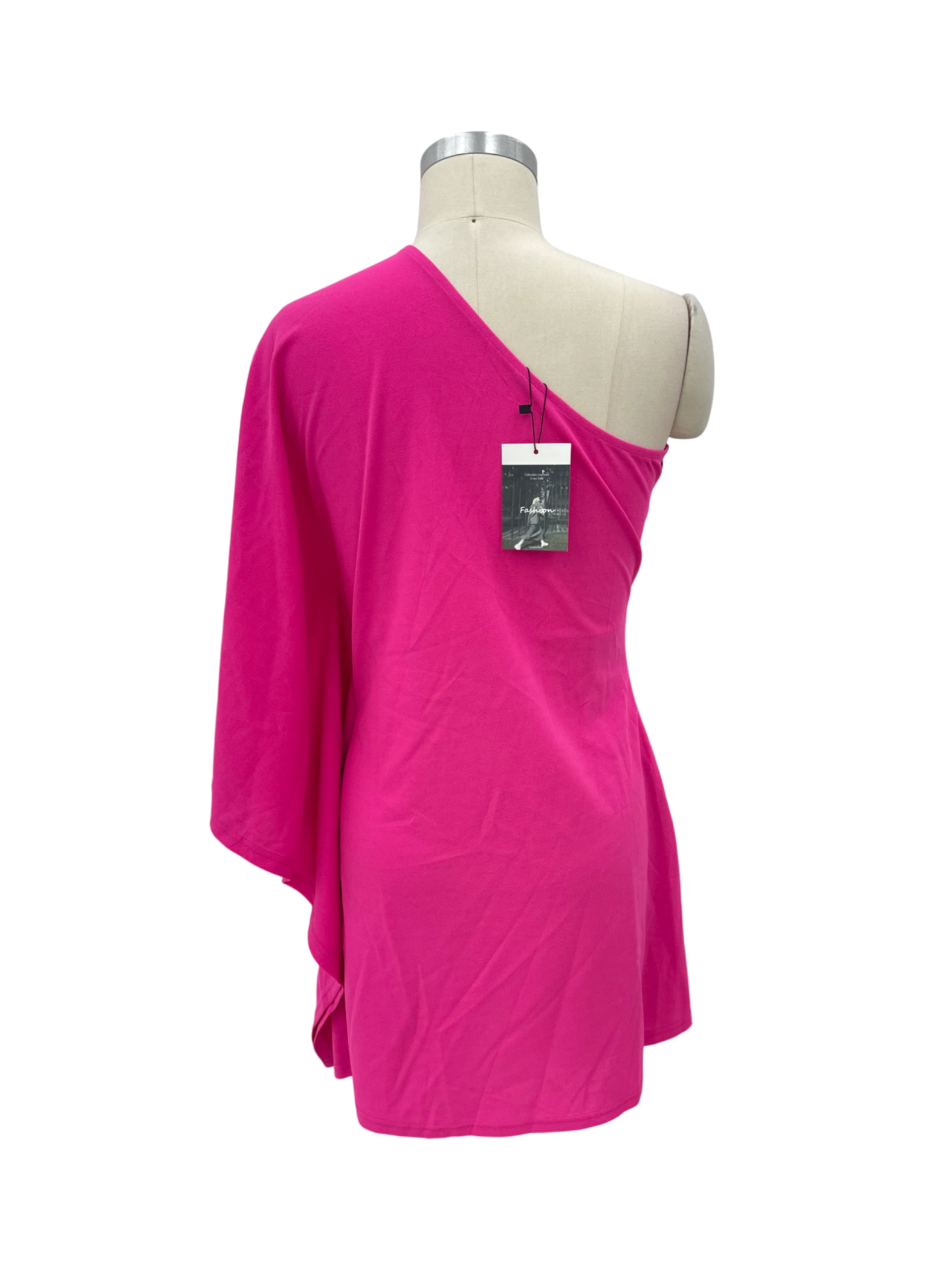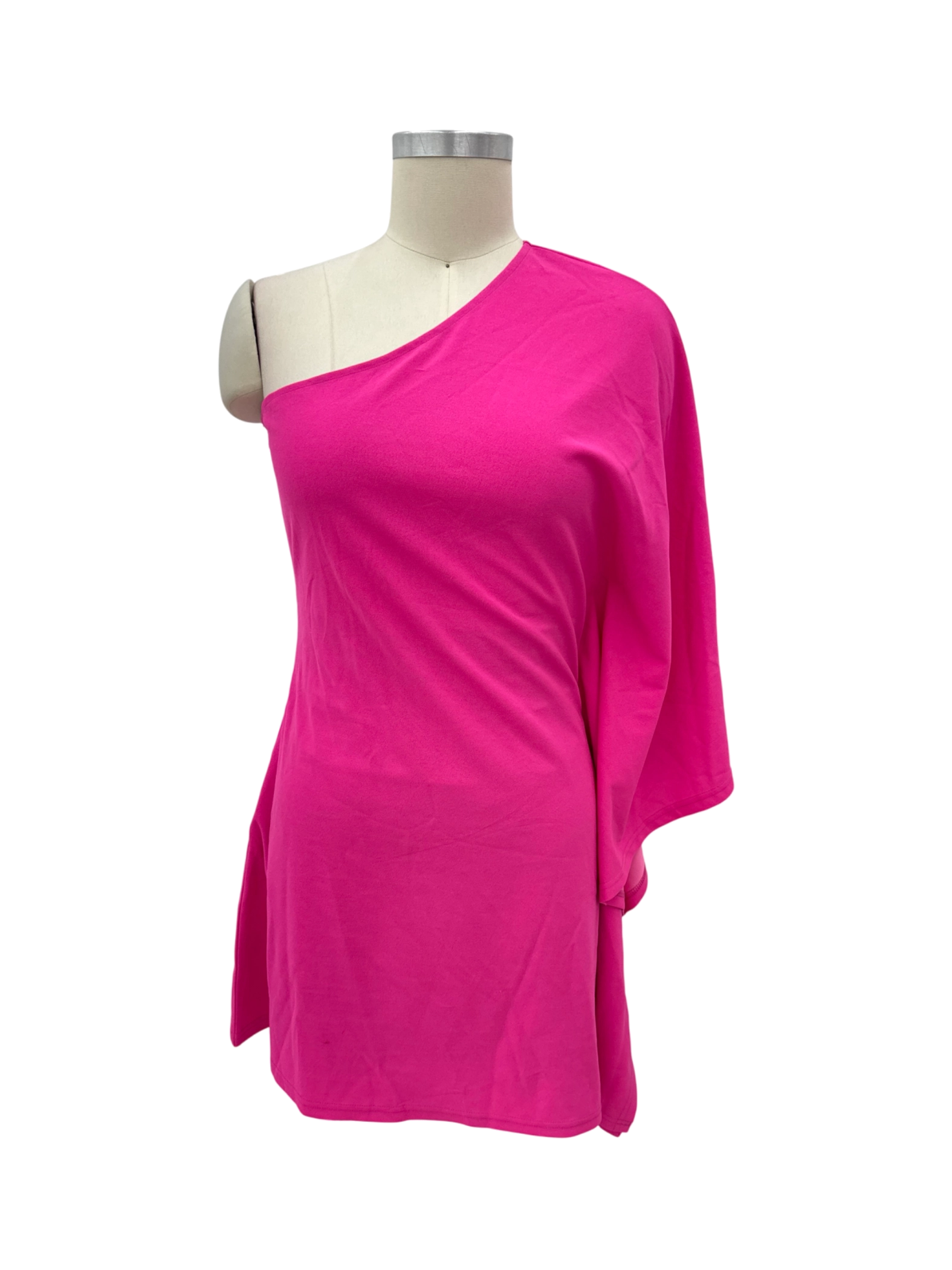 Elevate your wardrobe with this stylish second-hand one-shoulder top. This vibrant pink top features a flattering one-shoulder design and a unique long sleeve. Crafted from a blend of polyester and spandex, it offers a comfortable and stretchy fit. Perfect for a summer day out or a casual evening look. This pre-owned top is in excellent condition and ready to add a pop of color to your closet.