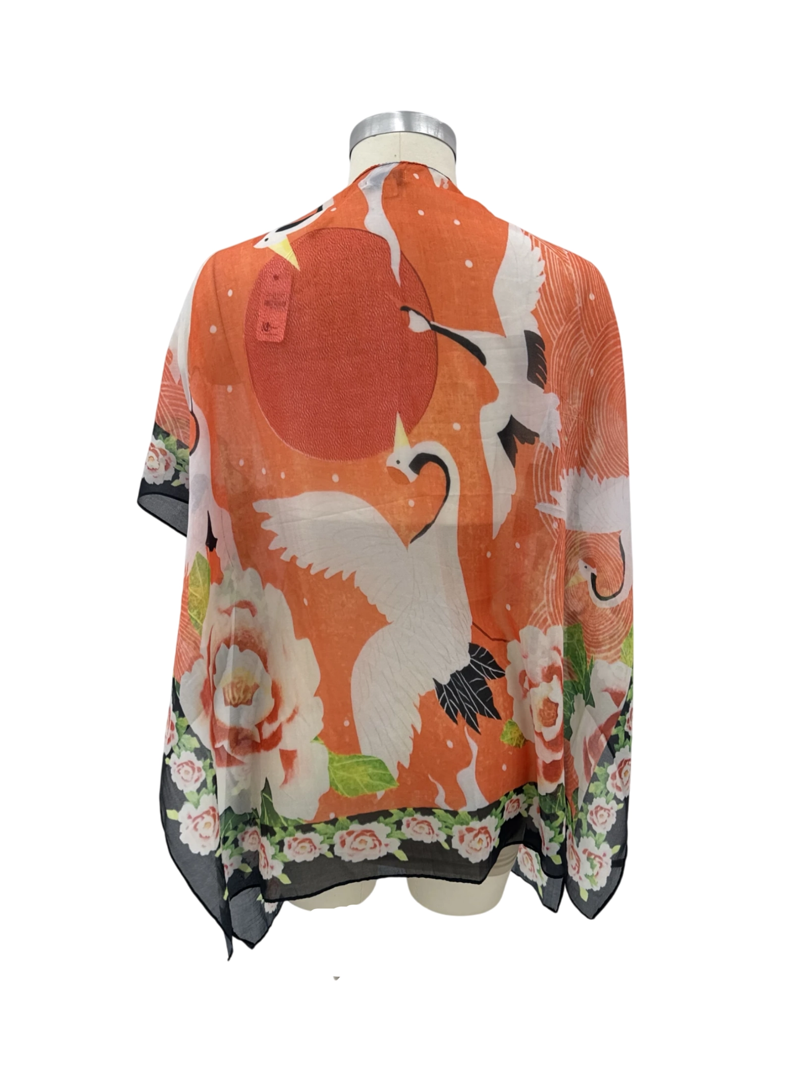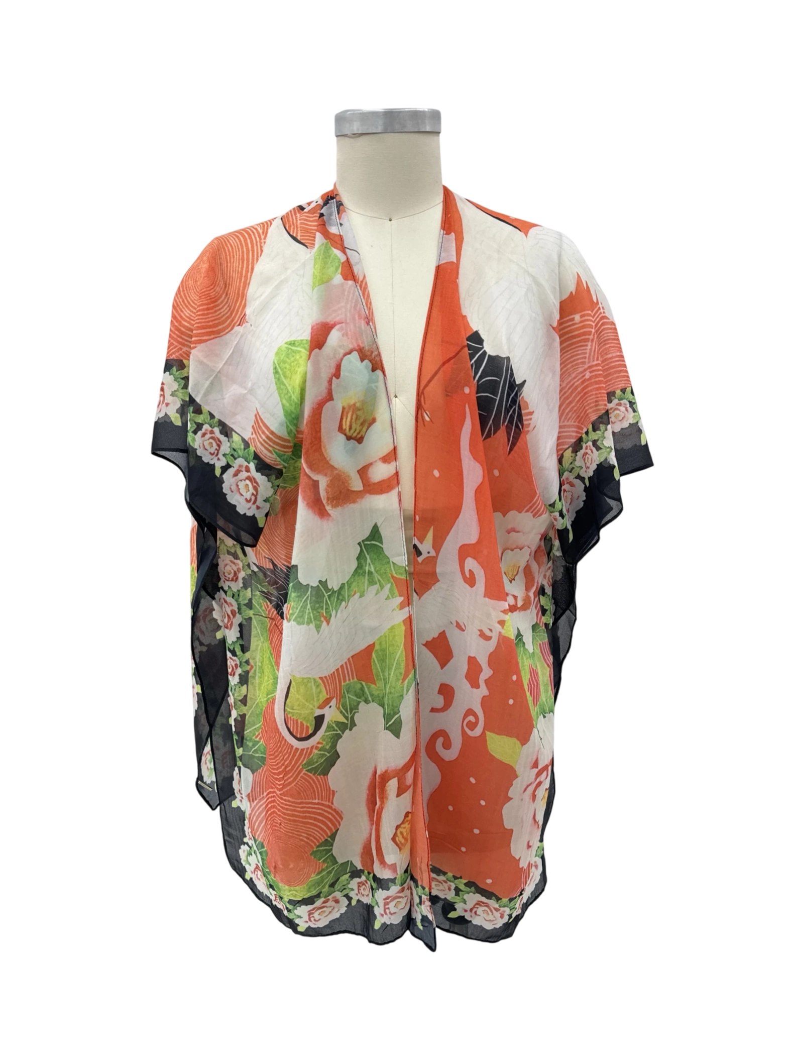 Embrace a touch of artistry with this vibrant, pre-owned kimono top. This eye-catching piece features a stunning floral and bird print. Perfect for adding a pop of color to your summer or spring wardrobe, this lightweight and airy kimono offers a relaxed and flowy fit. The soft silk blend is comfortable and luxurious.