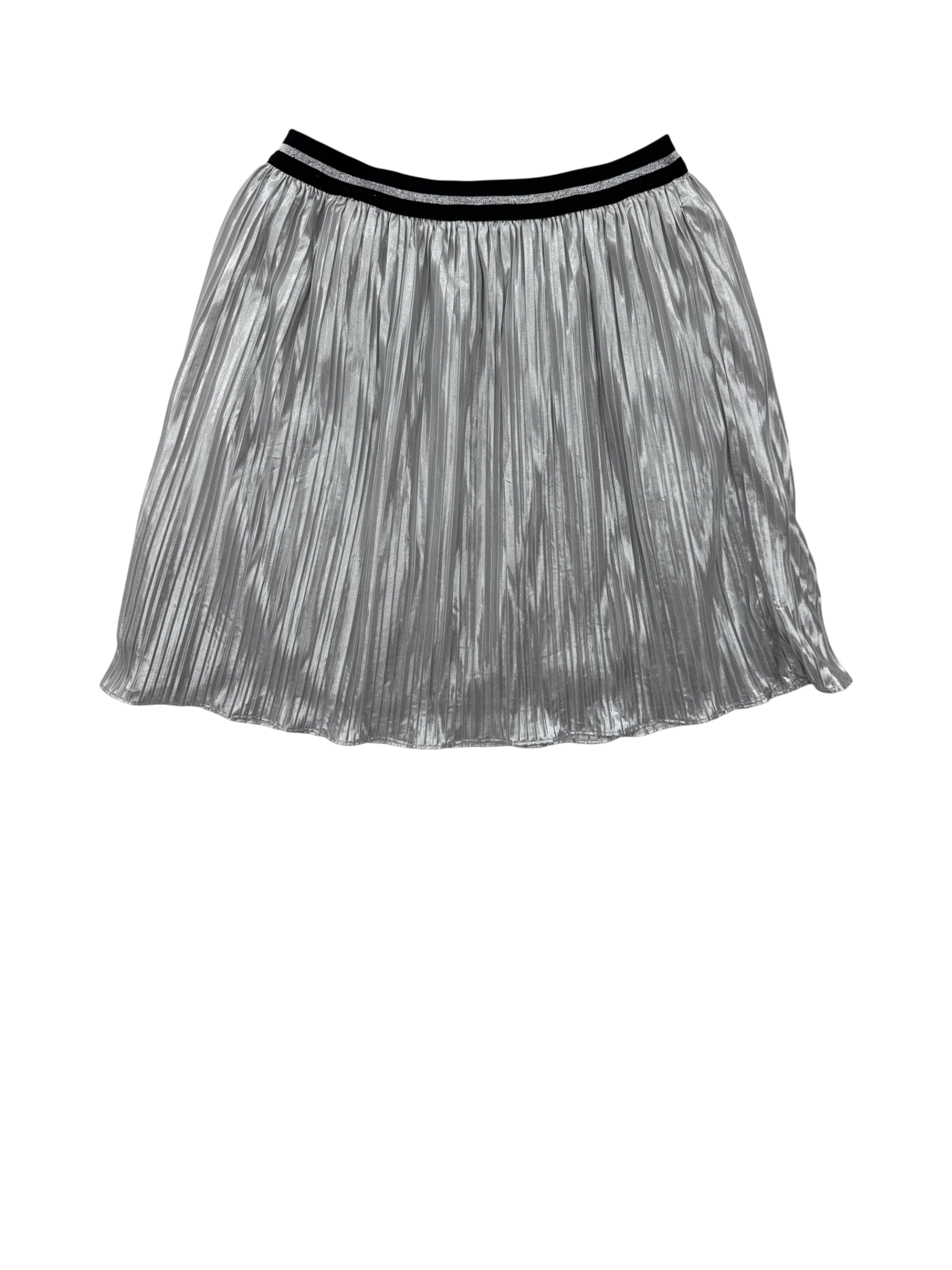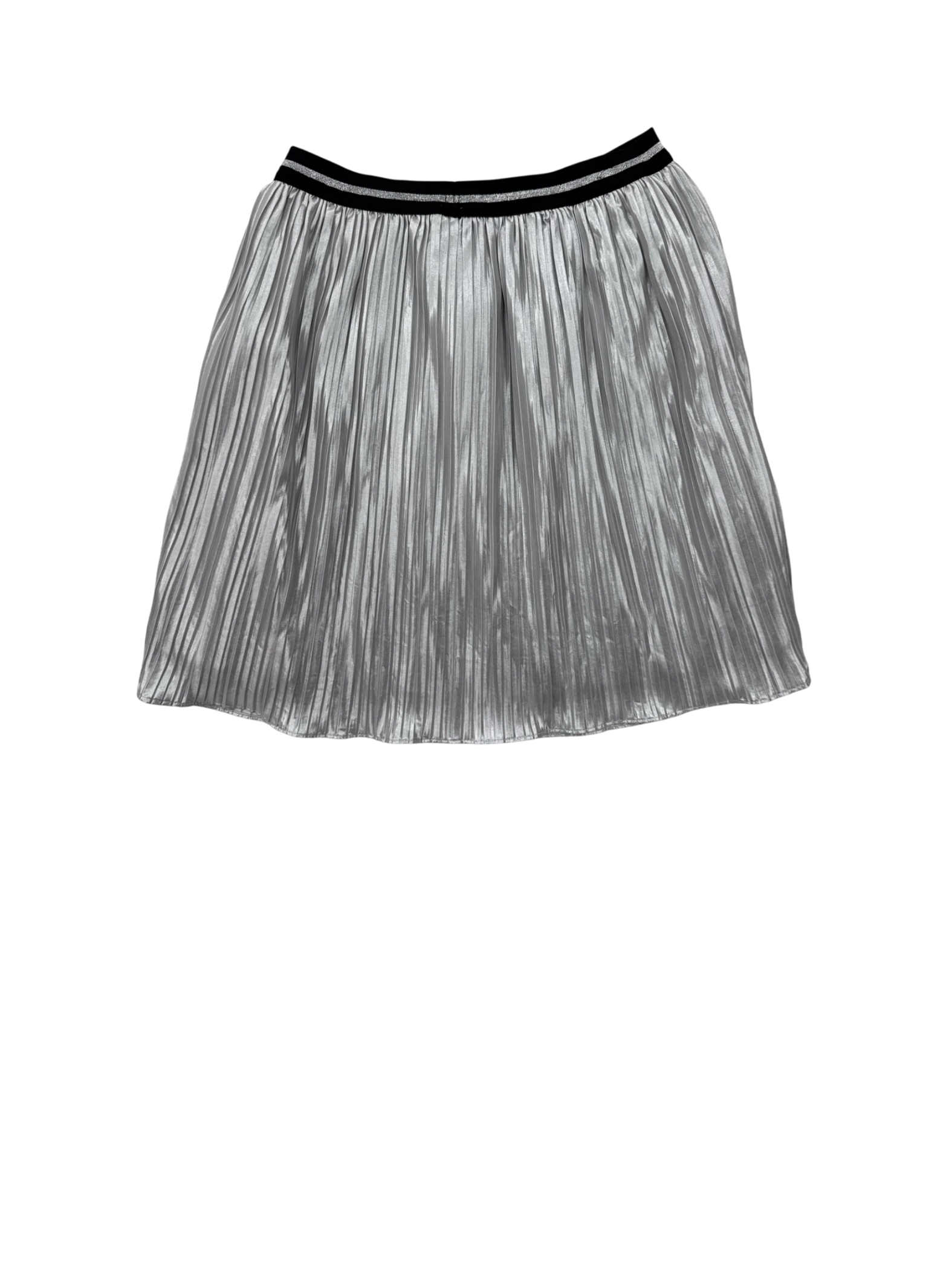 Elevate your wardrobe with this stylish pre-owned metallic silver pleated skirt. This skirt boasts a flattering A-line silhouette and a comfortable fit, making it perfect for warm weather. The versatile design allows for easy pairing with various tops, creating a chic look for any occasion. The skirt is made from a high-quality polyester and cotton blend, offering both comfort and durability. Add a touch of glamour to your outfits with this eye-catching skirt.