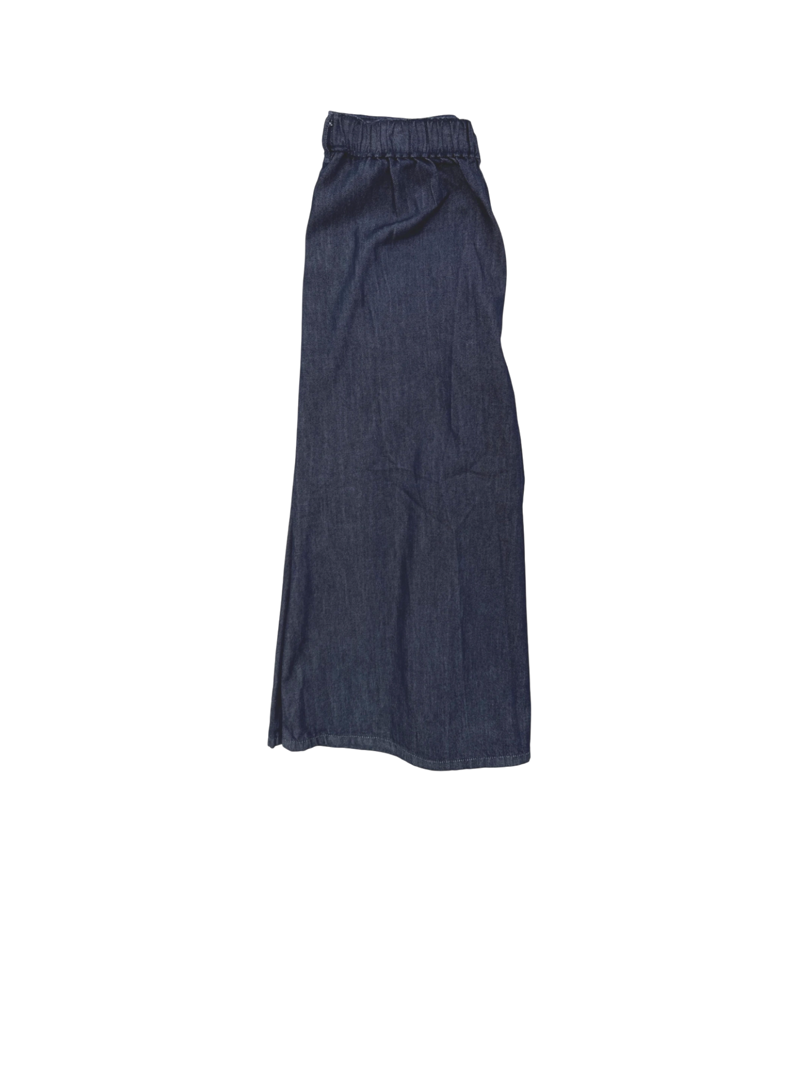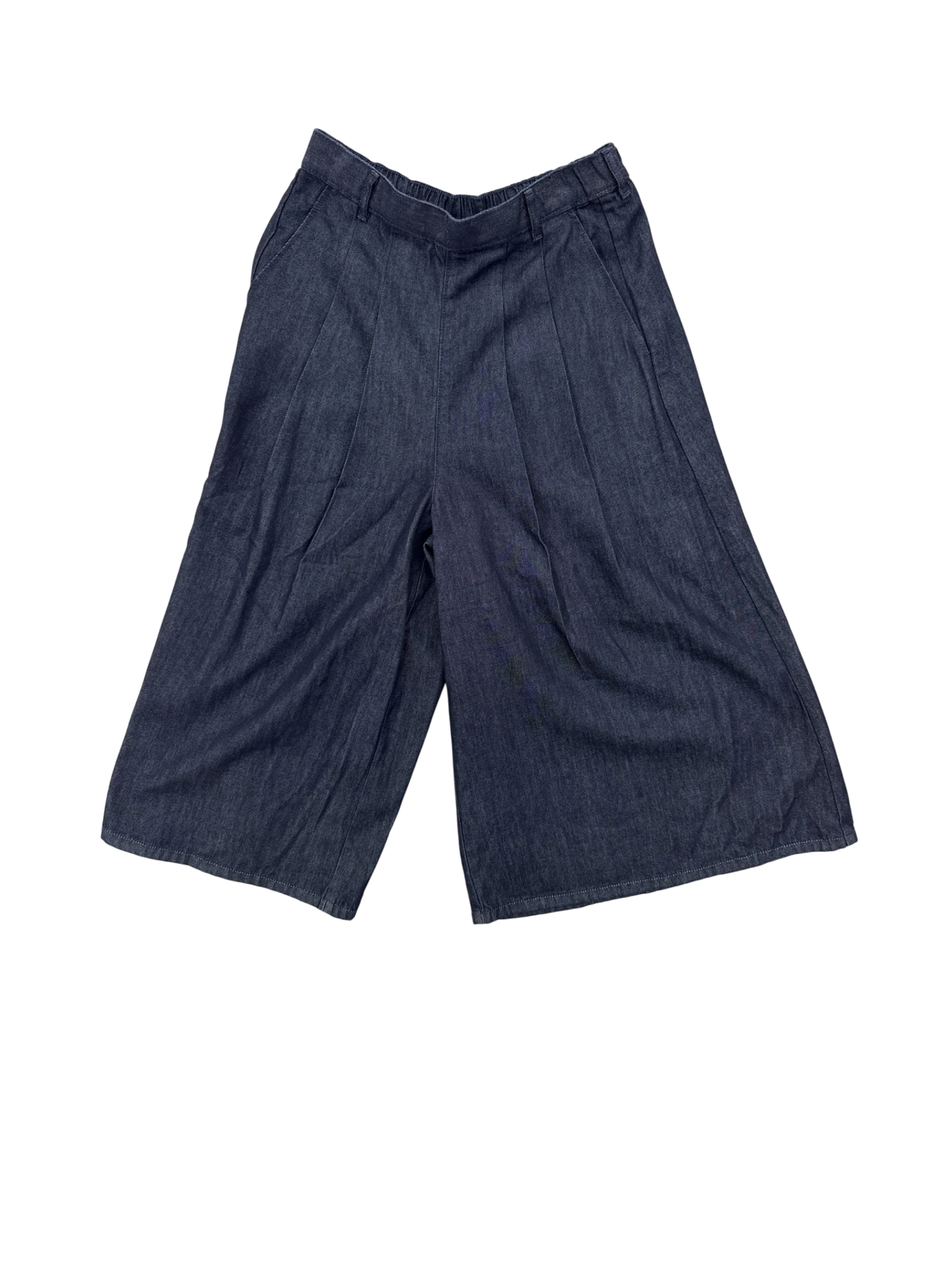 These stylish pre-owned women's culottes feature a wide-leg design in a classic denim material, perfect for a breezy summer look. These pants offer a comfortable and versatile fit, easy to dress up or down. Ideal for casual outings or a day at the office, these culottes can be easily paired with a variety of tops and shoes.