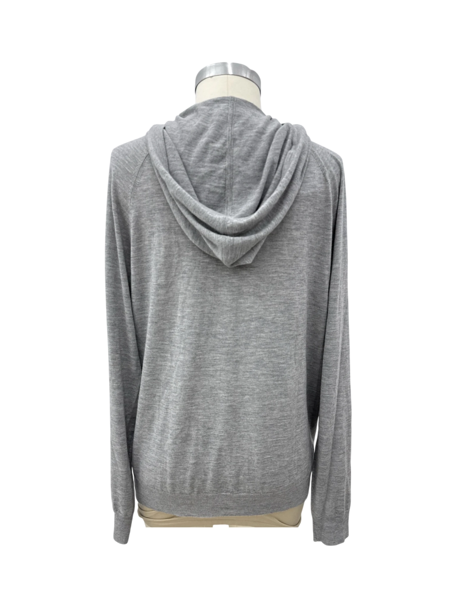 Elevate your casual wardrobe with this luxurious pre-owned cashmere hoodie. Crafted from 100% cashmere, this sweater offers unparalleled softness and warmth. The classic gray hue makes it versatile for any outfit. Perfect for layering during colder months, this hoodie is a timeless addition to any wardrobe. Ideal for relaxed weekends or everyday wear, it combines comfort and style effortlessly.