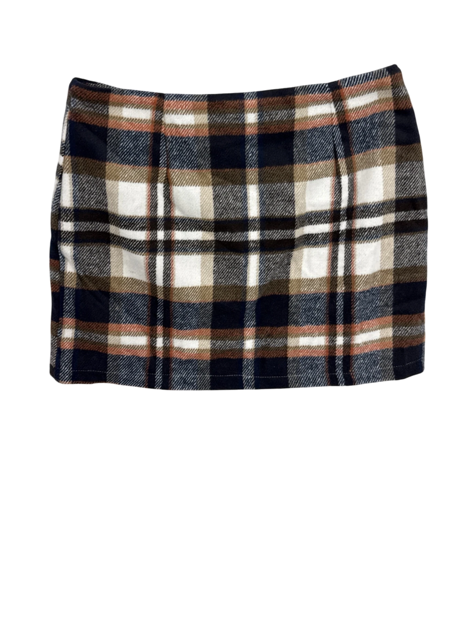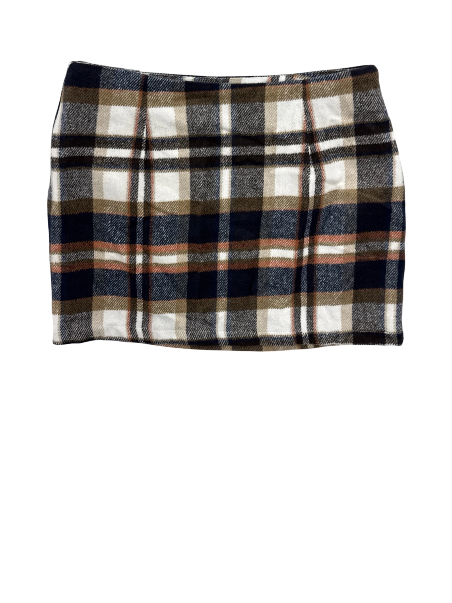 This chic pre-owned plaid mini skirt is perfect for fall and winter. This skirt features a classic plaid pattern in brown, navy, and white. Made with a wool and polyester blend, it offers both comfort and style. The mini length adds a touch of playfulness. It’s ideal for creating versatile outfits for any occasion. - Elevate your fall wardrobe with this pre-owned plaid mini skirt. Crafted from a blend of wool and polyester, this skirt offers both comfort and style. Featuring a classic plaid pattern, this skirt is perfect for creating a chic and timeless look. The pencil skirt style hugs your figure for a flattering silhouette. This versatile skirt is ideal for various occasions, making it a must-have addition to your collection.