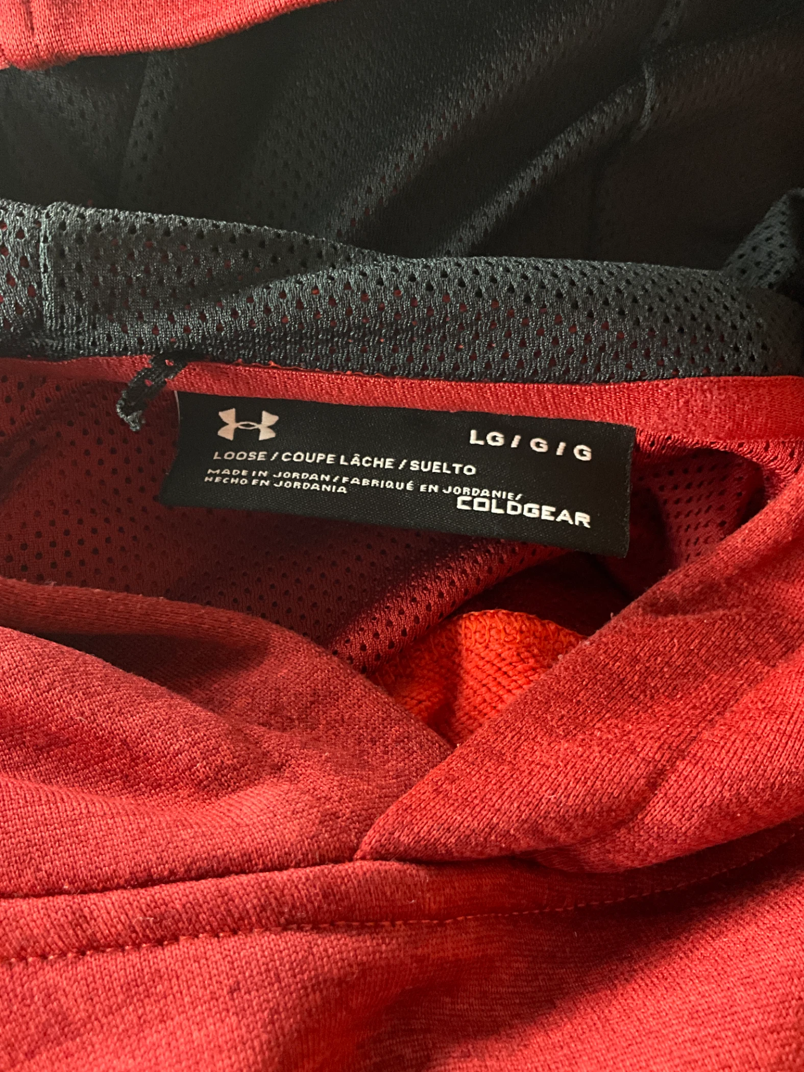 Mens Red Under Armour Slip On 'Cold Gear' Hoodie, Size Large.