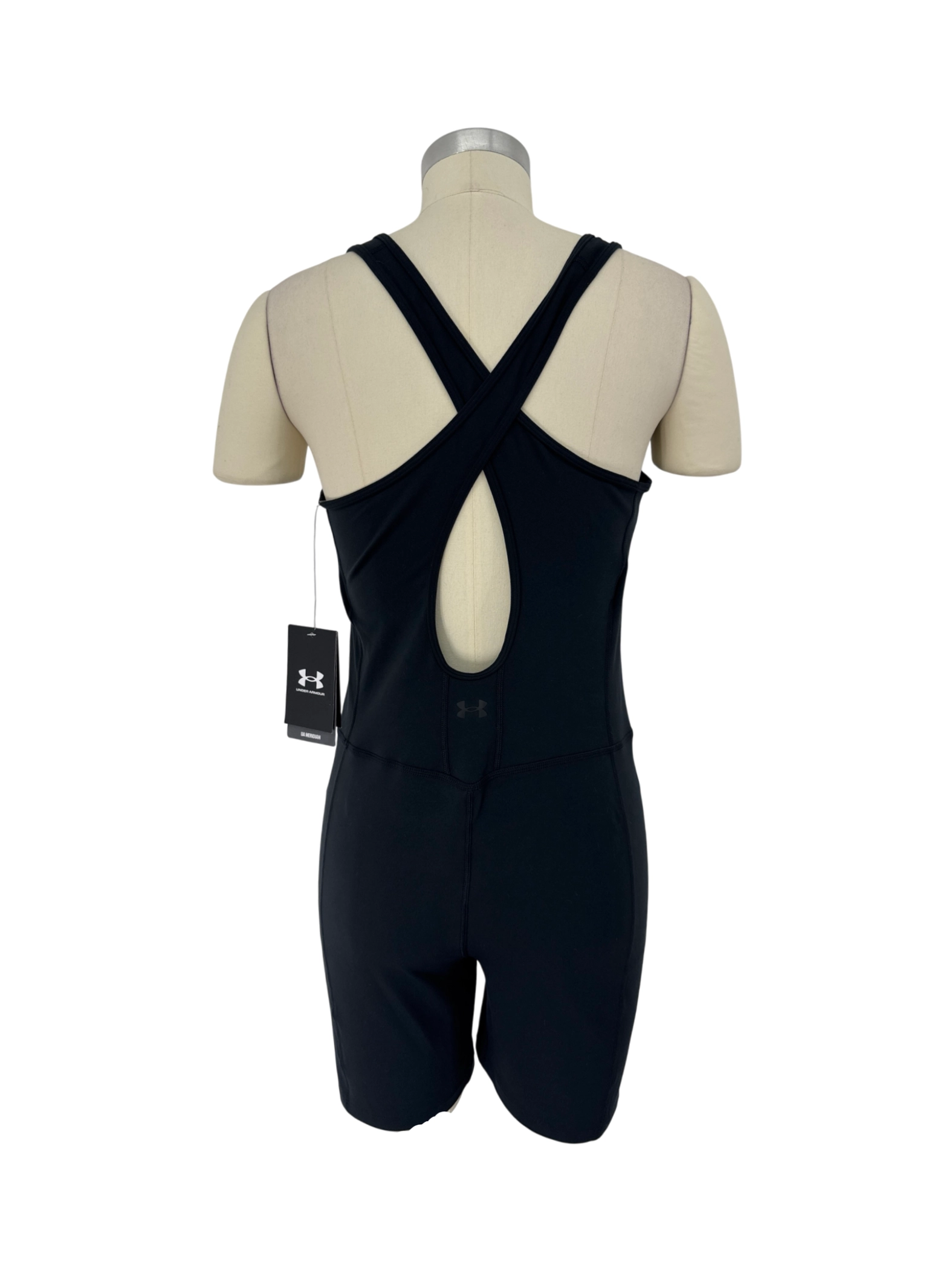 Elevate your workout wardrobe with this pre-owned Under Armour activewear jumpsuit. Crafted from a blend of polyester and elastane, it offers both comfort and flexibility. The sleek black design is perfect for any workout, from yoga to HIIT. Featuring a flattering silhouette and a supportive fit, this jumpsuit provides the perfect combination of style and functionality. This versatile activewear piece is a must-have for any fitness enthusiast.
