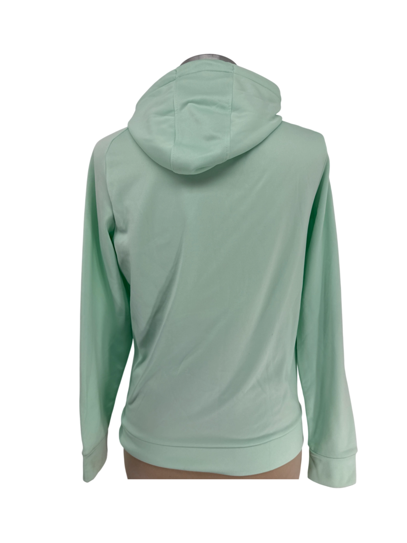 This pre-owned Under Armour women's hoodie is perfect for active lifestyles. Featuring a comfortable loose fit and made from a blend of recycled polyester, this hoodie offers both style and sustainability. The light green color adds a touch of freshness, ideal for cooler weather. The iconic Under Armour logo and the hood makes this hoodie perfect for workouts or casual wear. It provides warmth and flexibility, making it ideal for various activities.