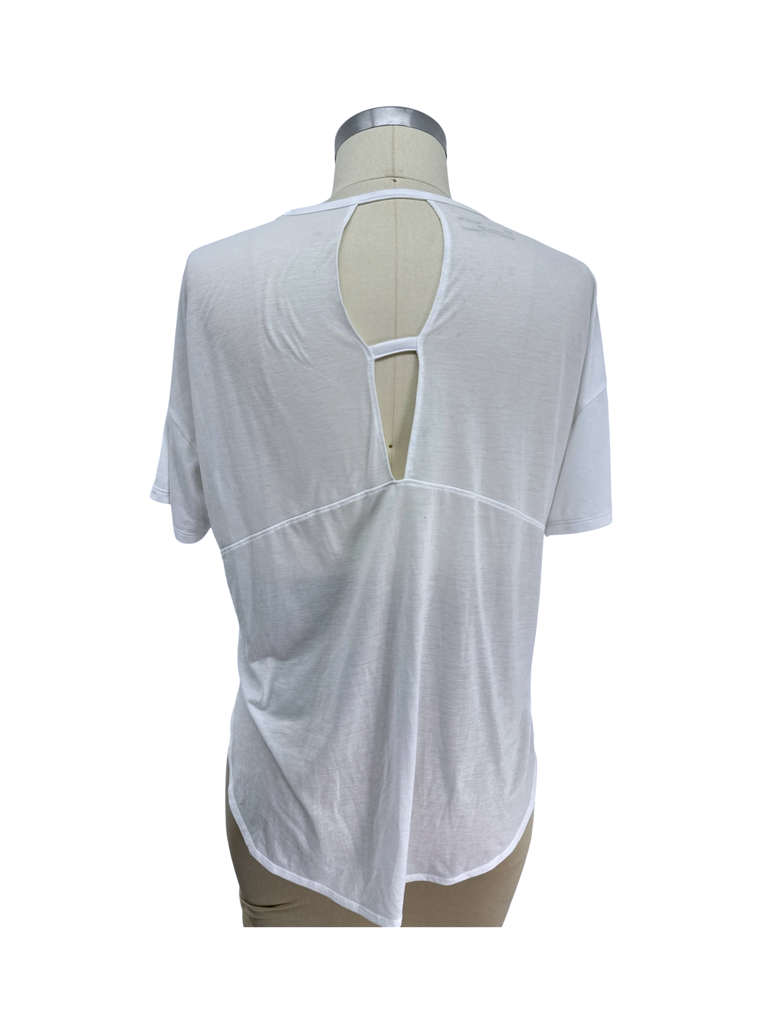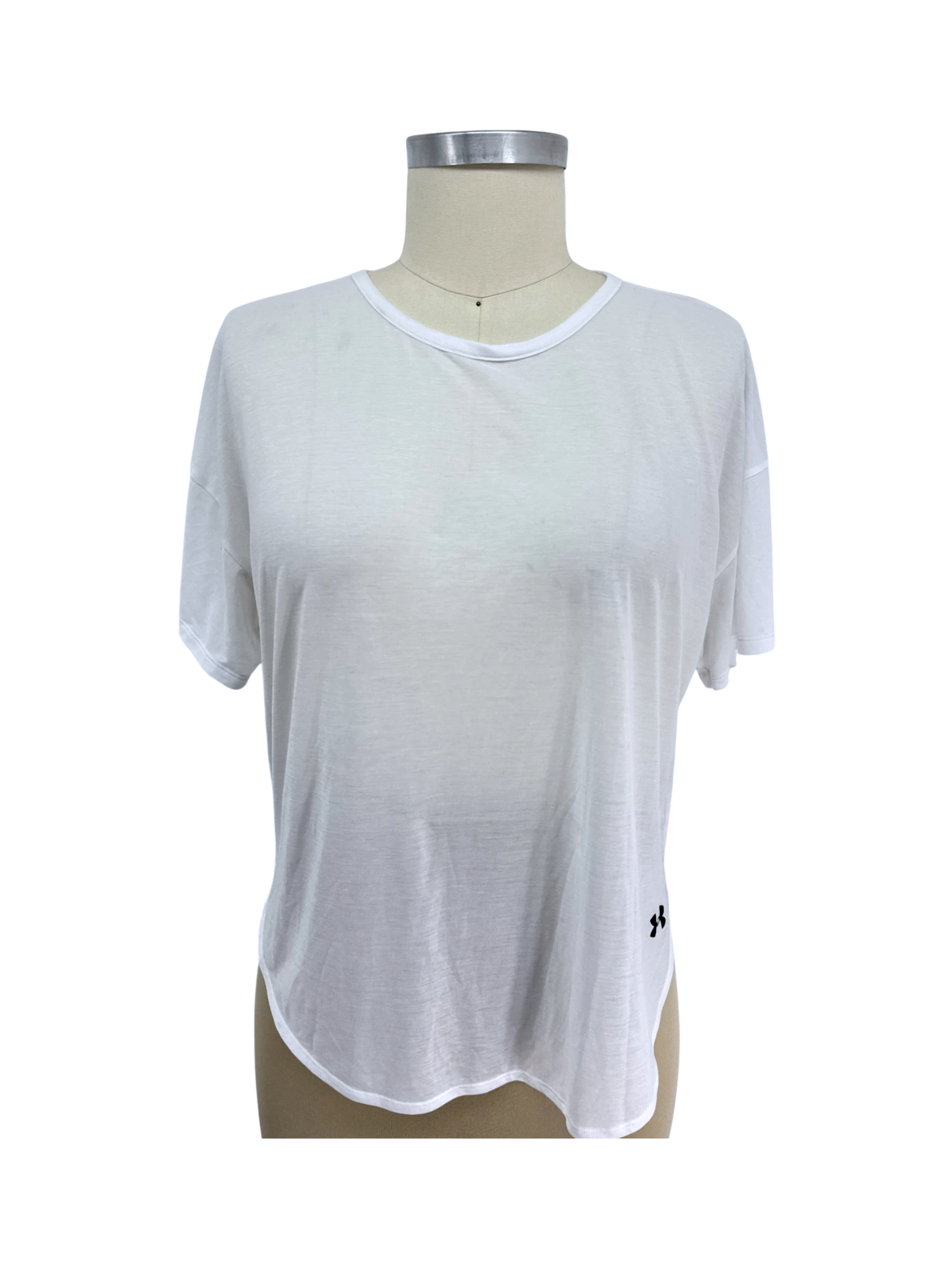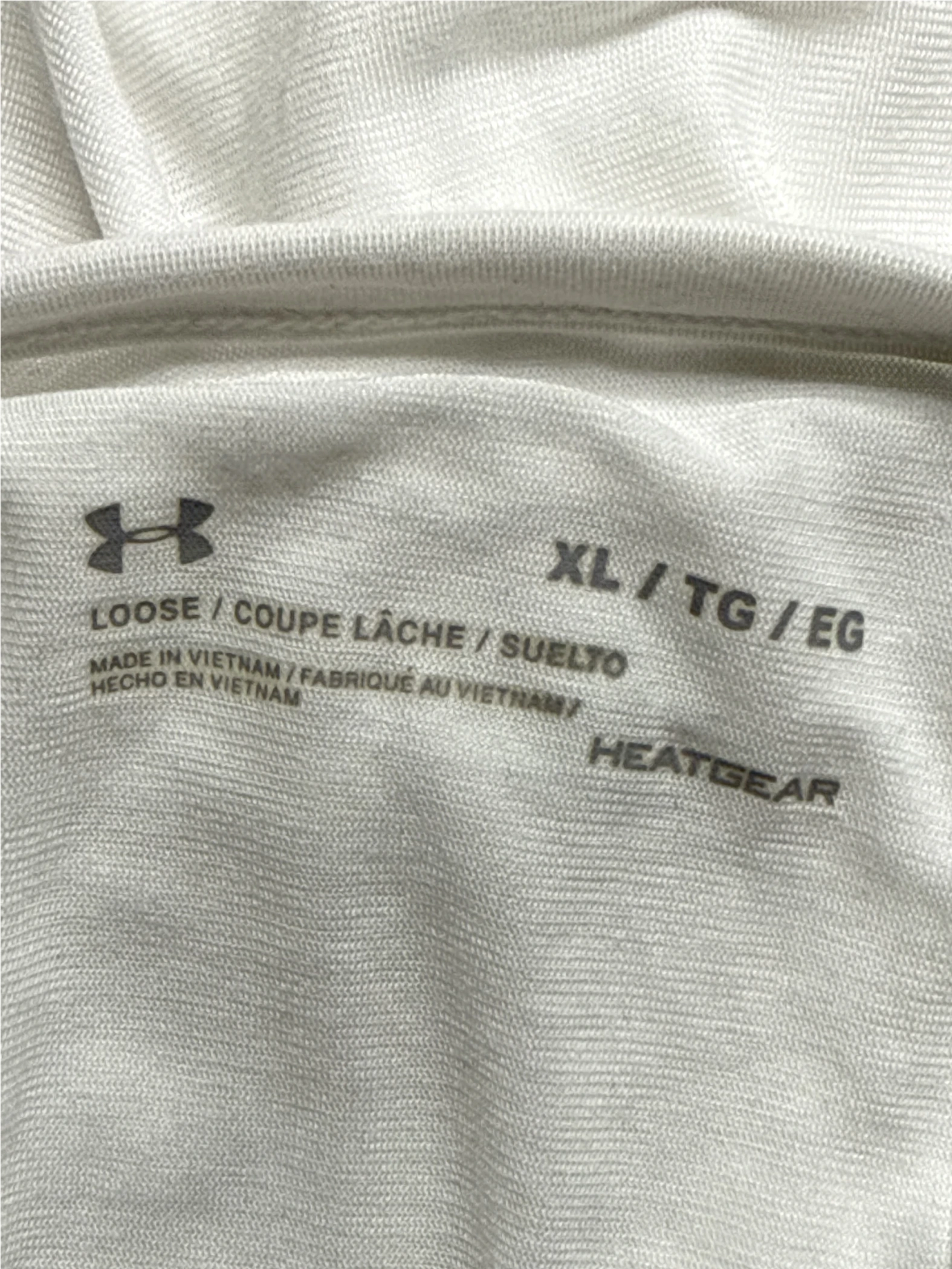 Elevate your activewear collection with this pre-owned Under Armour white T-shirt. Perfect for workouts or casual wear, this shirt is crafted from a blend of polyester and lyocell for ultimate comfort and breathability. The loose fit and flattering design offer freedom of movement, making it ideal for any activity. Complete with the signature Under Armour logo, this versatile tee is a must-have for any active woman's wardrobe.