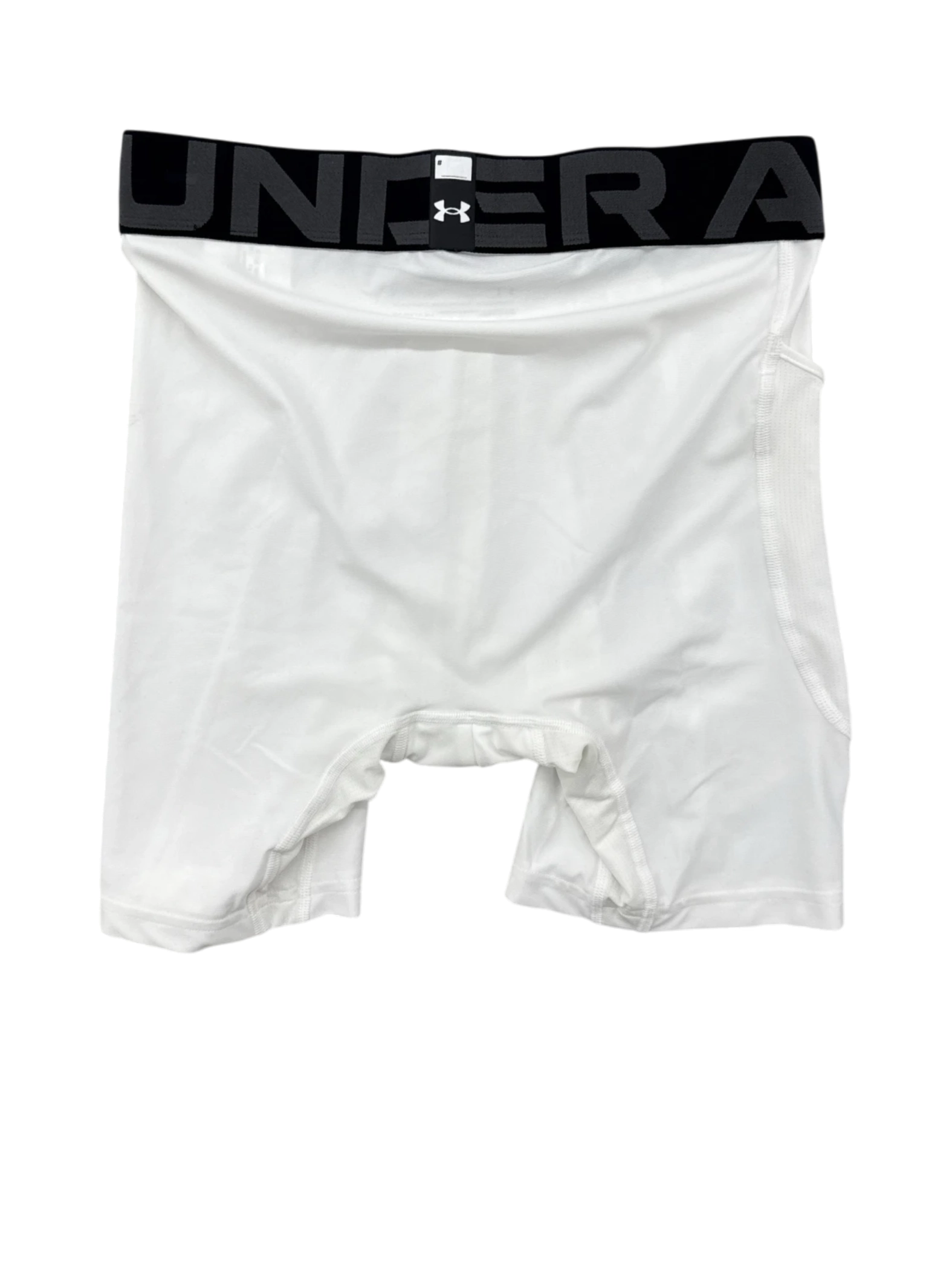 These pre-owned Under Armour men's underwear shorts are a versatile addition to any active wardrobe. Crafted from a blend of polyester and spandex, these shorts offer a comfortable and supportive fit. Featuring a classic design and the Under Armour logo, these white athletic shorts are perfect for workouts or everyday wear. Excellent condition and a great deal on performance wear.