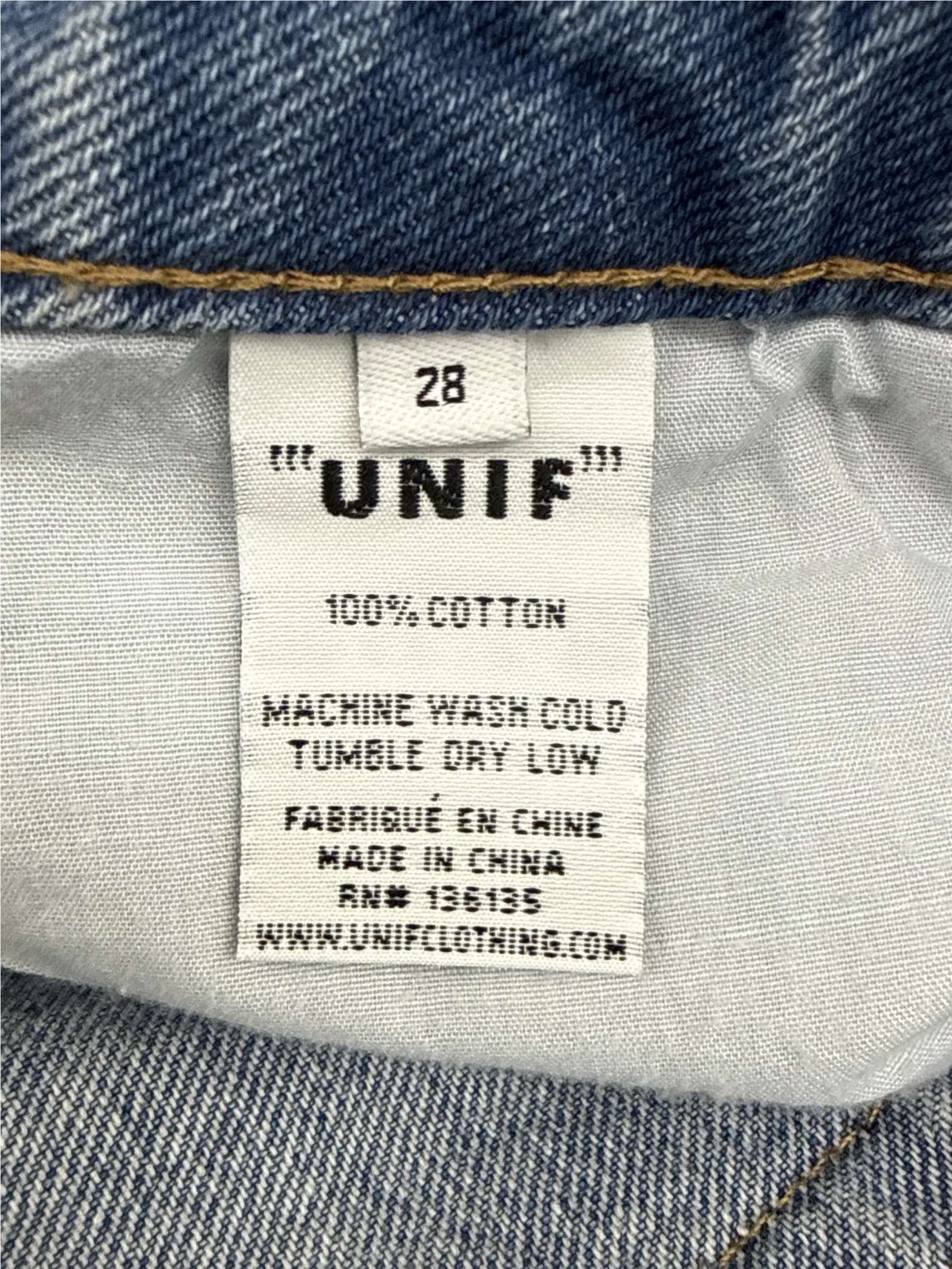 These pre-owned UNIF jeans offer a stylish flared leg and a light wash, perfect for a casual yet chic look. Made from 100% cotton, these jeans are comfortable and durable. The mid-rise waist and classic denim design make them versatile for various outfits. Embrace vintage fashion with these unique UNIF jeans, a must-have addition to your denim collection. Machine washable for easy care, these jeans combine style and practicality effortlessly. Add a touch of vintage flair to your wardrobe with these fashionable jeans.