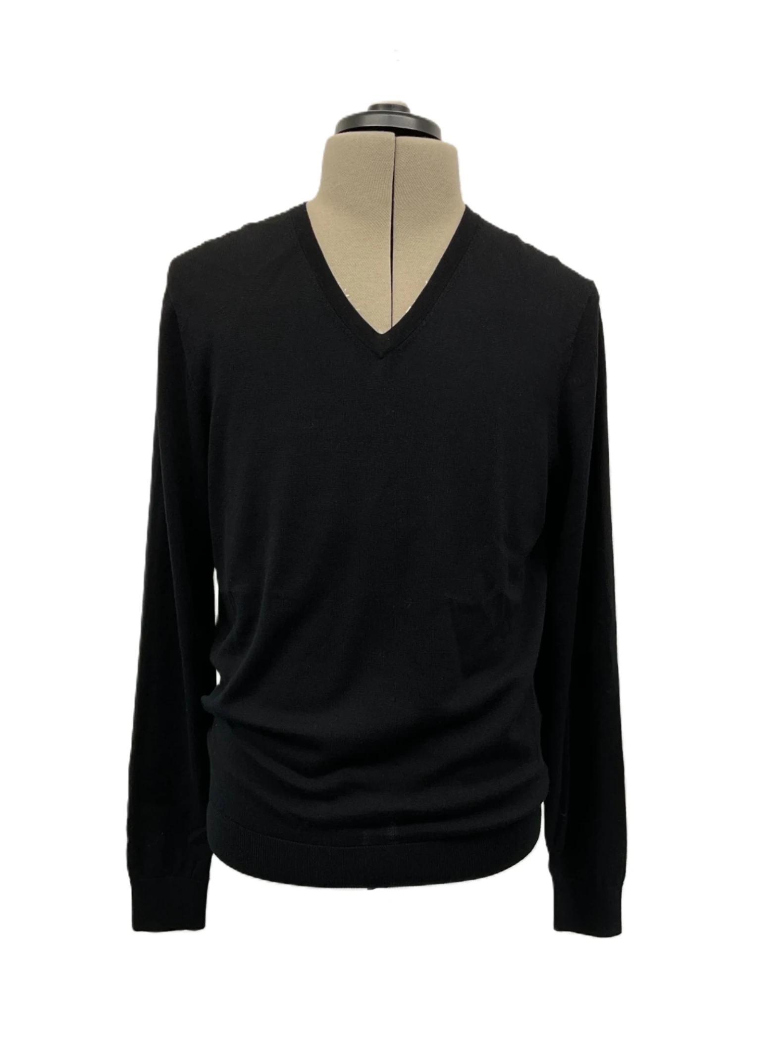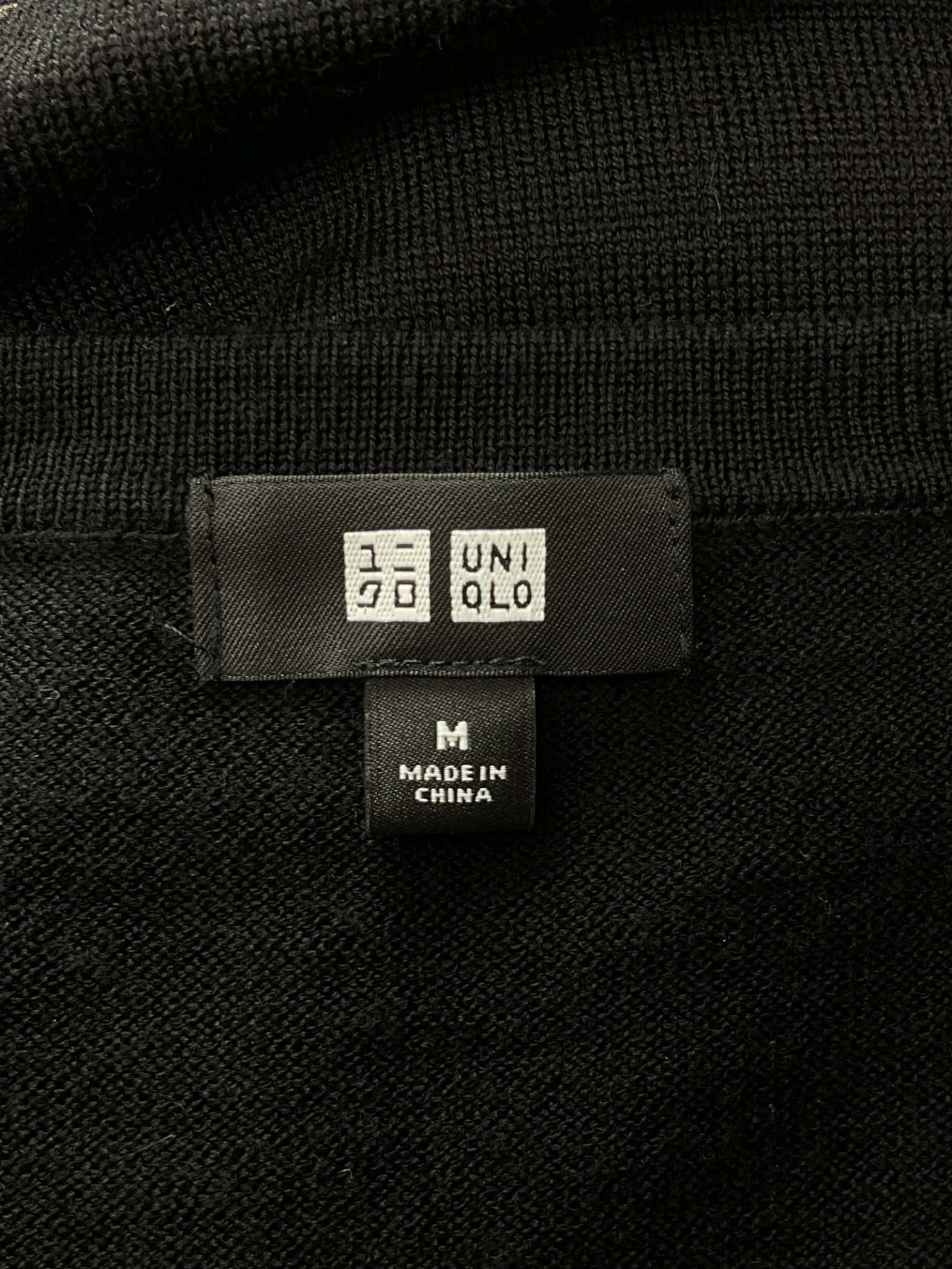 It is a v-neck men's pullover made of 100% warm wool, suitable for colder months, from Uniqlo