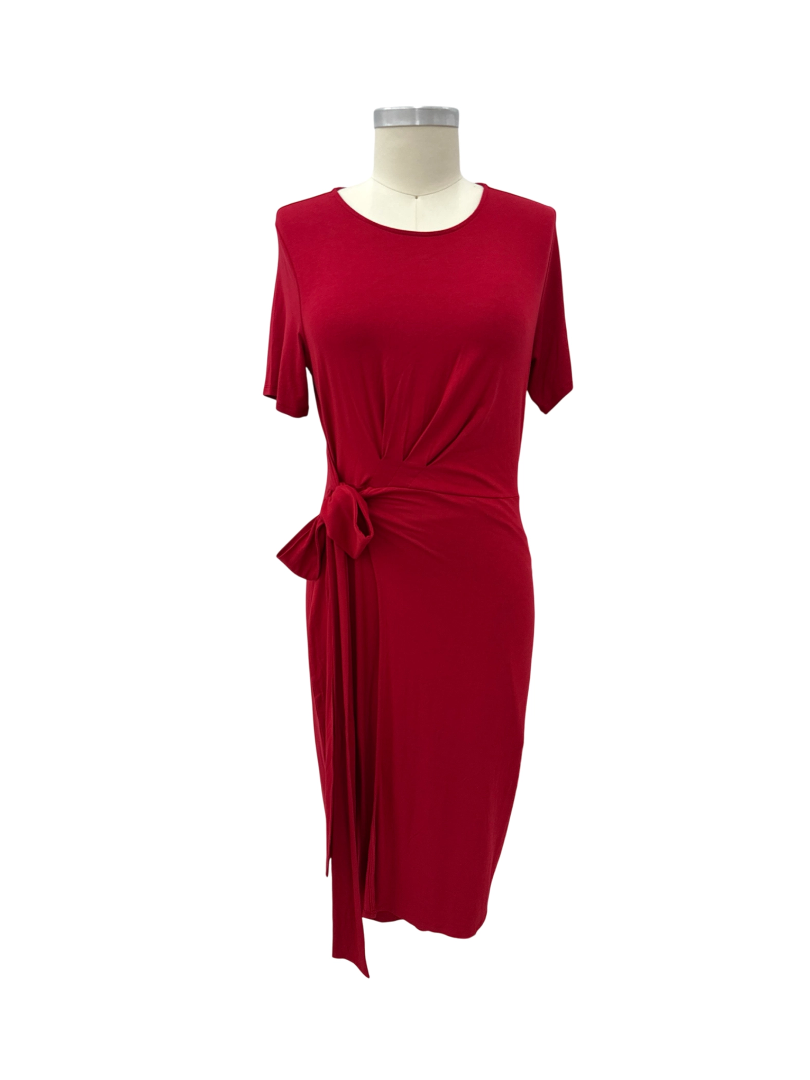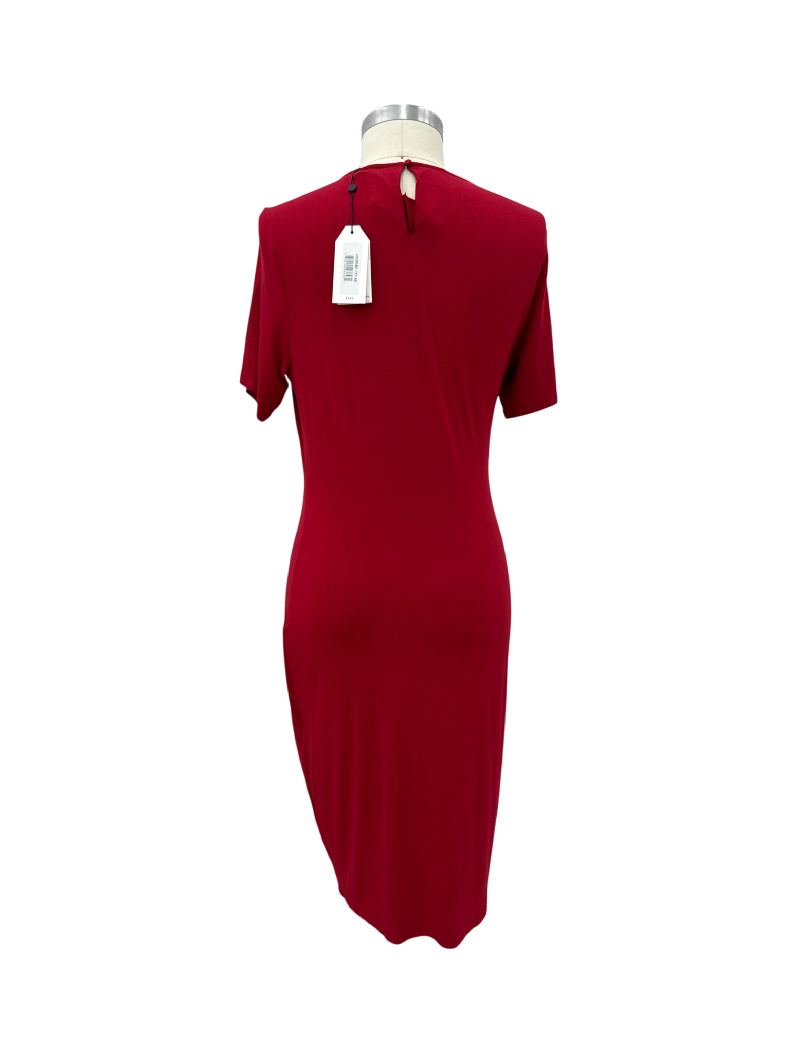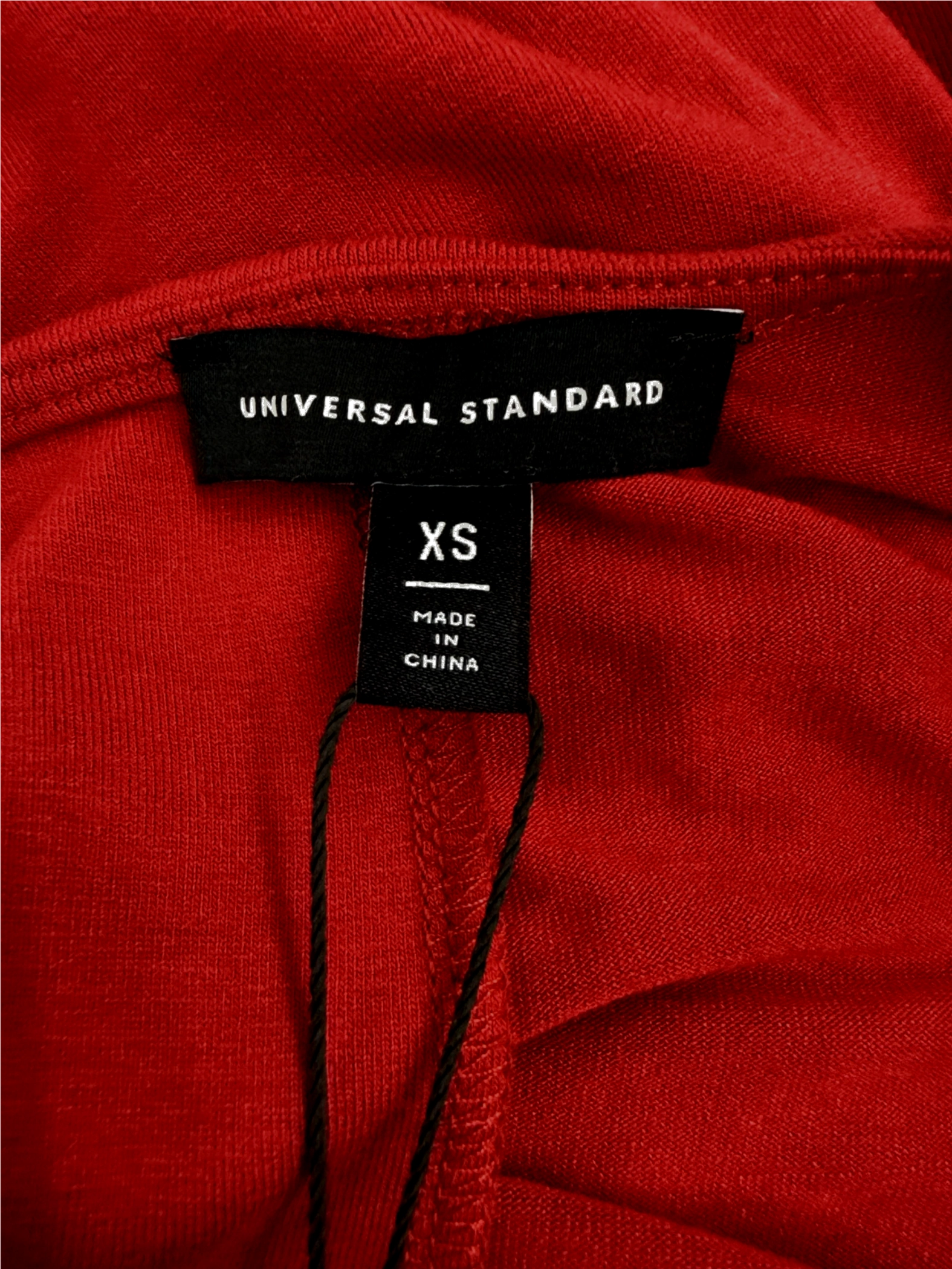 This Universal Standard red dress, perfect for any casual occasion, is a stylish A-line sheath featuring a flattering mid-length skirt and short sleeves. Made from a blend of polyester and viscose, it offers both comfort and a touch of elegance. This pre-owned dress is in excellent condition and ready to elevate your wardrobe with its versatile design and vibrant color. Ideal for spring, summer or fall days.