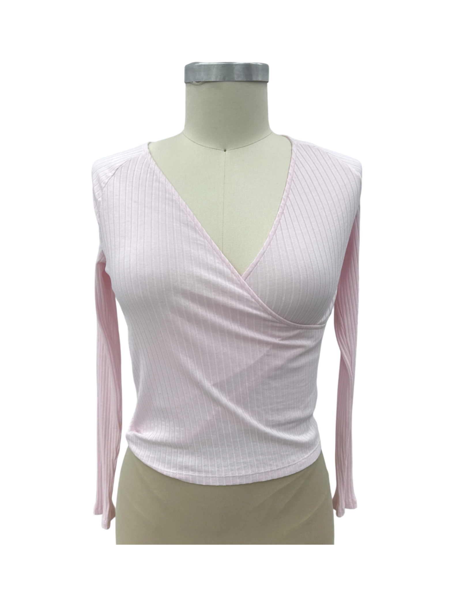 This stylish women's top from Universal Thread is the perfect addition to any wardrobe. Featuring a flattering wrap V-neck design, delicate ribbing, and long sleeves for added coverage. Made from a soft cotton blend, this top offers a comfortable fit. This pre-owned top is in excellent condition and is ideal for layering or wearing on its own. Pair it with your favorite jeans, skirts, or leggings for a chic and versatile look. Available in size M.