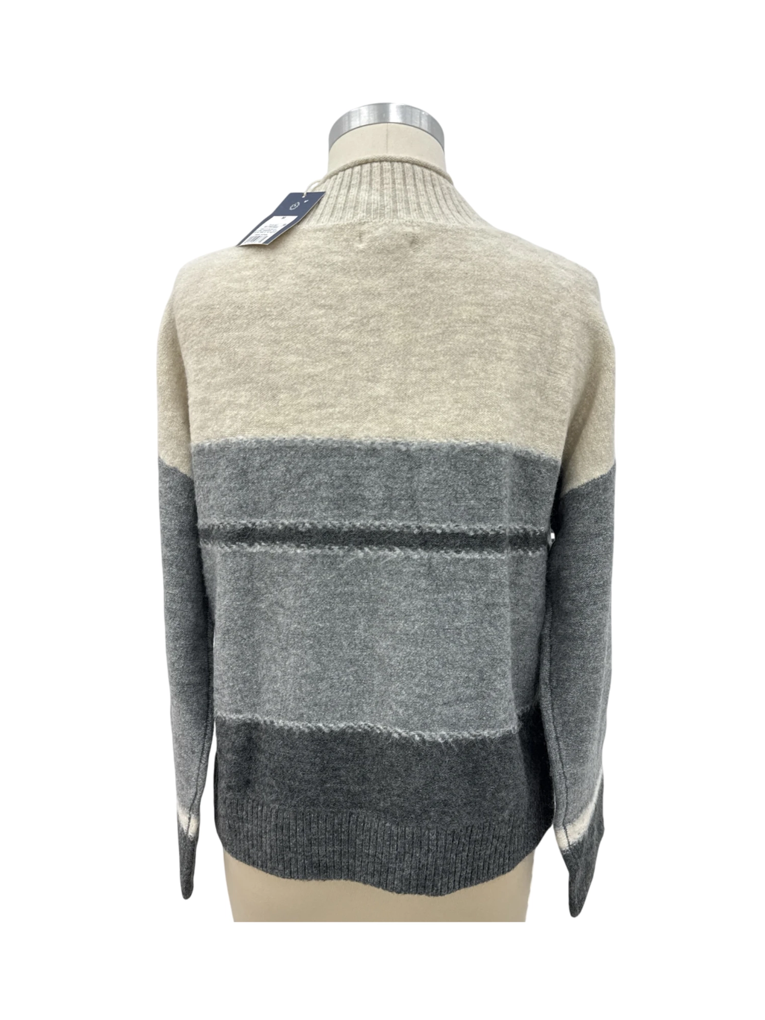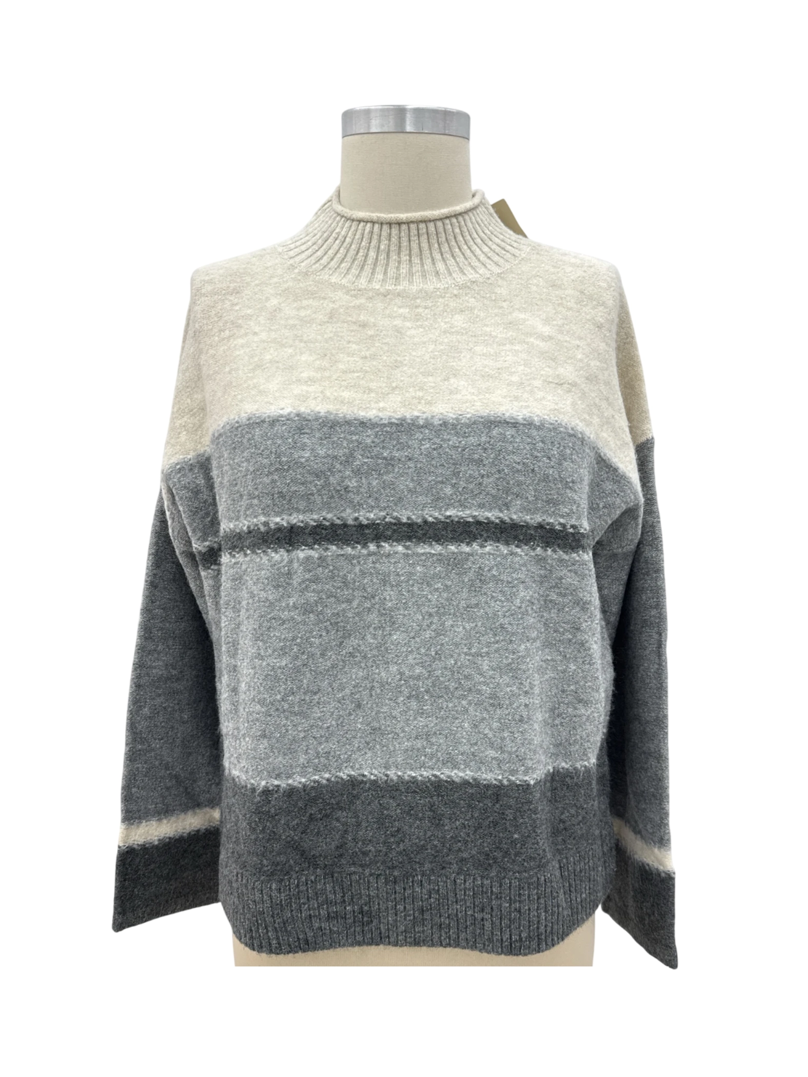 Elevate your wardrobe with this stylish Universal Thread sweater. This pre-owned sweater features a chic striped pattern in shades of gray, perfect for fall and winter. The turtleneck neckline adds a touch of elegance, while the comfortable blend of acrylic, polyester, and spandex ensures all-day wearability. The pullover style makes it easy to throw on and go, making it a versatile addition to any outfit. Ideal for casual outings, work, or layering. Get your hands on this cozy and trendy piece today!