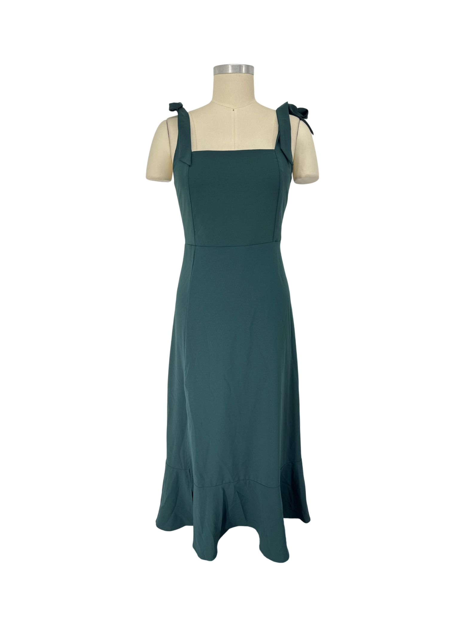 This elegant A-line dress is the perfect addition to your summer wardrobe. Crafted from lightweight polyester, it features a flattering square neckline and tie straps. The midi skirt length adds a touch of sophistication, making it ideal for casual outings. This pre-owned dress offers both style and comfort, and will be a go to dress. Dress is in great condition.