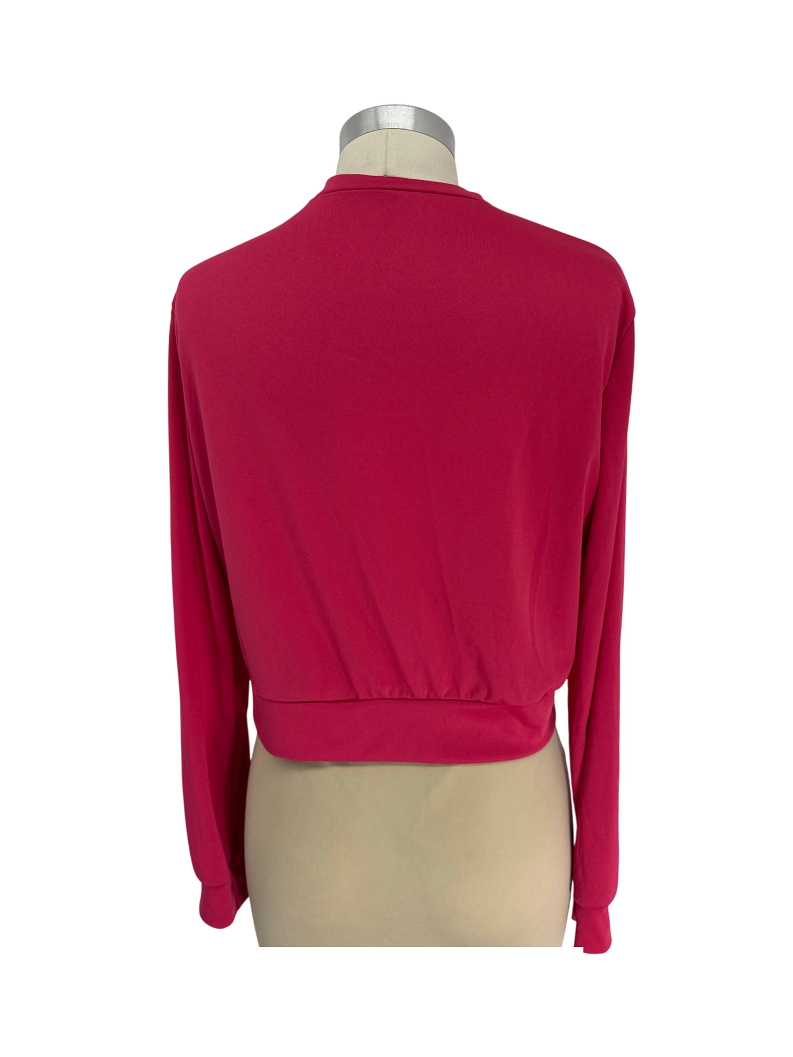 This pre-owned women's activewear top is a stylish and comfortable addition to any wardrobe. Featuring a vibrant pink hue, this pullover is crafted from a blend of cotton and polyester. Perfect for workouts or casual wear, this top offers a flattering fit and versatile style. It's a must-have piece for anyone seeking both fashion and function in their activewear collection. Great for layering and ideal for fall and winter.