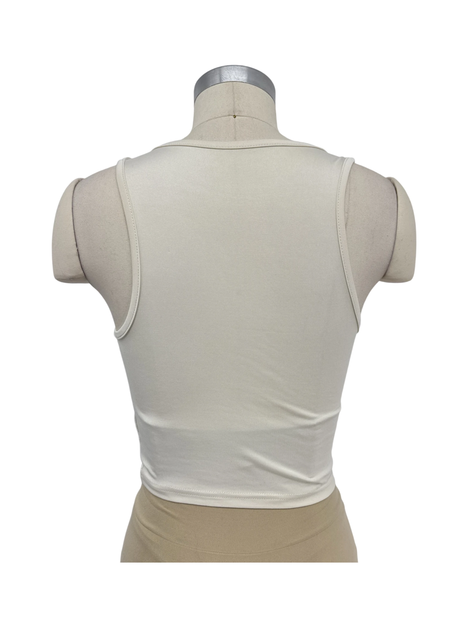 Elevate your activewear collection with this pre-owned ivory crop top. Crafted from a blend of polyester and elastane, this top offers a comfortable and flexible fit, perfect for workouts or casual wear. Its simple design and neutral color make it a versatile addition to any wardrobe. Lightweight and easy to care for, this top is a stylish and practical choice for any season.