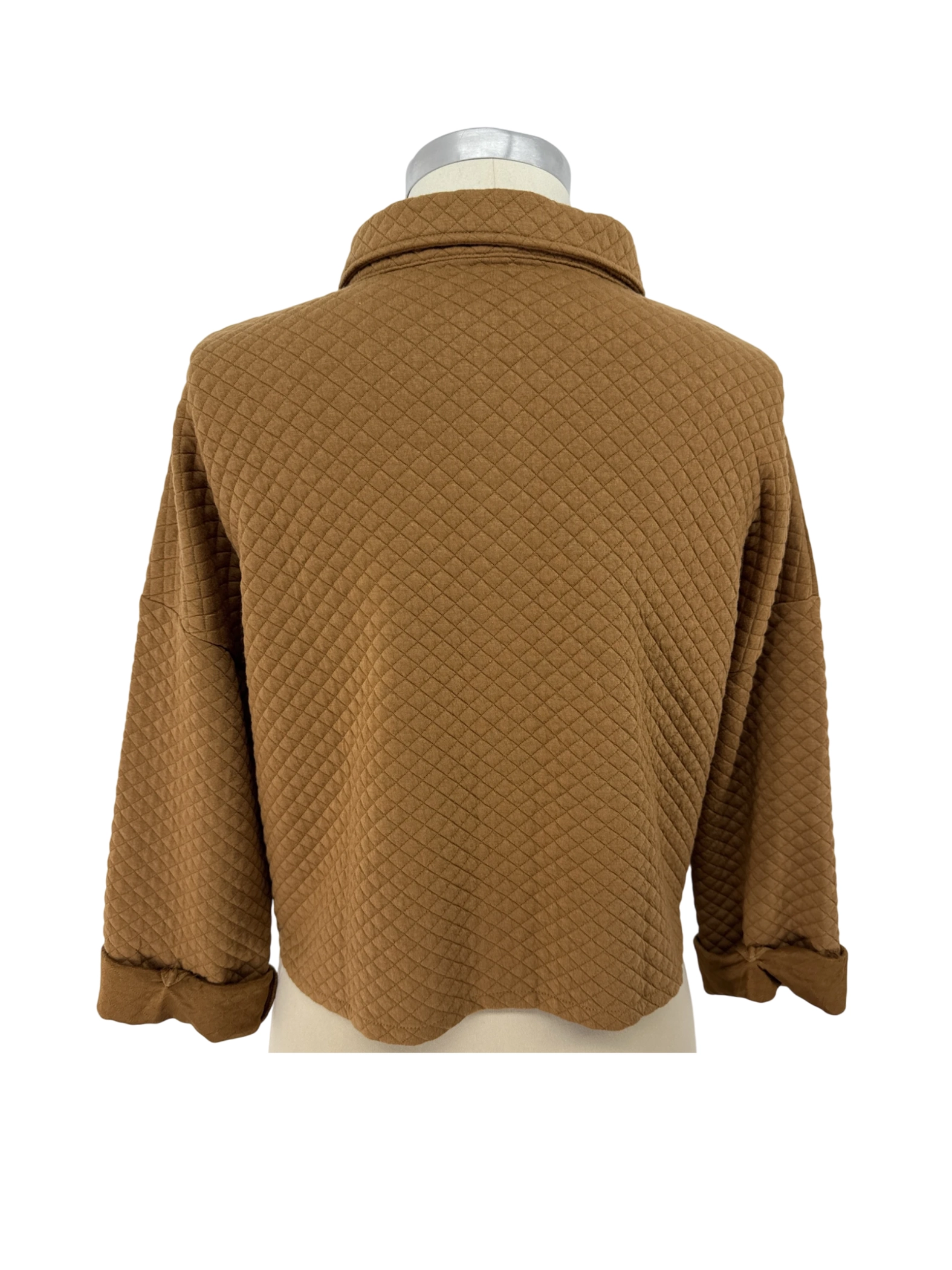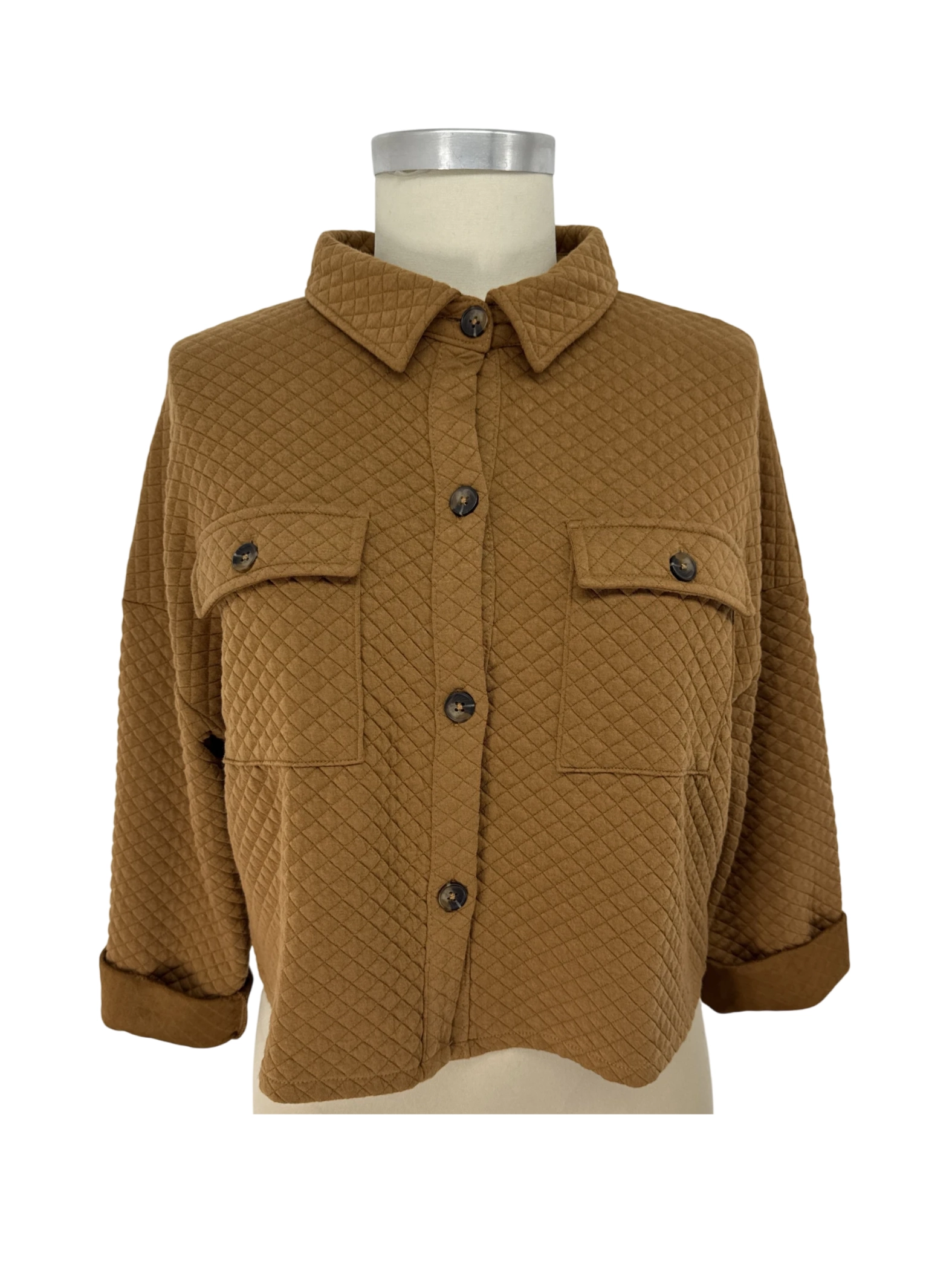Elevate your everyday style with this pre-owned brown quilted jacket. Featuring a classic button-down design and a comfortable fit, this jacket is a versatile addition to any wardrobe. The quilted pattern adds a touch of texture and sophistication, making it perfect for layering during the cooler months. Made from durable polyester, this jacket offers both style and practicality. A great find for anyone looking for a chic, pre-loved piece!