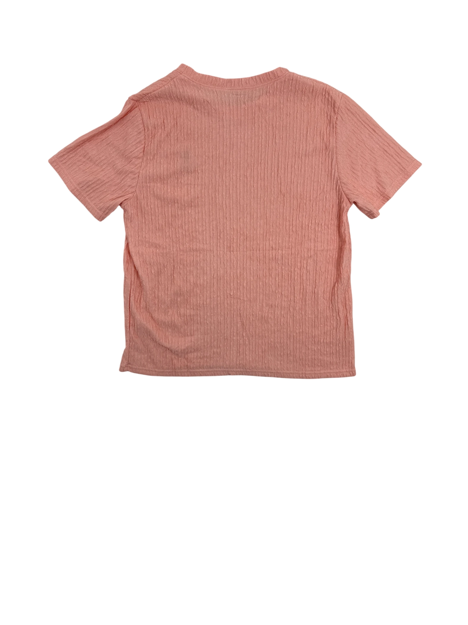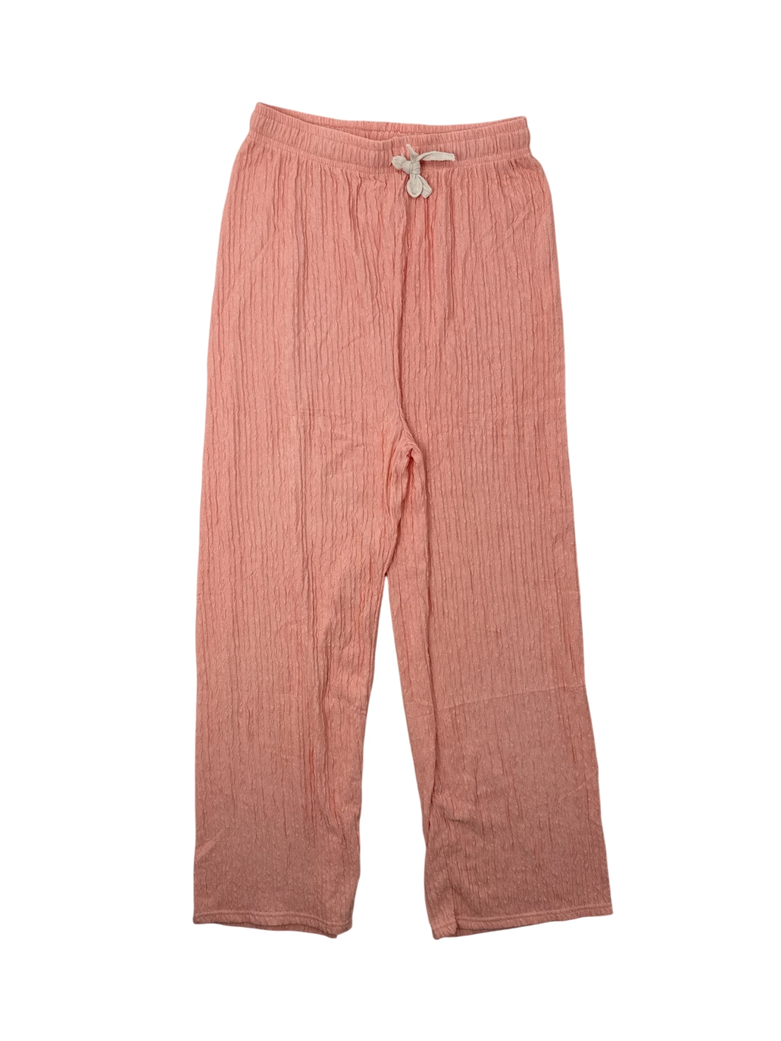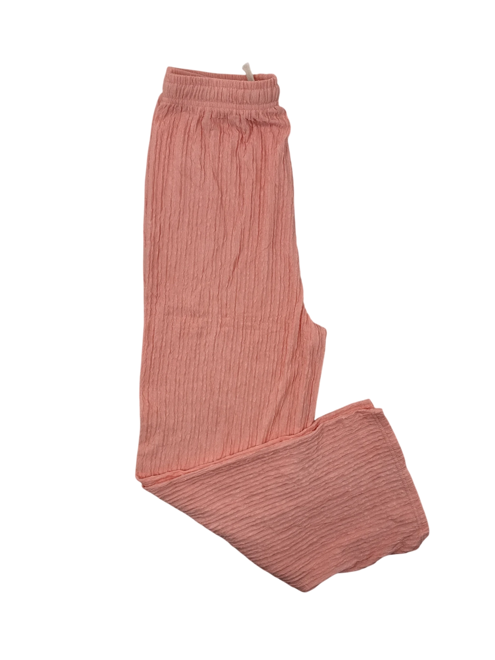 Elevate your casual wardrobe with this comfortable women's set. The set, in a soft, textured pink, includes a matching top and wide-leg pants. Perfect for a relaxed, yet stylish look, this pre-owned set is an excellent addition to any closet. Ideal for warm weather, this set offers both comfort and effortless style, making it a great choice for everyday wear or casual outings. The set is perfect for a comfortable and stylish outfit. Made with soft material, it drapes beautifully.