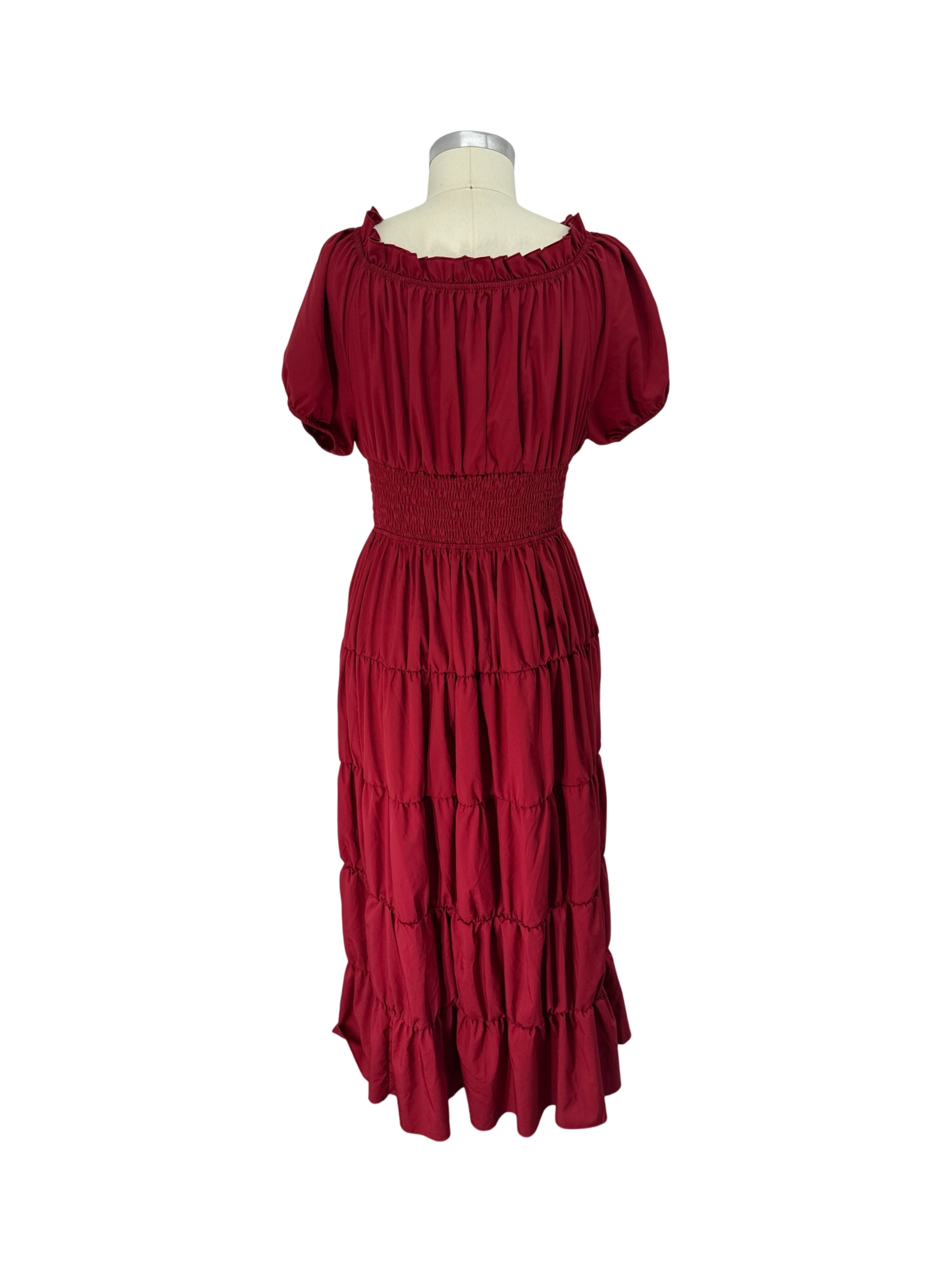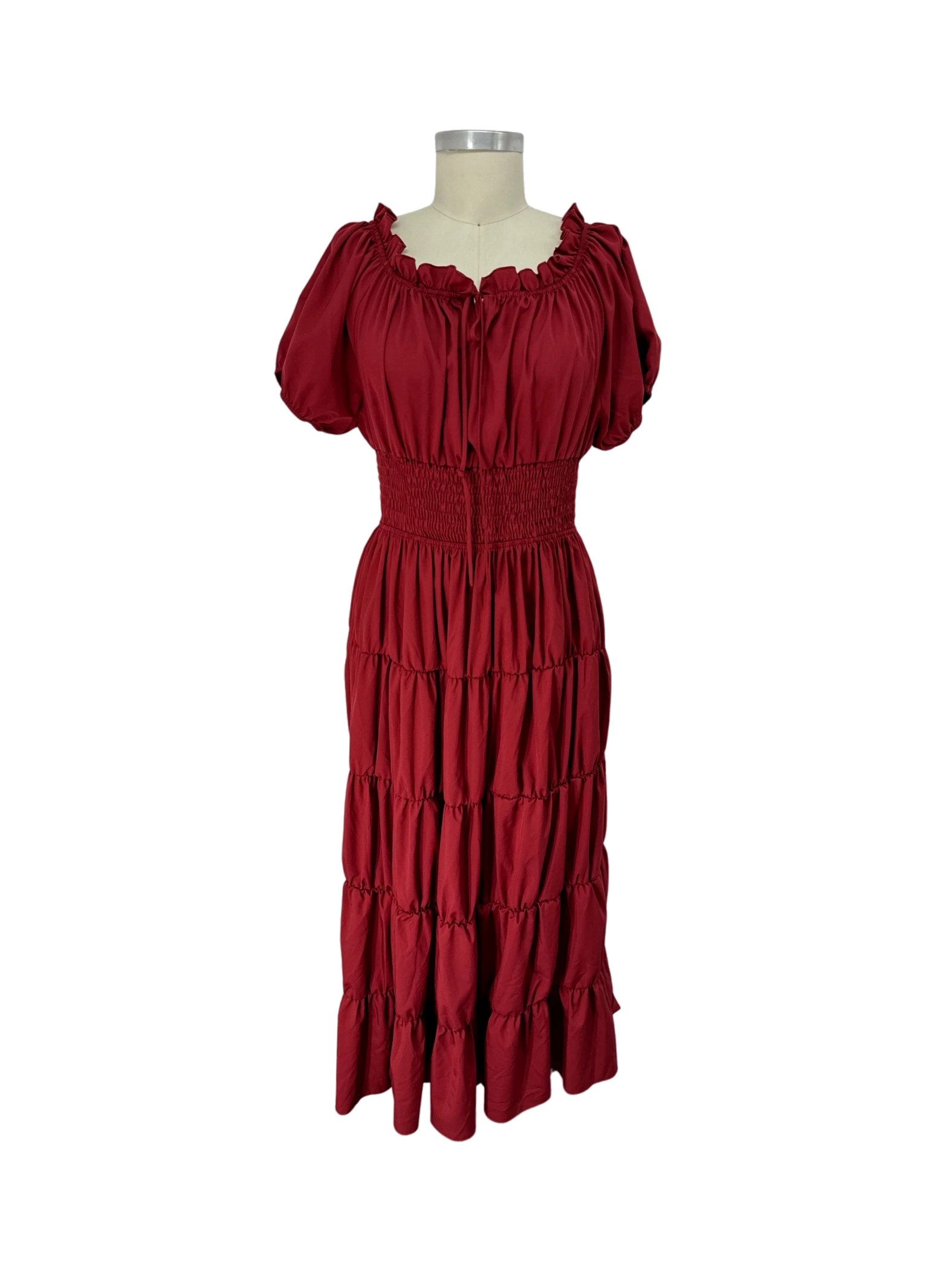 This beautiful pre-owned A-line dress is perfect for a summer day. It features a flattering round neckline and short sleeves. The dress is made of a lightweight polyester fabric, making it comfortable and easy to wear. The dress comes in a stunning red color and has a tiered design. This dress is perfect for casual outings, or even a date night. Get ready to turn heads with this gorgeous piece!