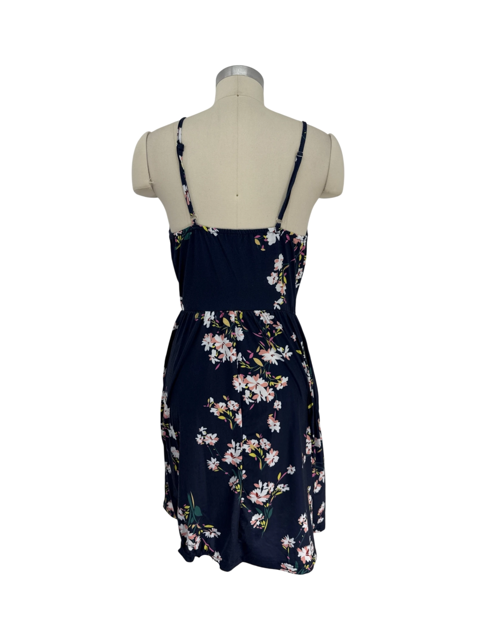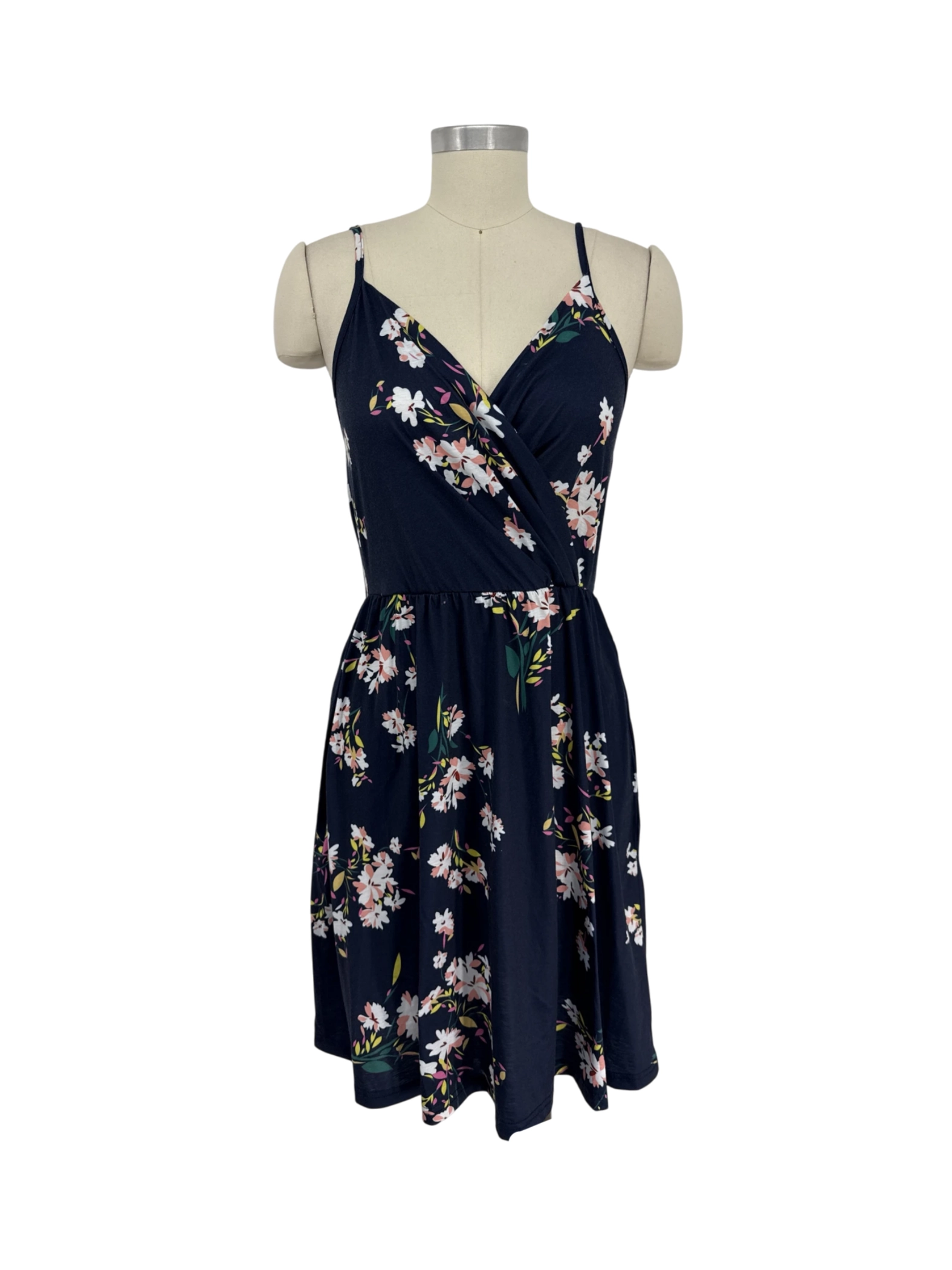 Embrace the warmth of spring and summer with this charming, pre-owned floral mini dress. This stylish dress features a flattering A-line silhouette, perfect for casual outings or summer get-togethers. The dress is made from a comfortable blend of cotton and spandex, ensuring a soft and breathable fit. Its beautiful floral pattern adds a touch of elegance. The dress boasts a V-neck and delicate spaghetti straps. This lovely dress is a must-have for your wardrobe. It's in excellent condition.