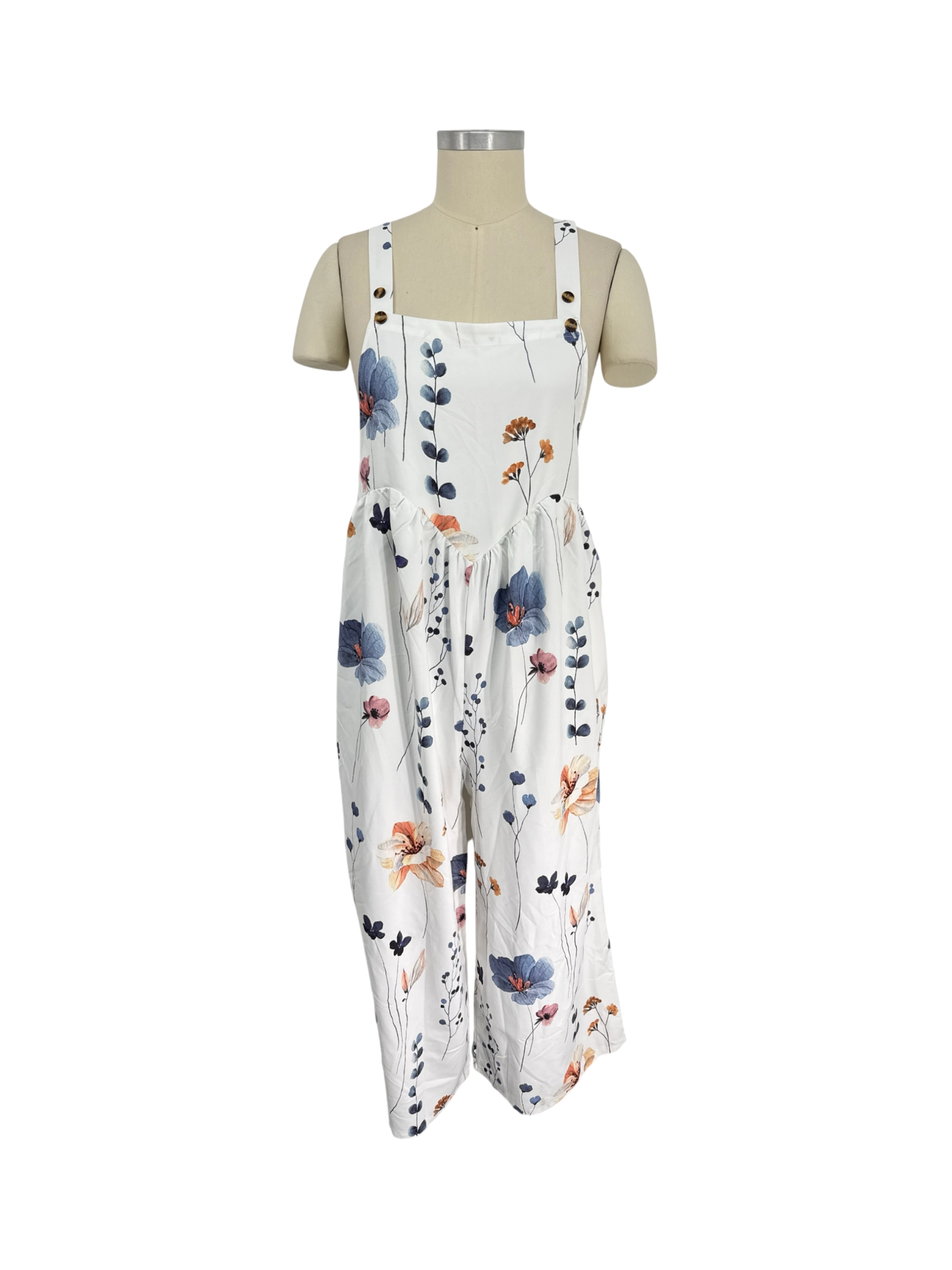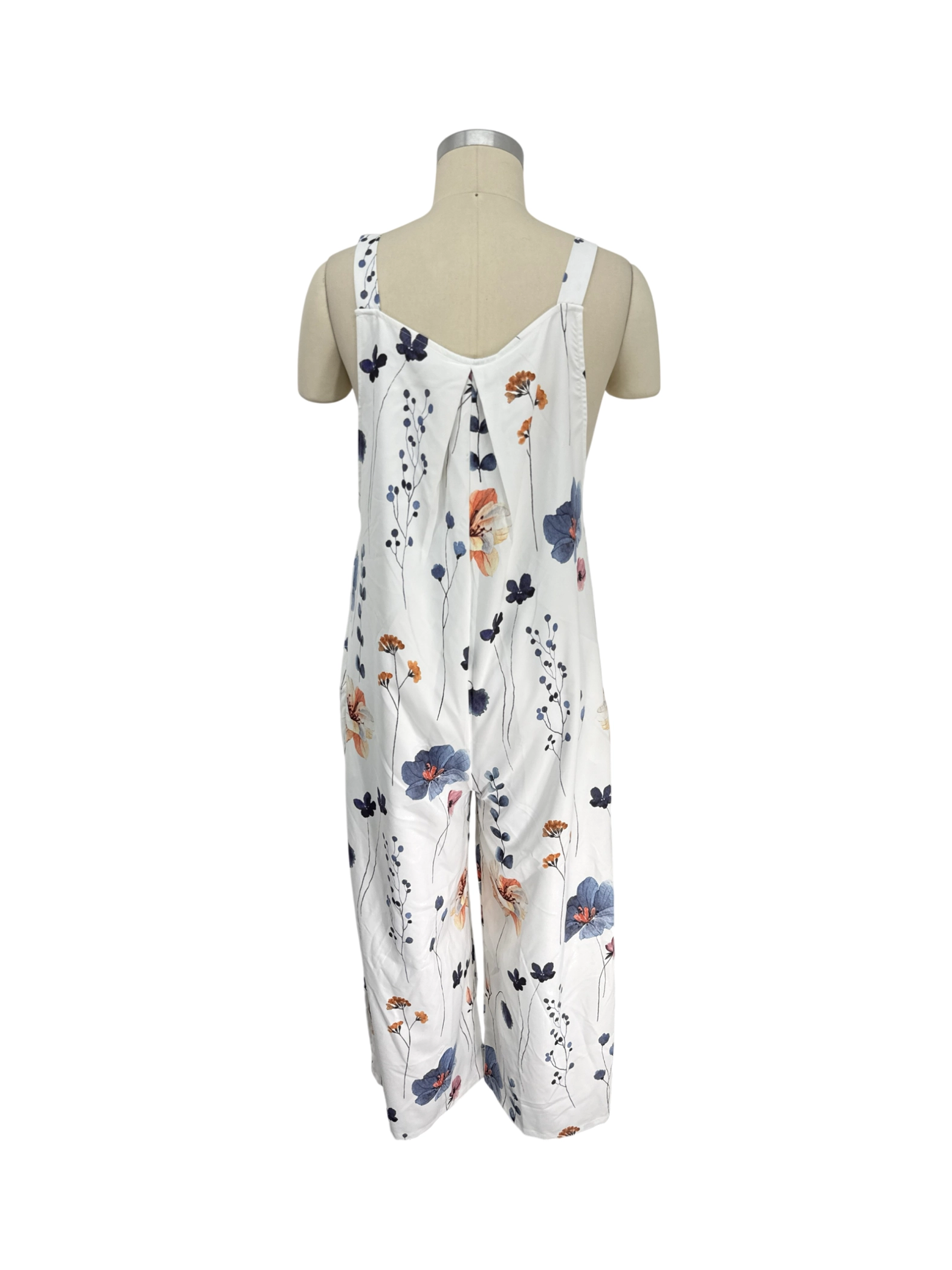 This pre-owned women's jumpsuit is perfect for a sunny day! It features a beautiful floral pattern on a white background, ideal for the Spring or Summer seasons. The comfortable A-Line style, square neckline and adjustable straps create a flattering and relaxed fit. Made from a lightweight, soft material, it's an ideal choice for those warm days. It is an effortlessly chic one-piece outfit ready to be worn.
