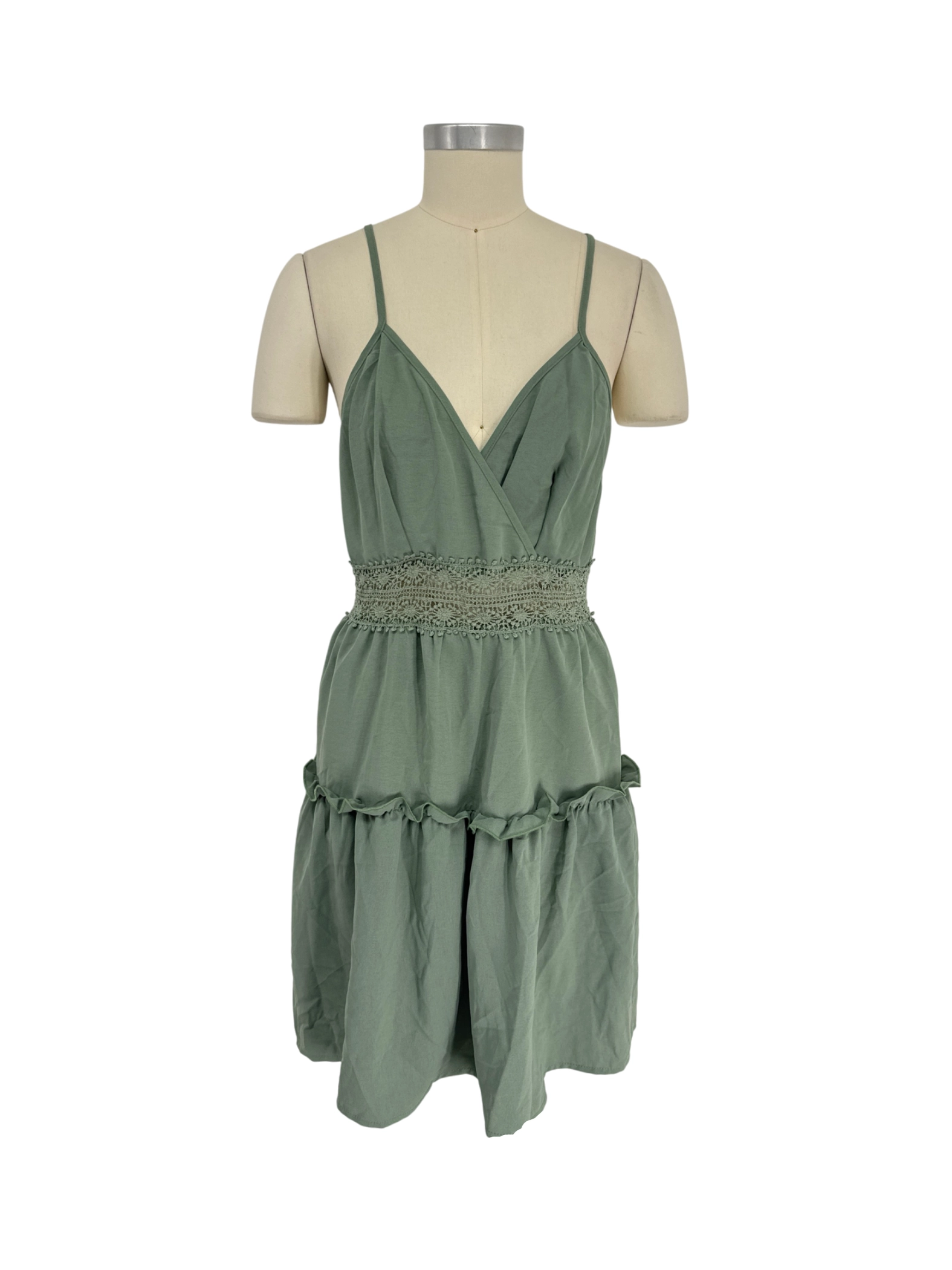 This stylish women's dress is the perfect addition to your summer wardrobe. This pre-owned dress features a flattering A-line silhouette, a V-neckline, and delicate spaghetti straps. Crafted from comfortable polyester, it offers a relaxed yet chic look. The dress is available in a versatile green hue. It's ideal for casual outings, making it a must-have for warm weather. Get ready to turn heads with this effortlessly elegant piece!
